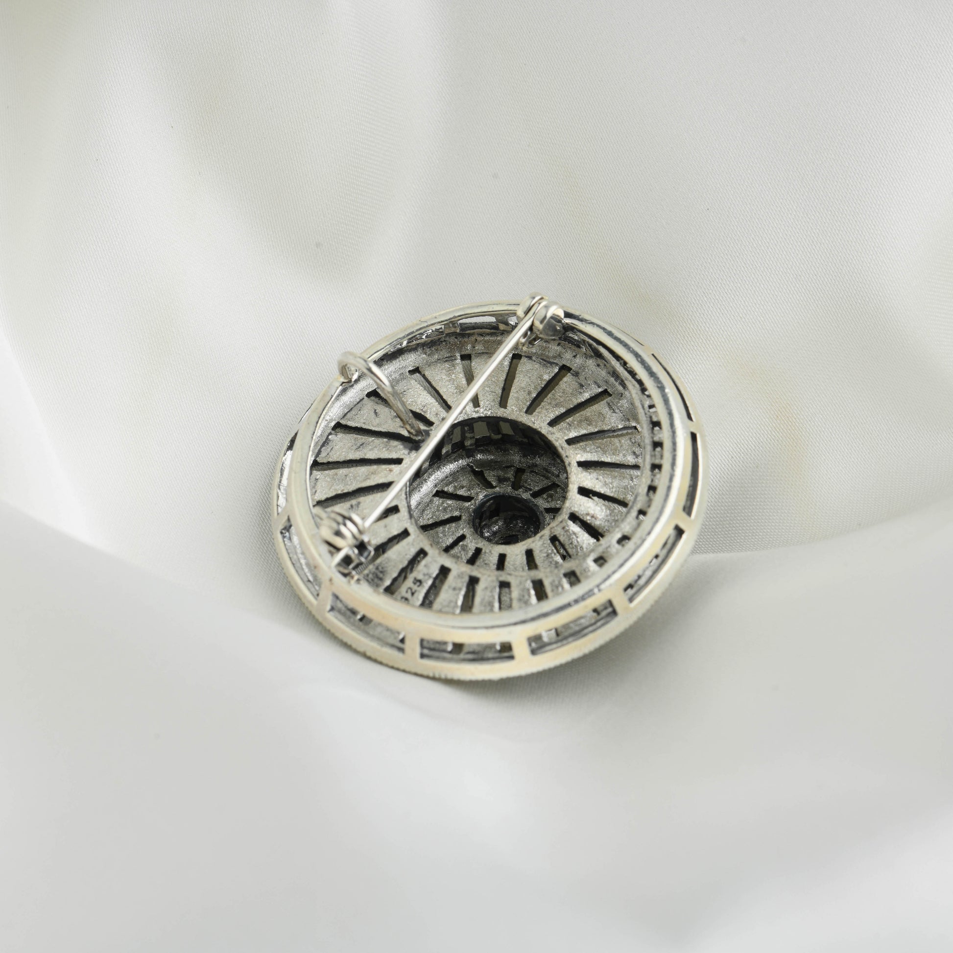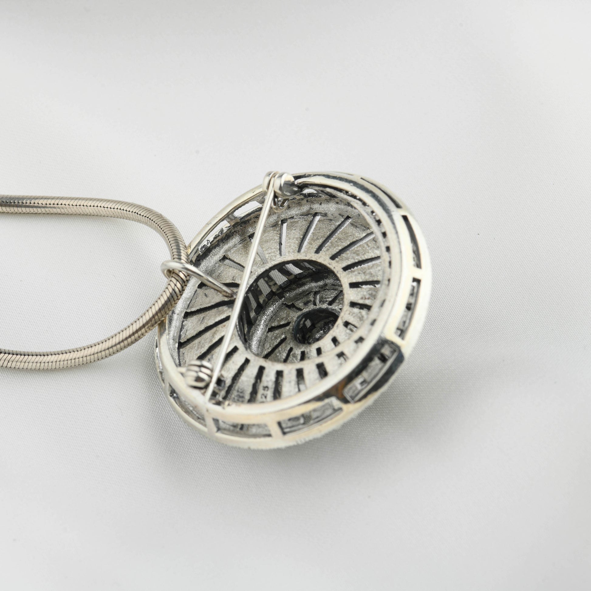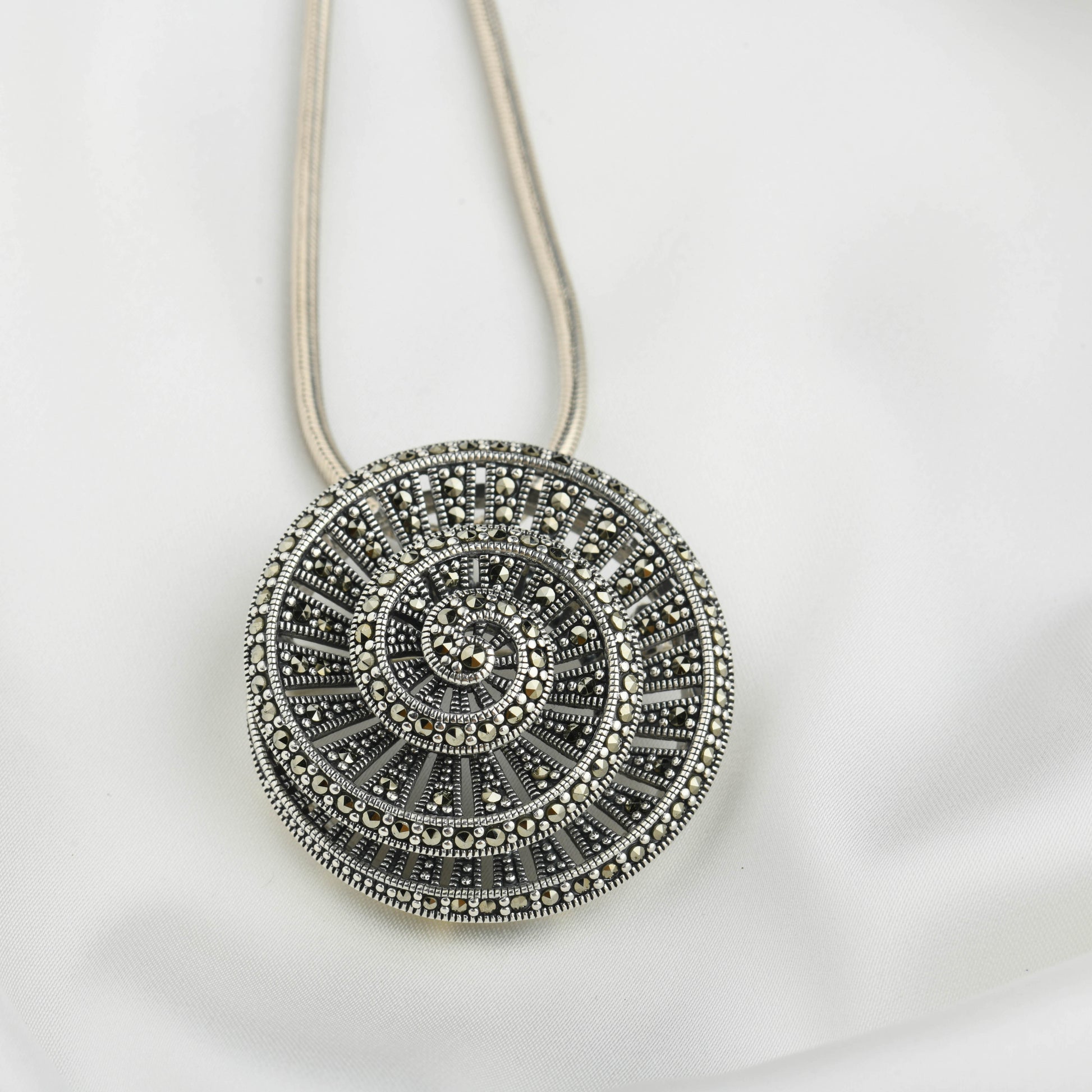 Marcasite Spiral Pendant - Sterling Silver Art Deco Necklace