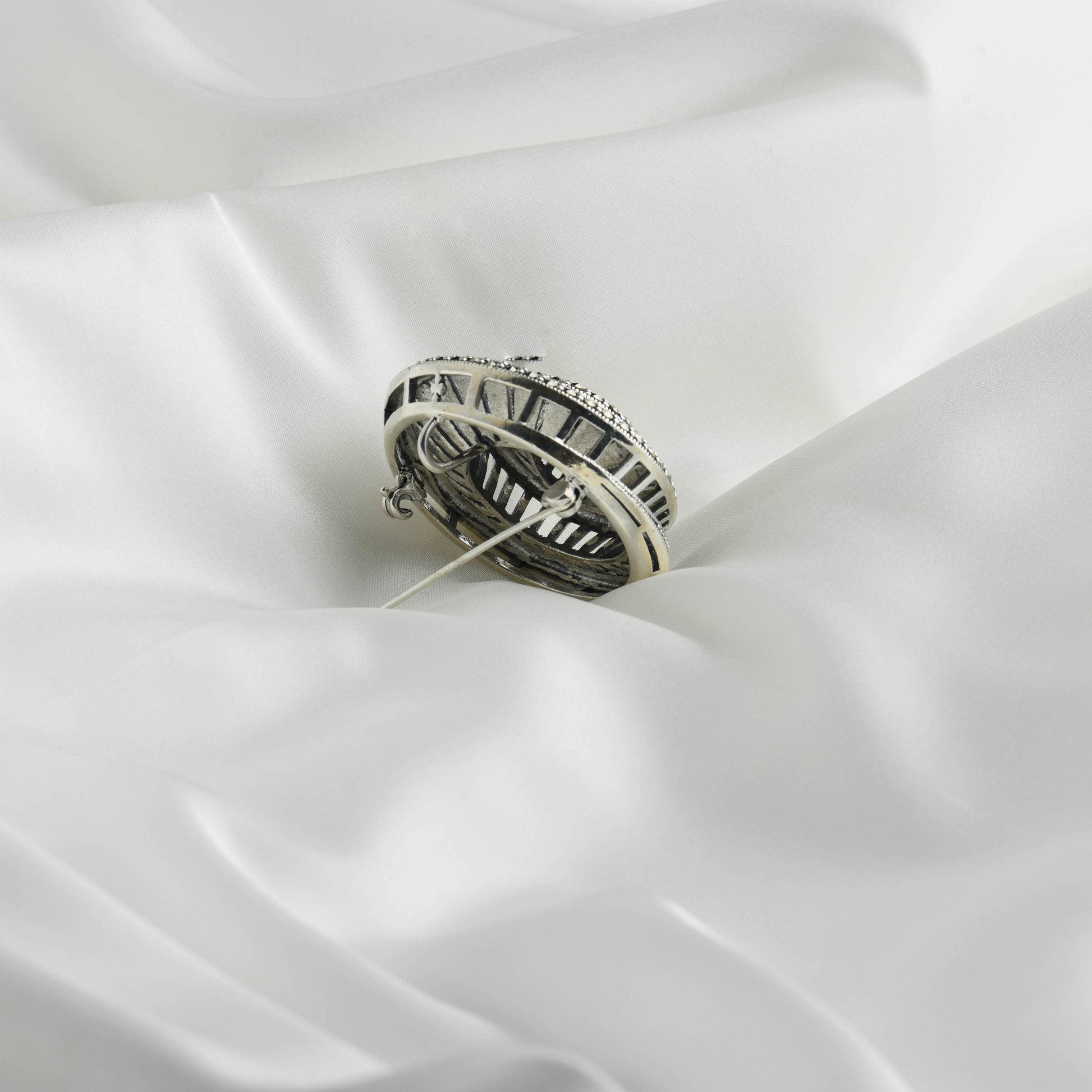 The intricate detailing and vintage-inspired aesthetic evoke the glamour of the Art Deco era. A timeless piece that adds a touch of sophistication to any ensemble."
