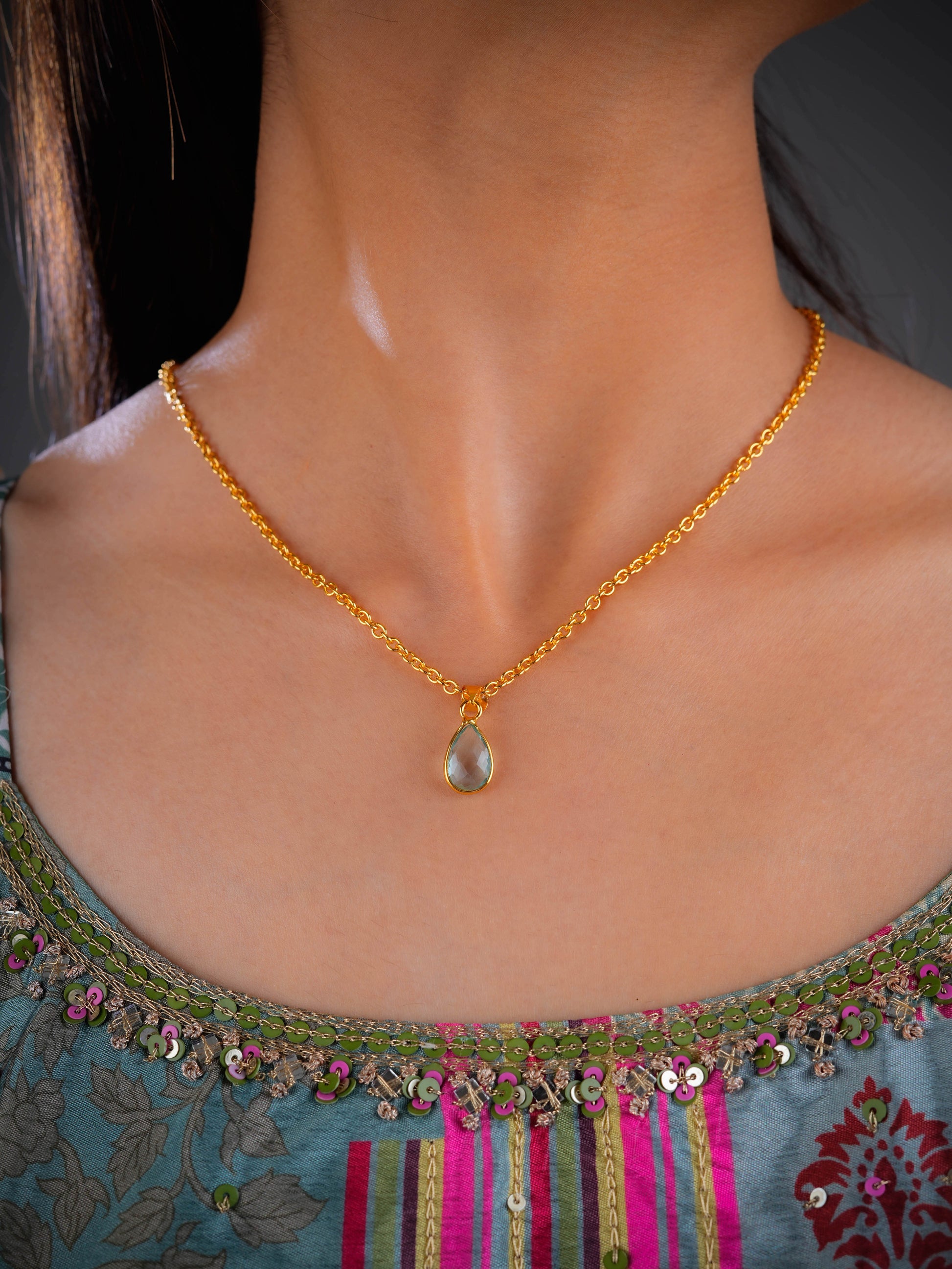 Minimal Aquamarine Pendant Set