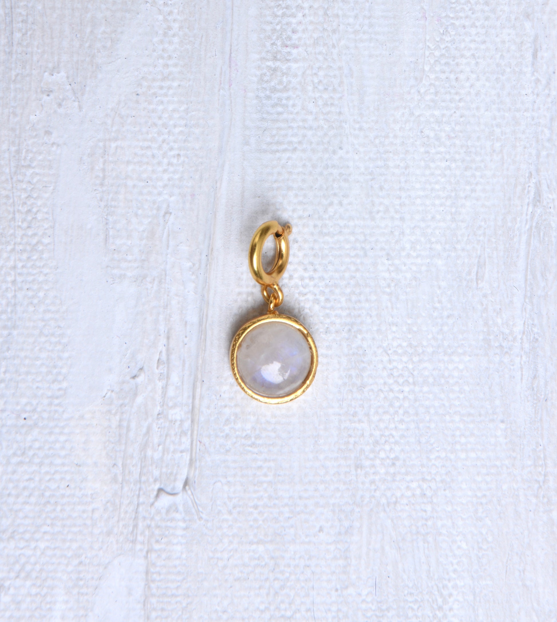 A beautiful Moonstone Charm, handcrafted with love, to add a touch of natural beauty to your jewelry collection. This charm features a gorgeous moonstone gemstone that will bring a celestial charm to any outfit. Adorn yourself in the serenity and mystery of the night sky with this stunning piece!