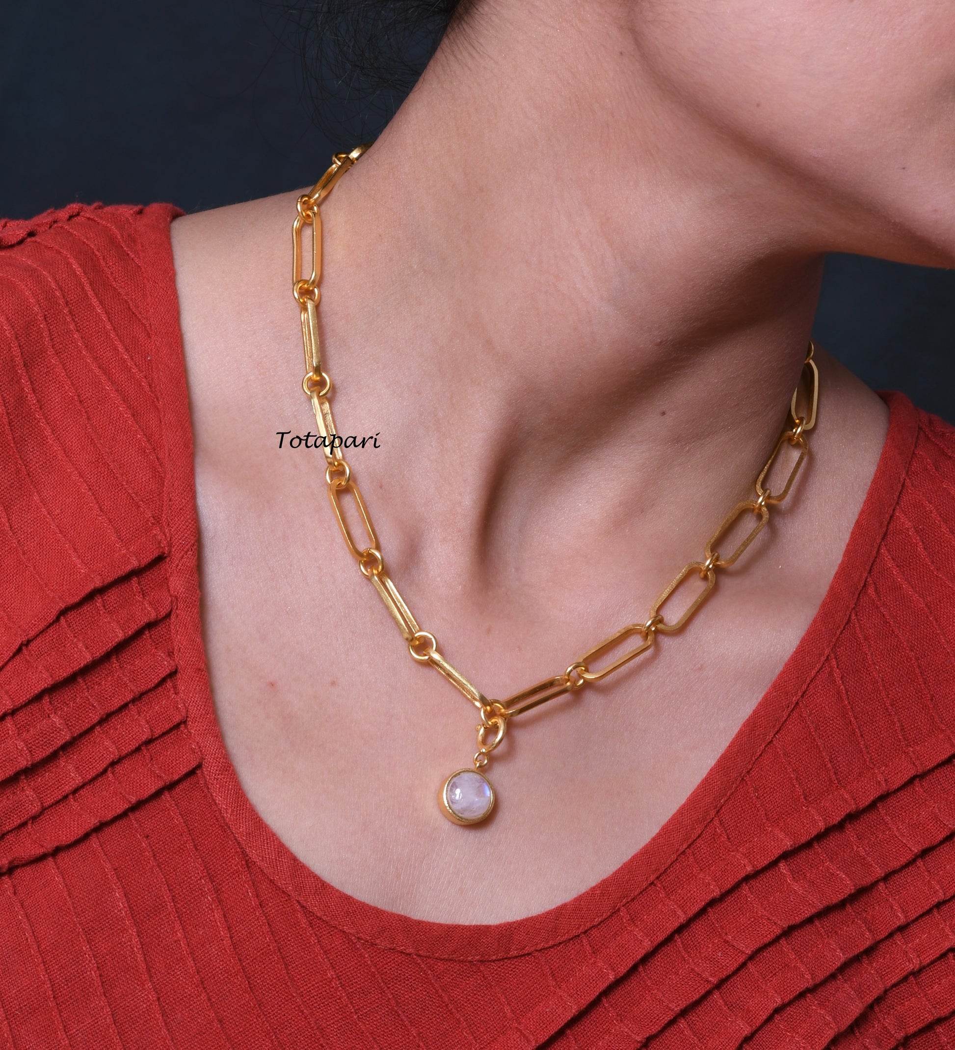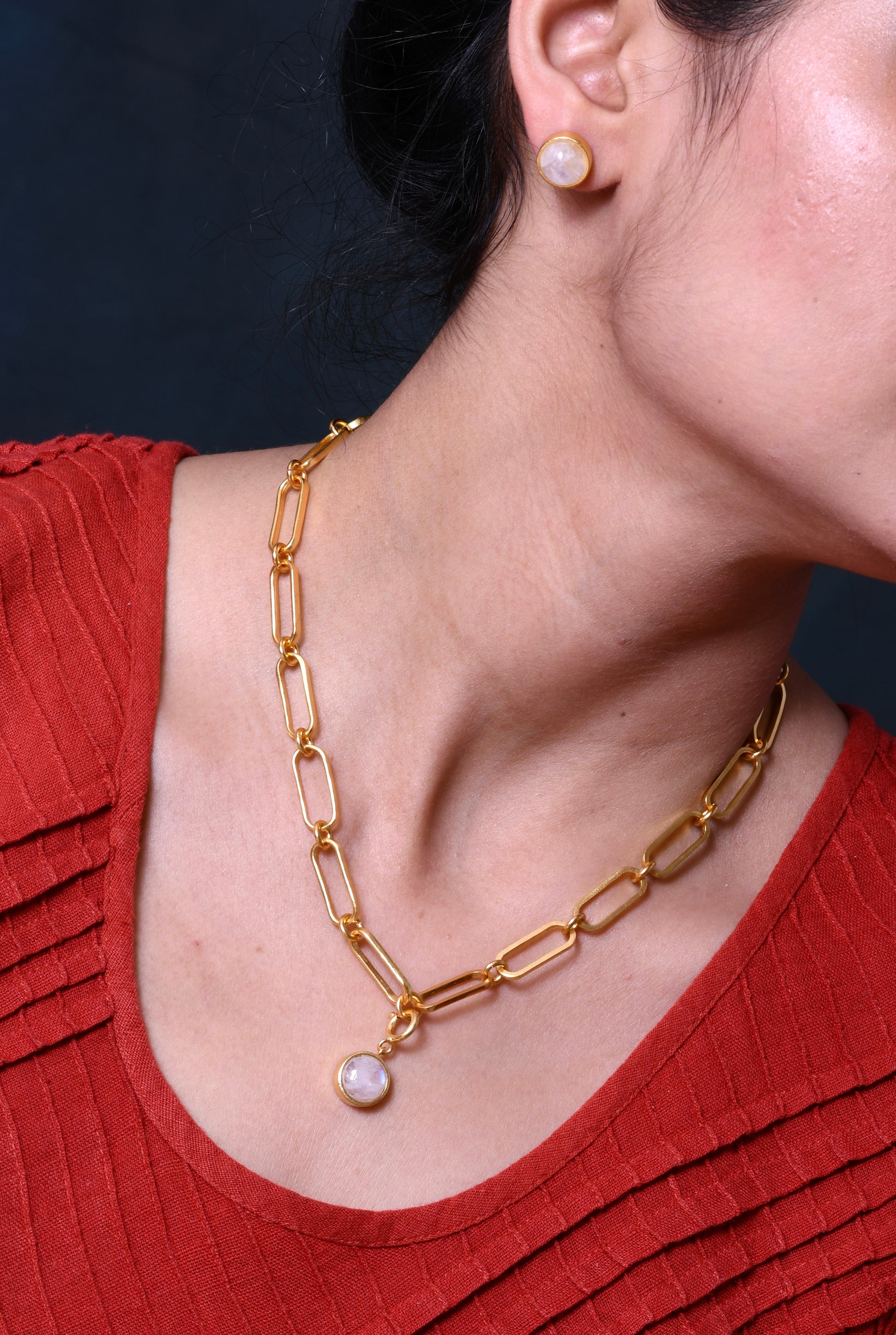 Lift your spirit with the power of the Moonstone! This magical necklace pairs twinkling moonstone links with a delicate gold chain to create an ethereal and enchanting accessory. Dare to dream and wear your very own piece of mystical glamour!