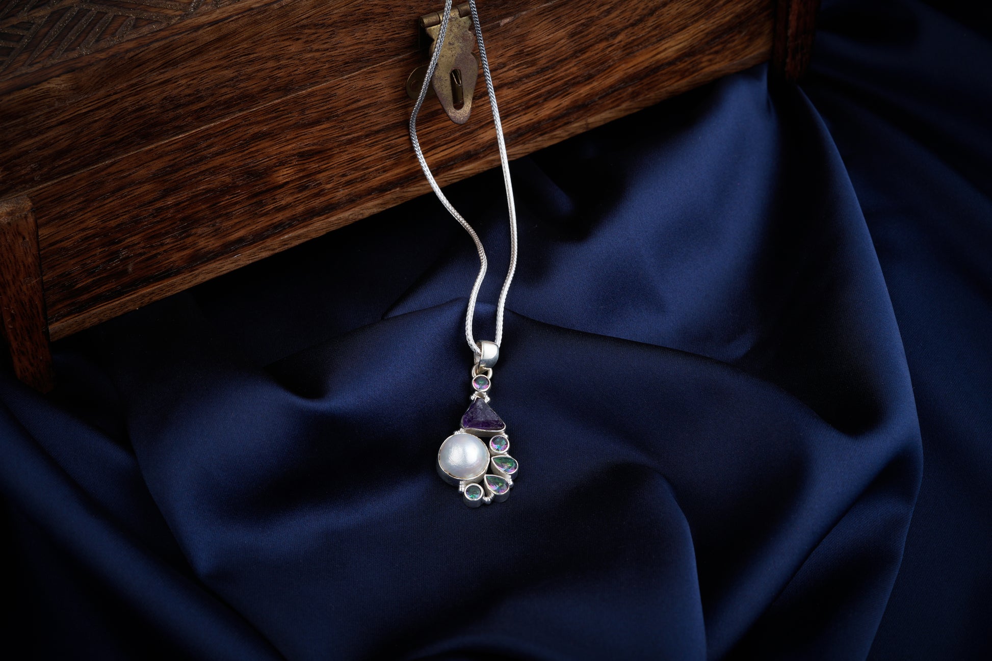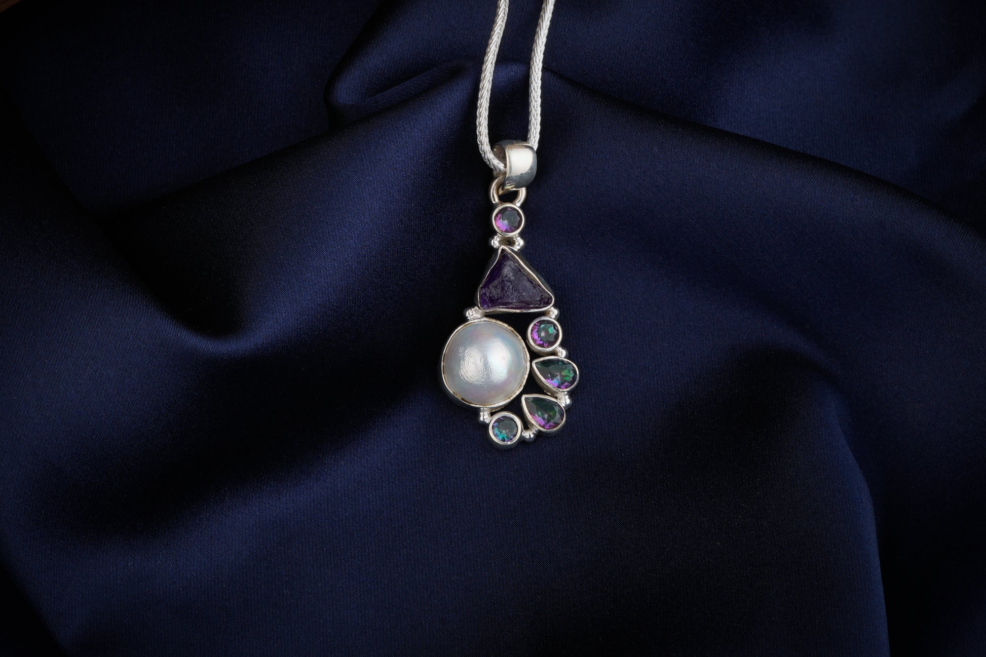 92.5 Silver, Amethyst, Mystic Topaz, Freshwater Pearl
