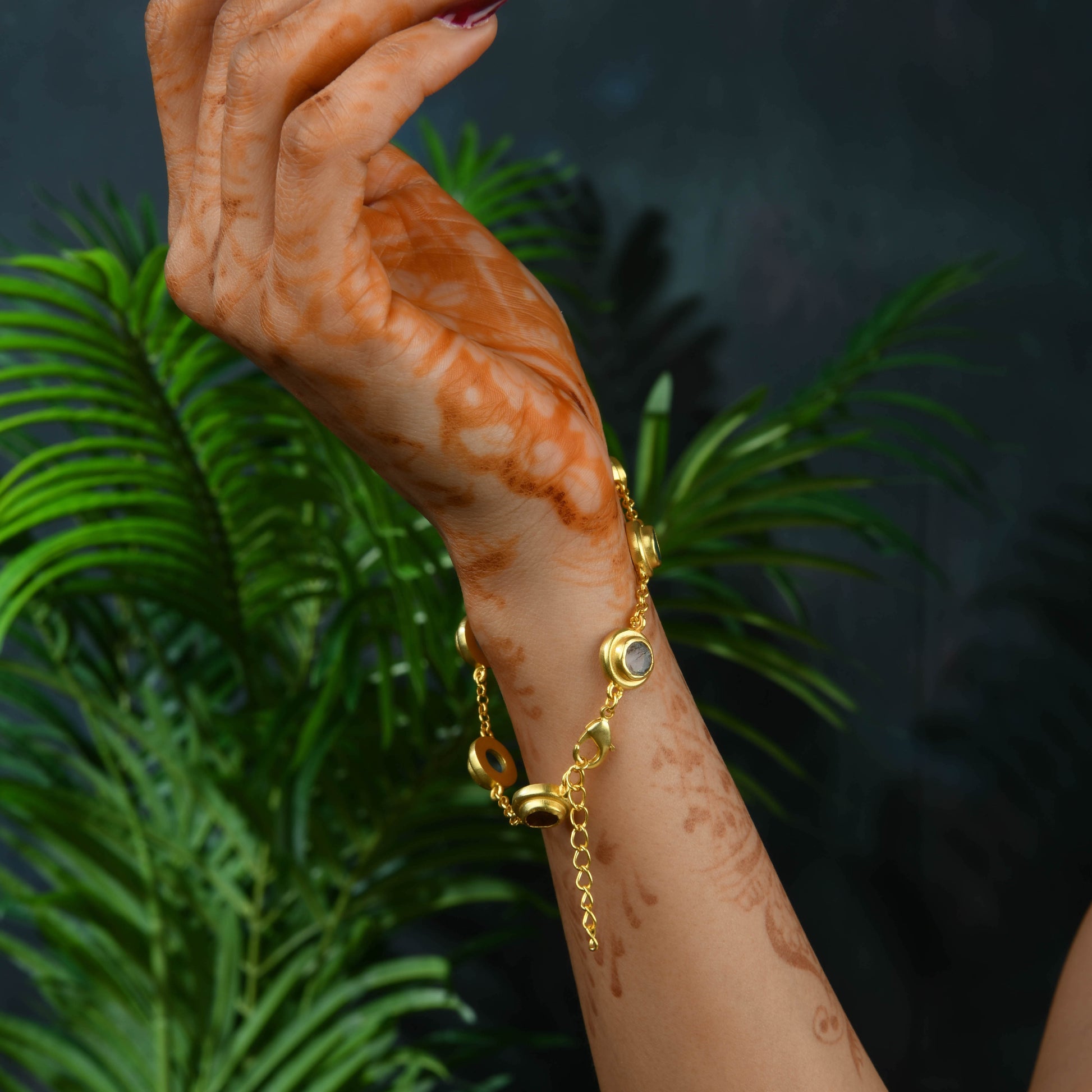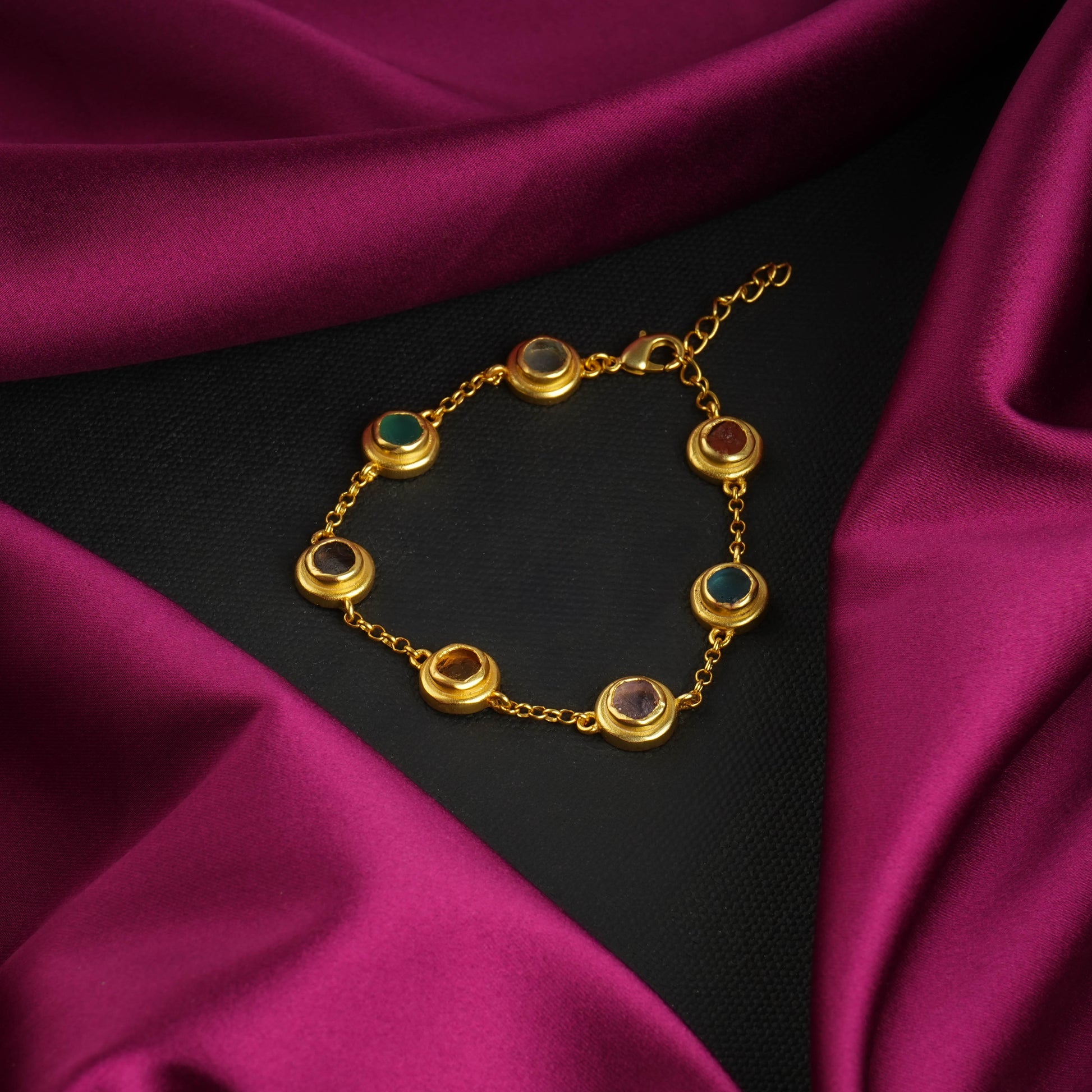 Uncut Semiprecious Multi stones- Lemon Topaz,Quartz,Labradorite, Rose Quartz, citrine, amethyst, Amazonite, moonstone studded in gold plated brass