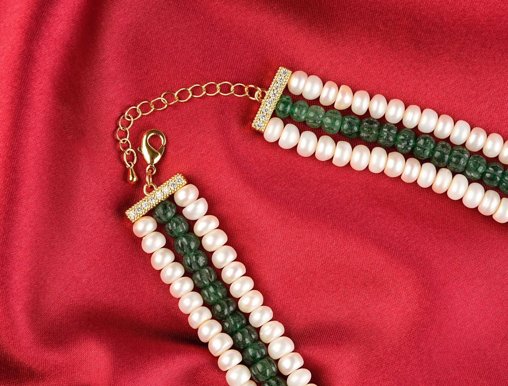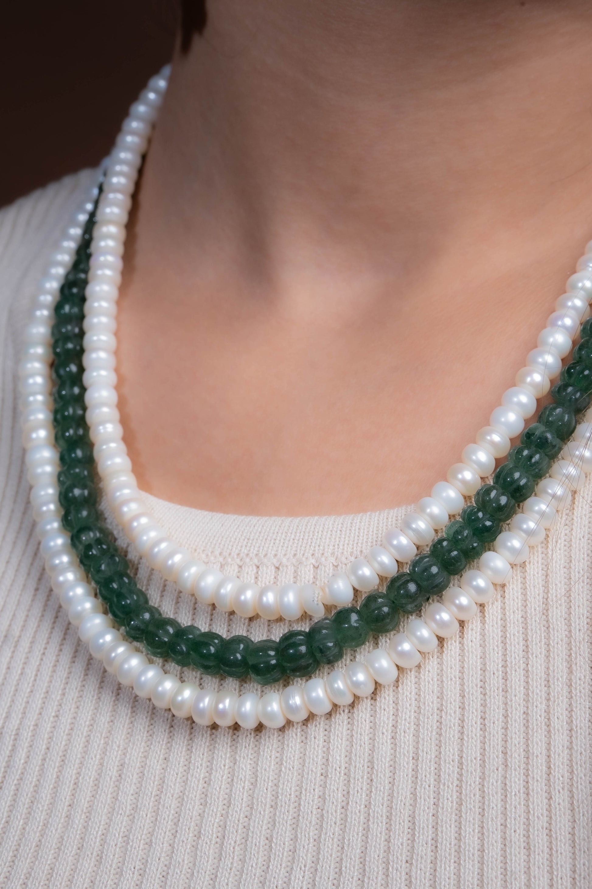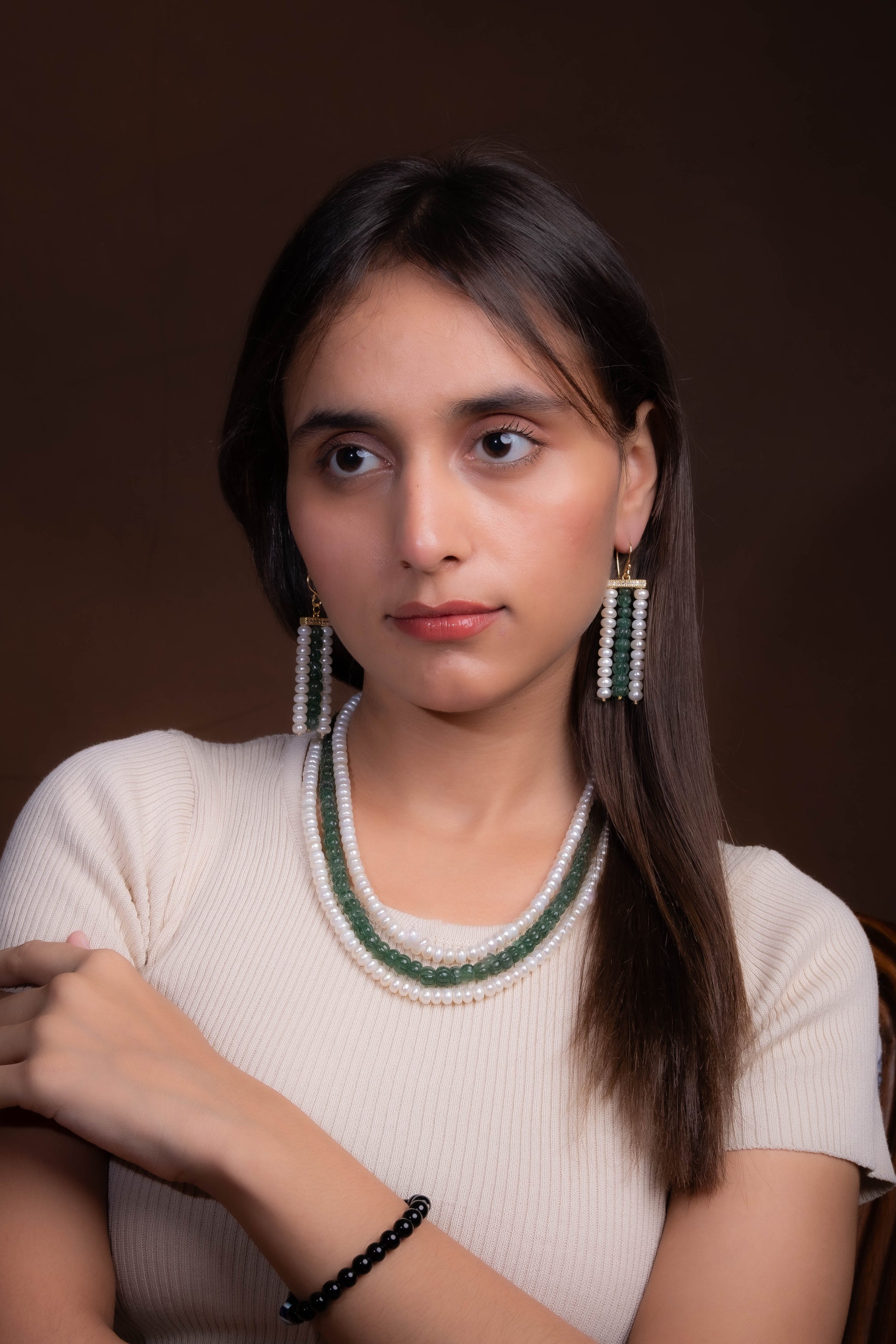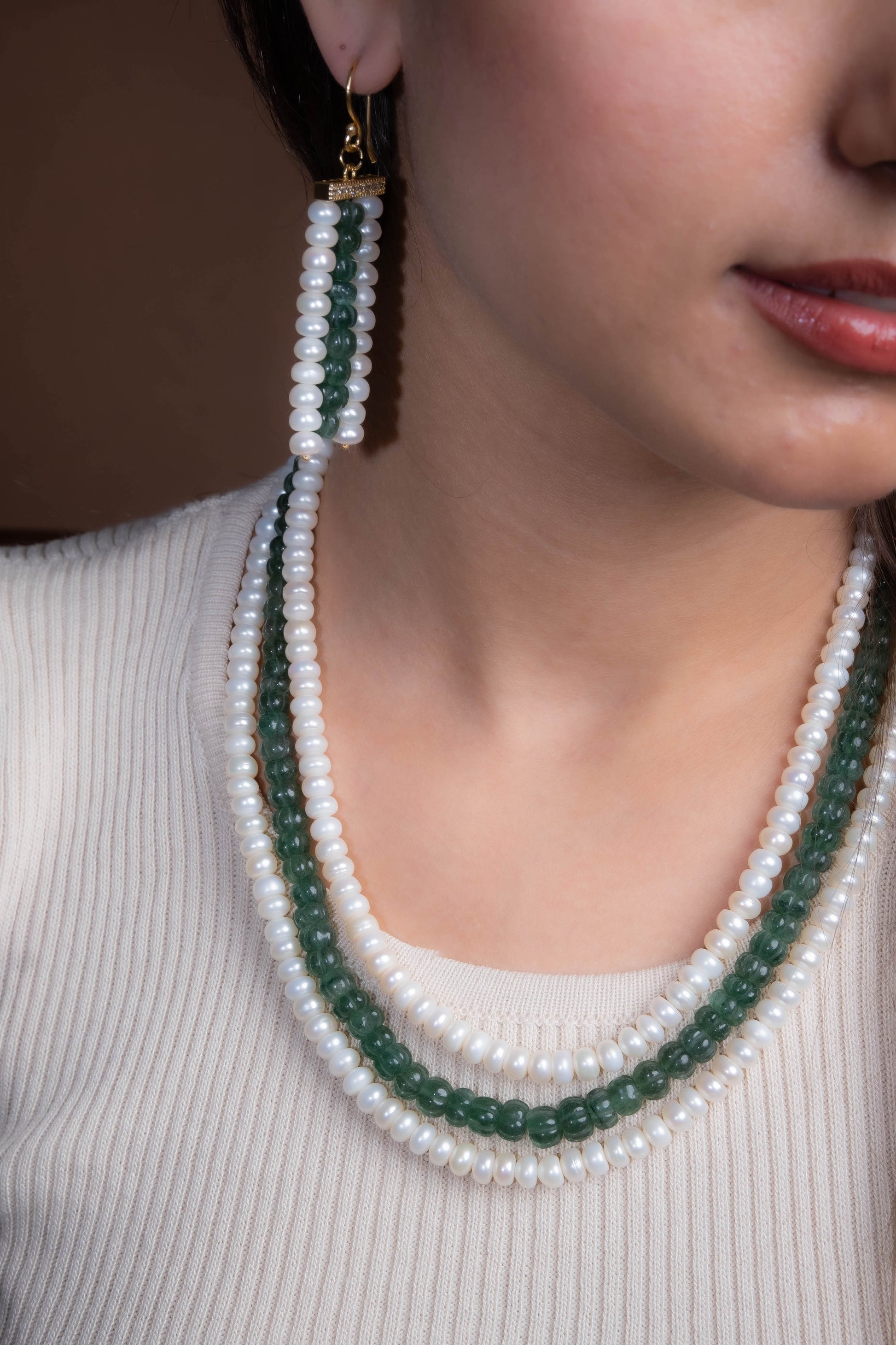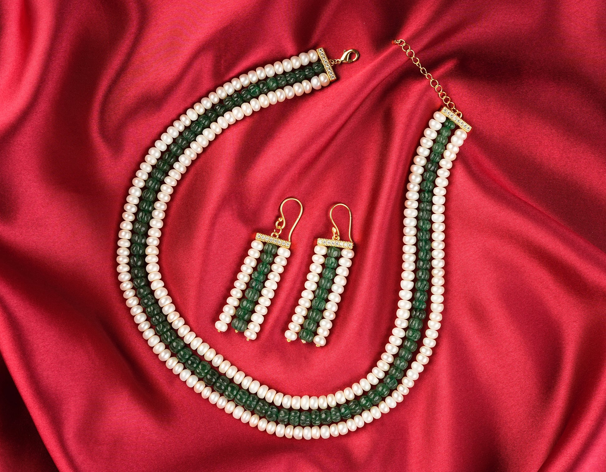 Nargis Pearl And Green Quartz Melons Necklace Set