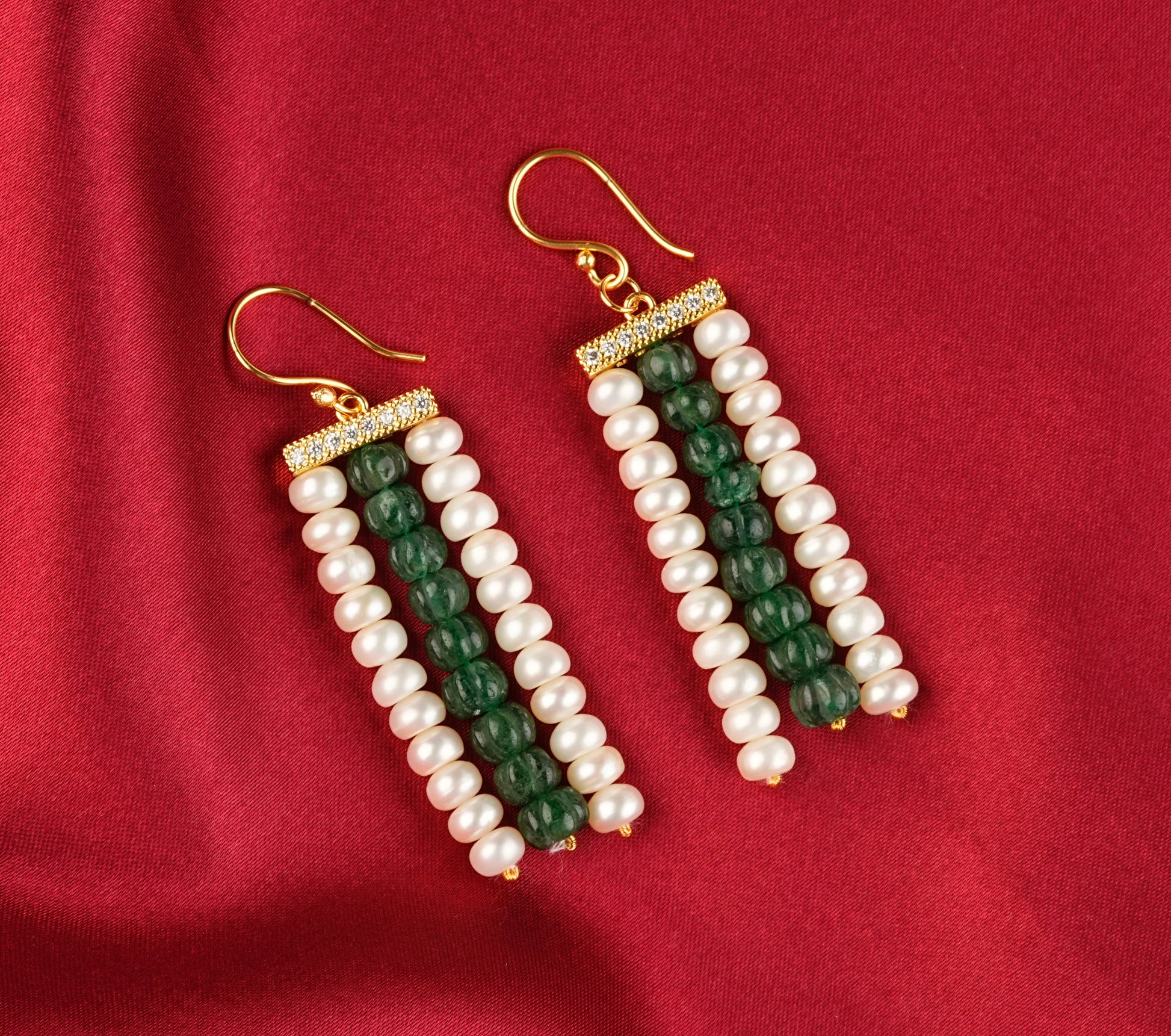 Fresh Water Pearls, Green Strawberry Quartz, Premium Zircon Brass Findings