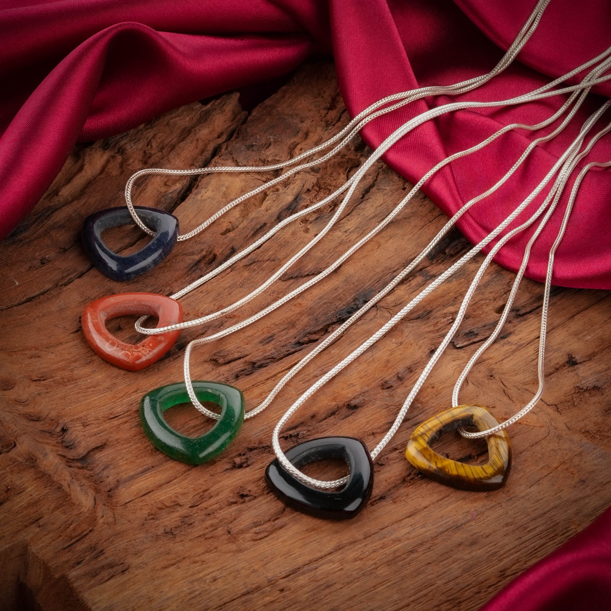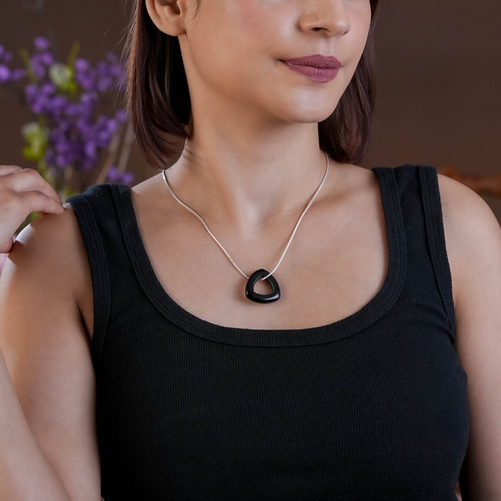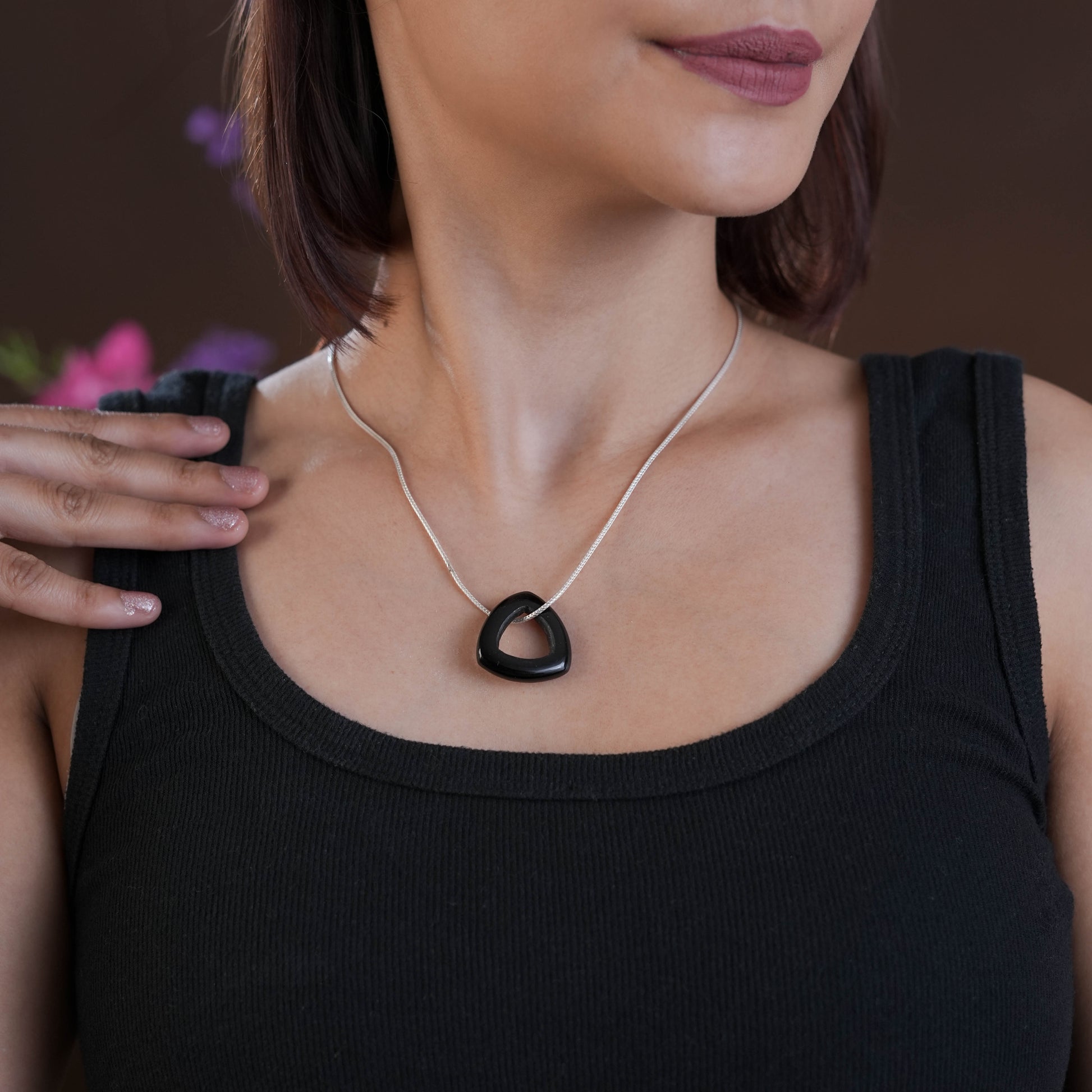 Natural Black Onyx Mystic Triangle Pendant Necklace