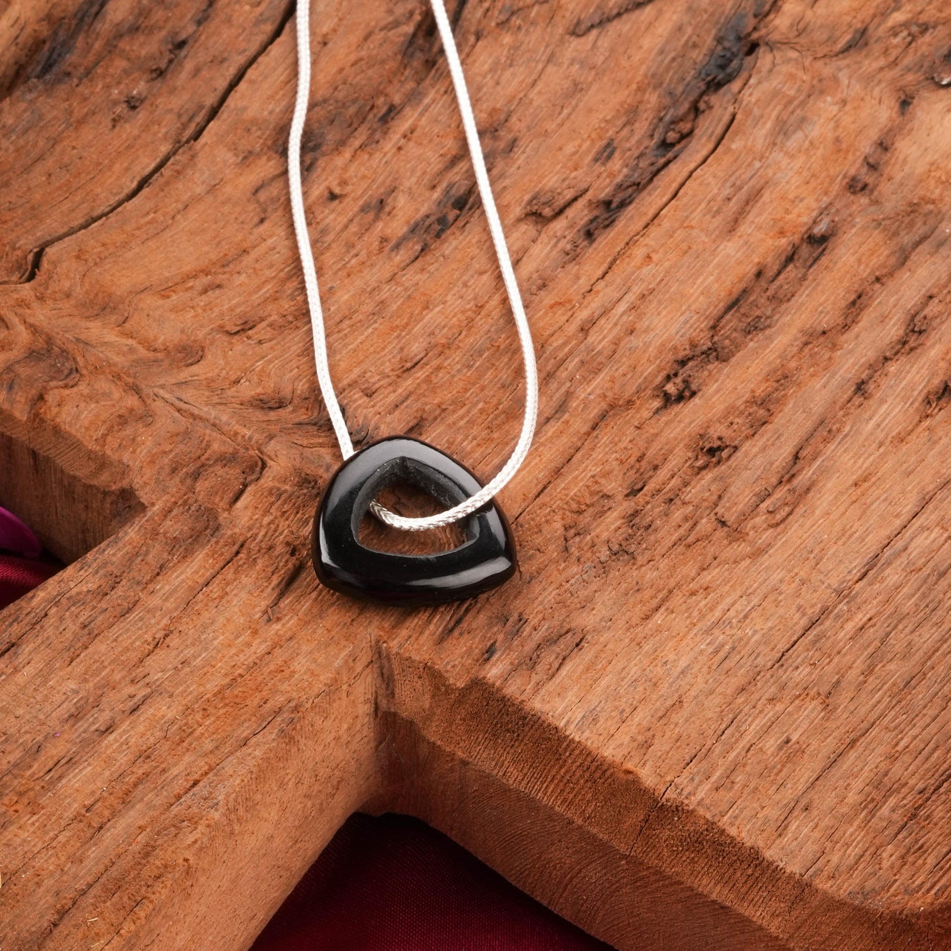 Natural Black Onyx Carved Triangle, 92.5 Silver