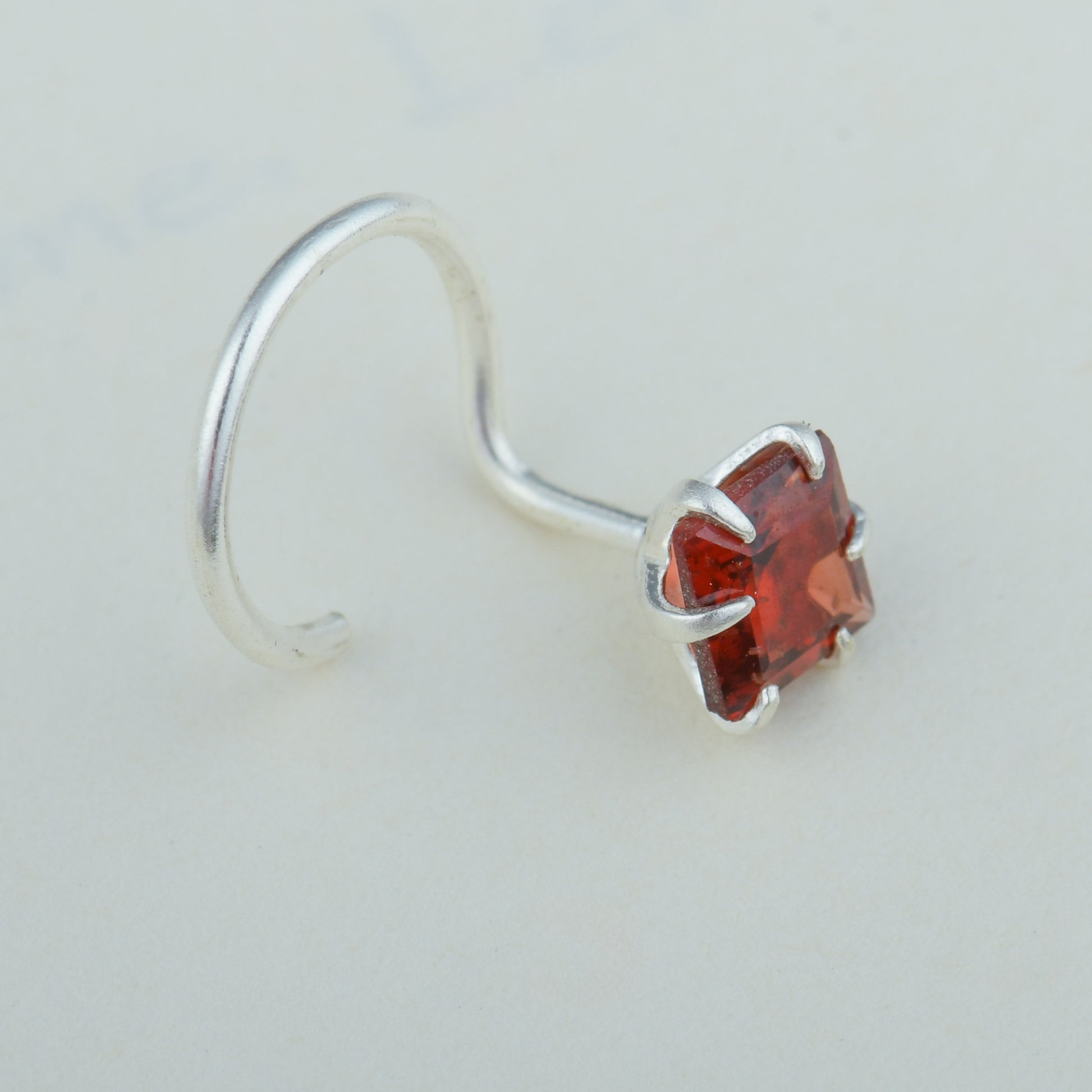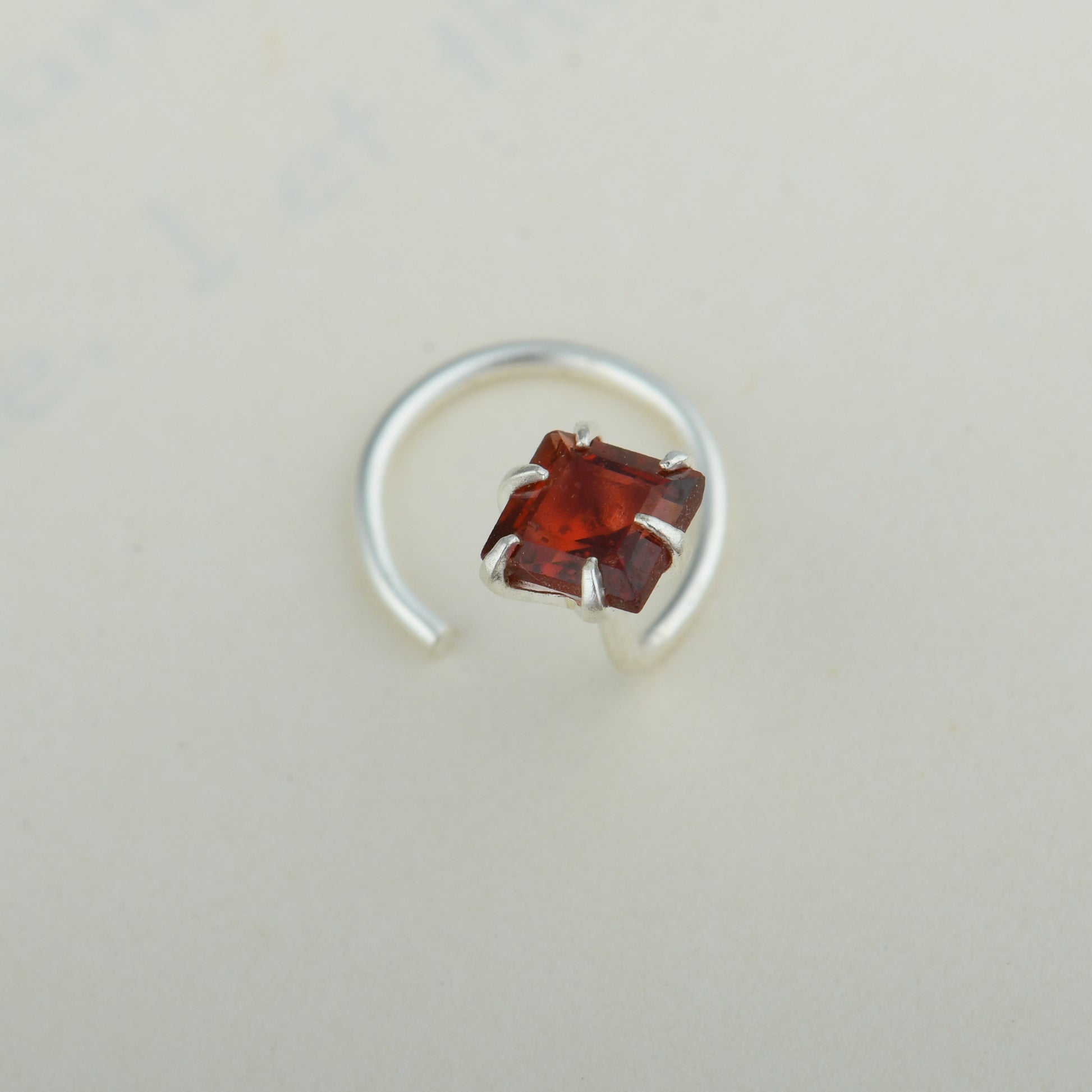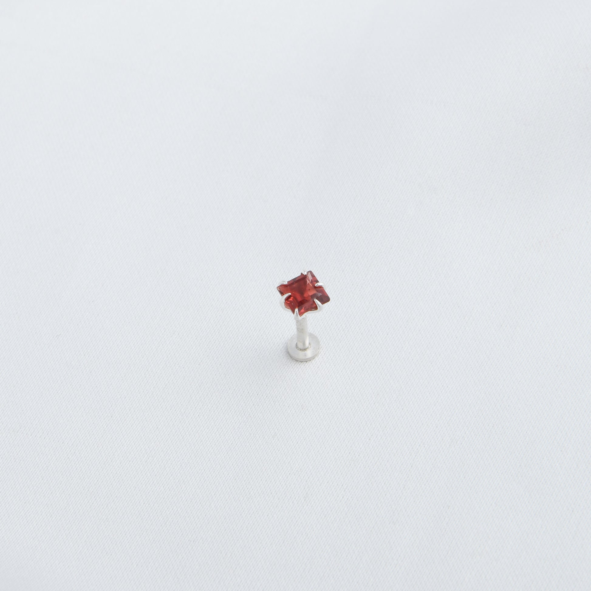Natural Garnet Square Silver Nose Pin