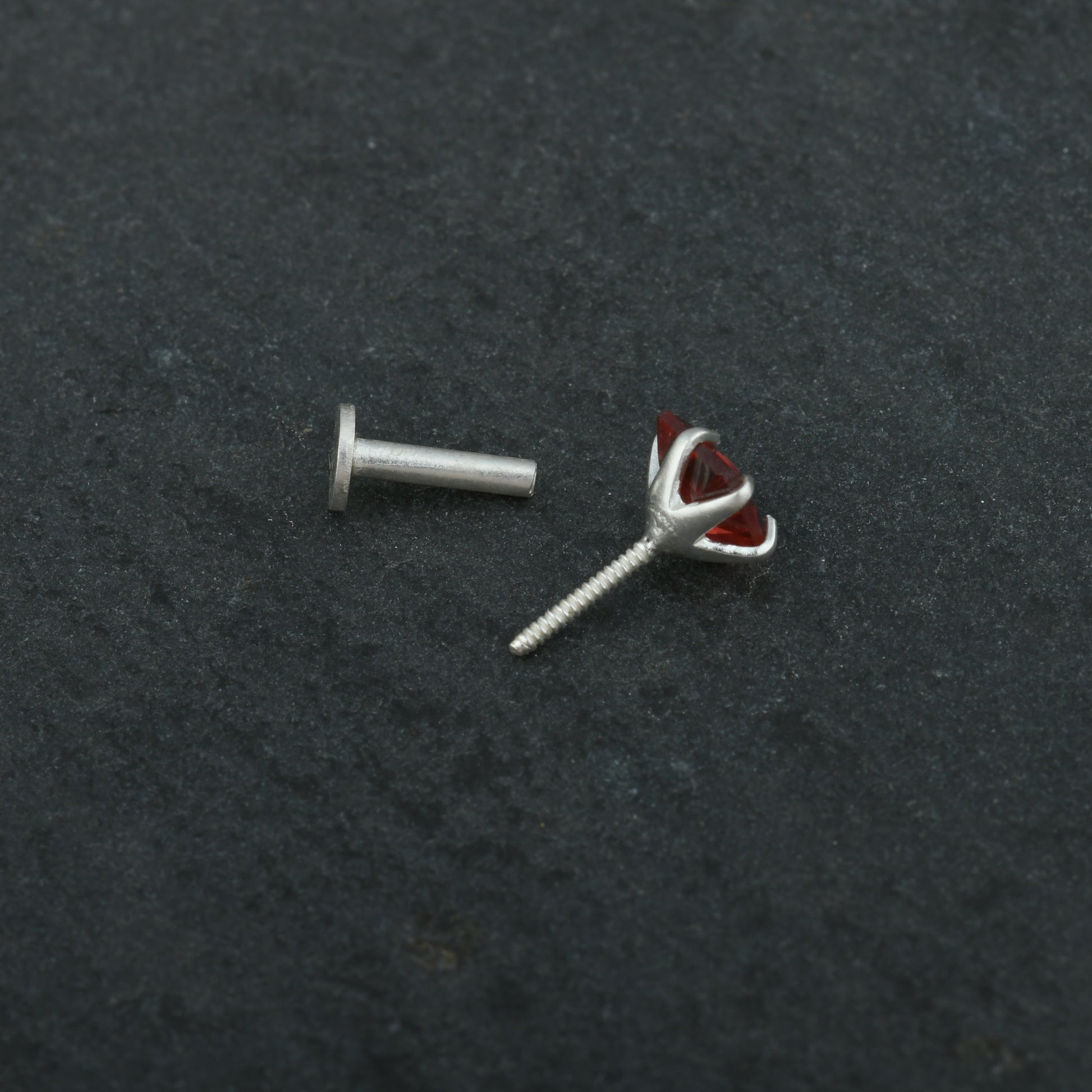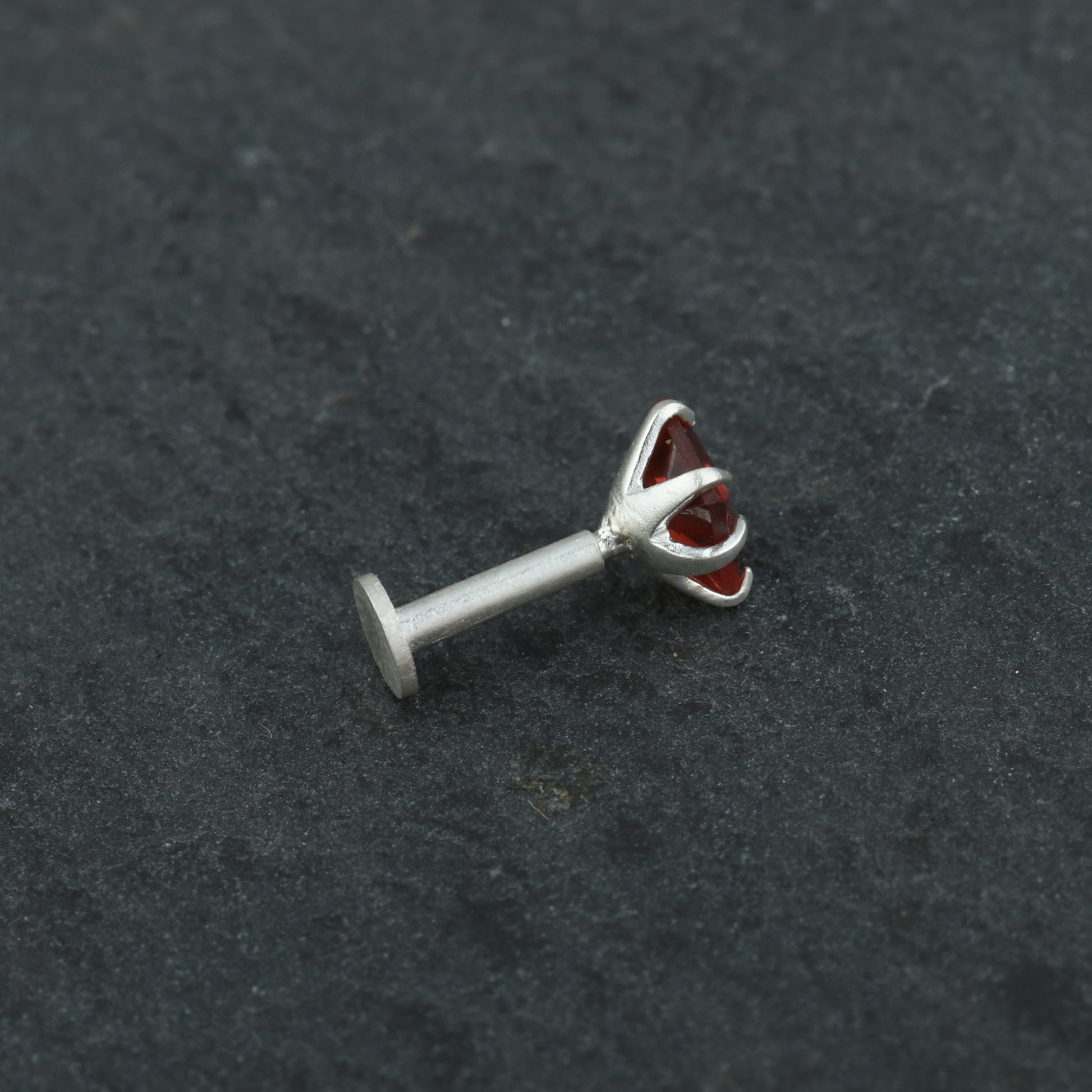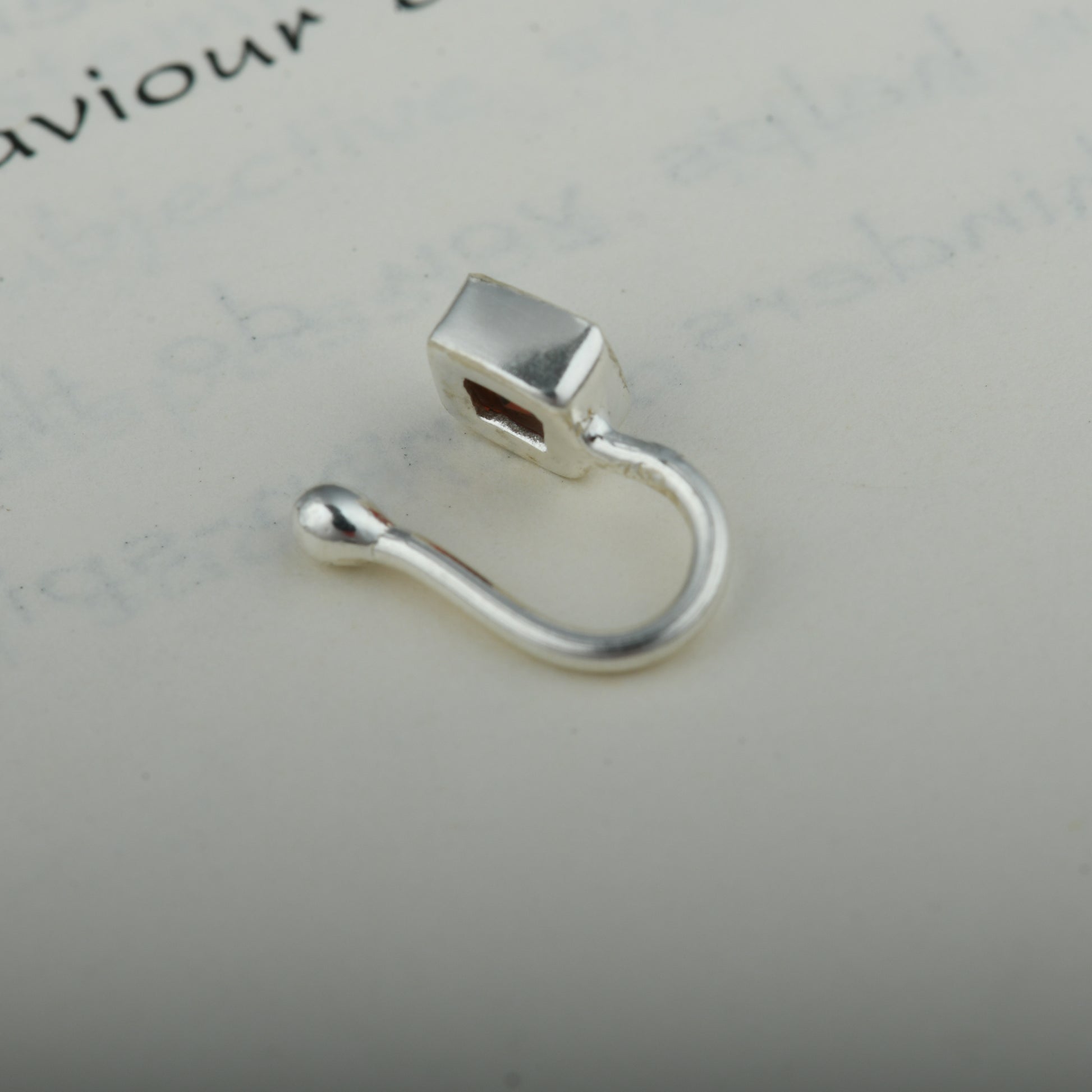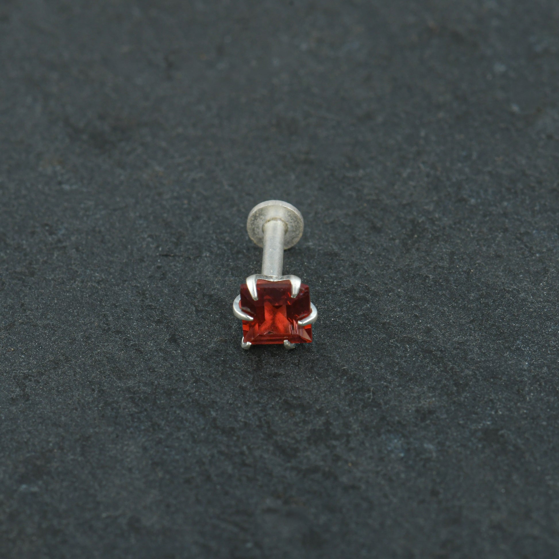 Natural Garnet Square Silver Nose Pin