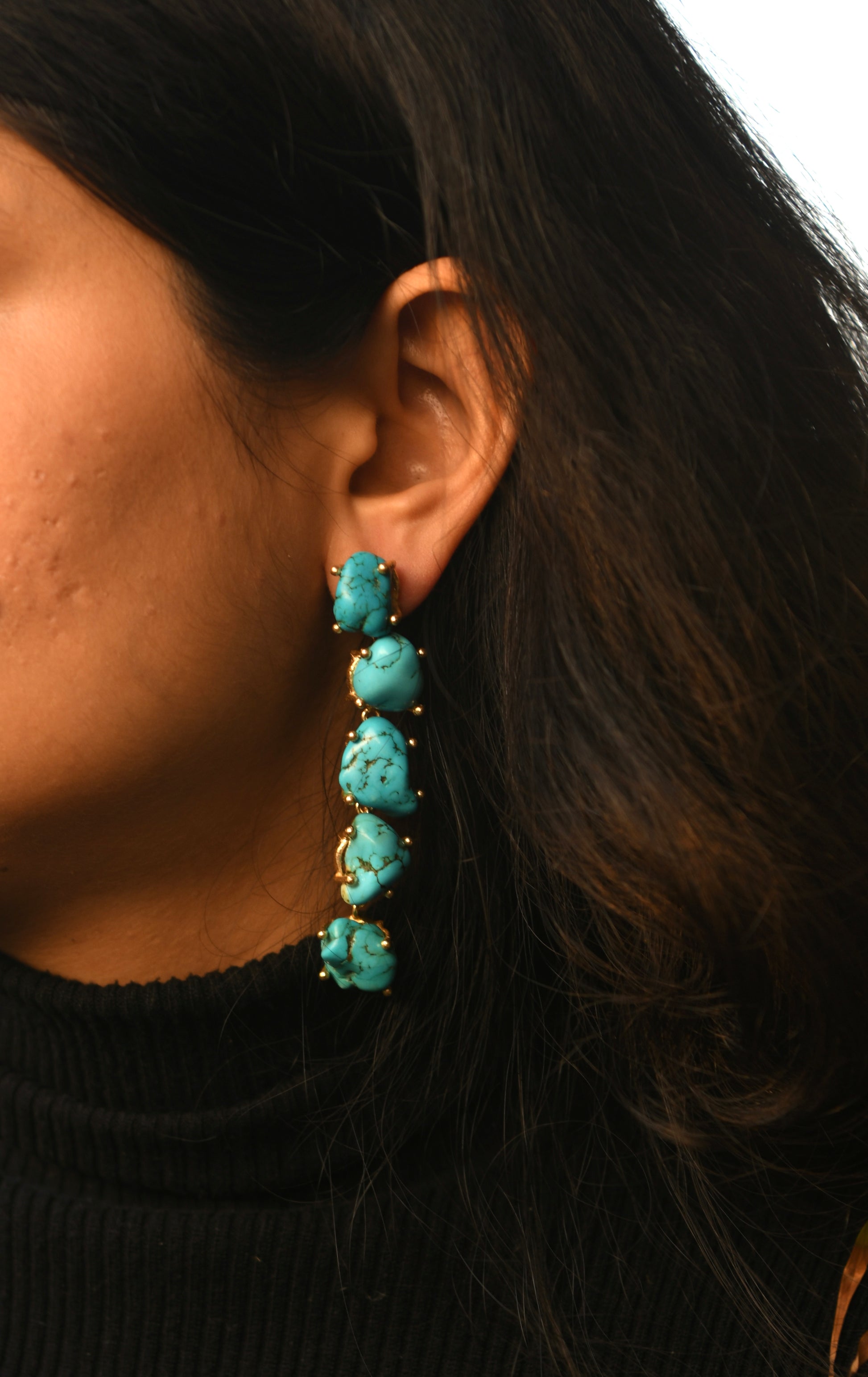 Adorn yourself with these enchanting Natural Turquoise Danglers! Made from genuine turquoise, these danglers will brighten any outfit with their earthy, vibrant hues and stunningly unique designs. Step out in style with these elegant, captivating pieces!