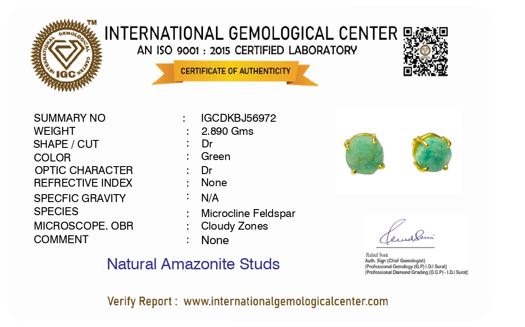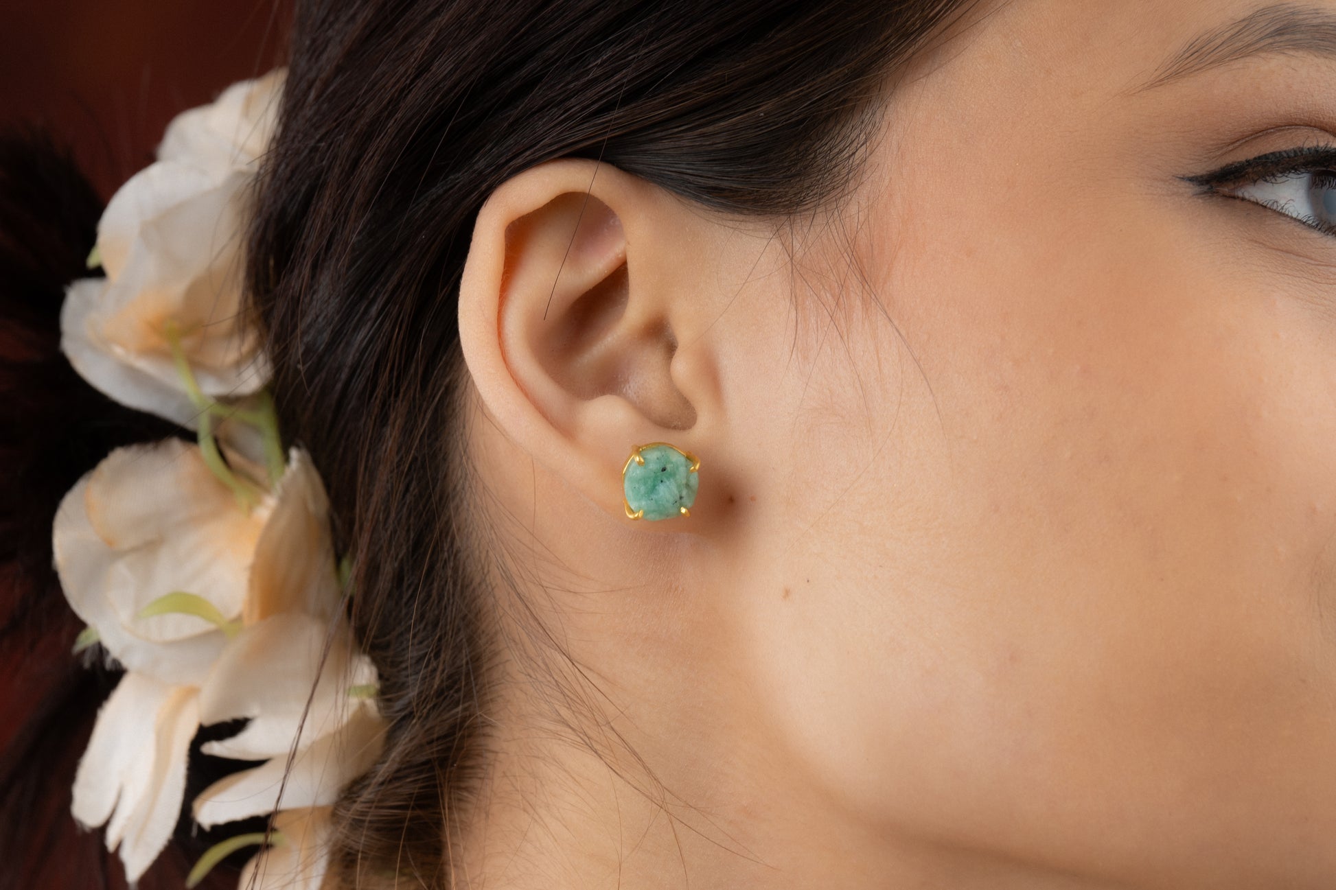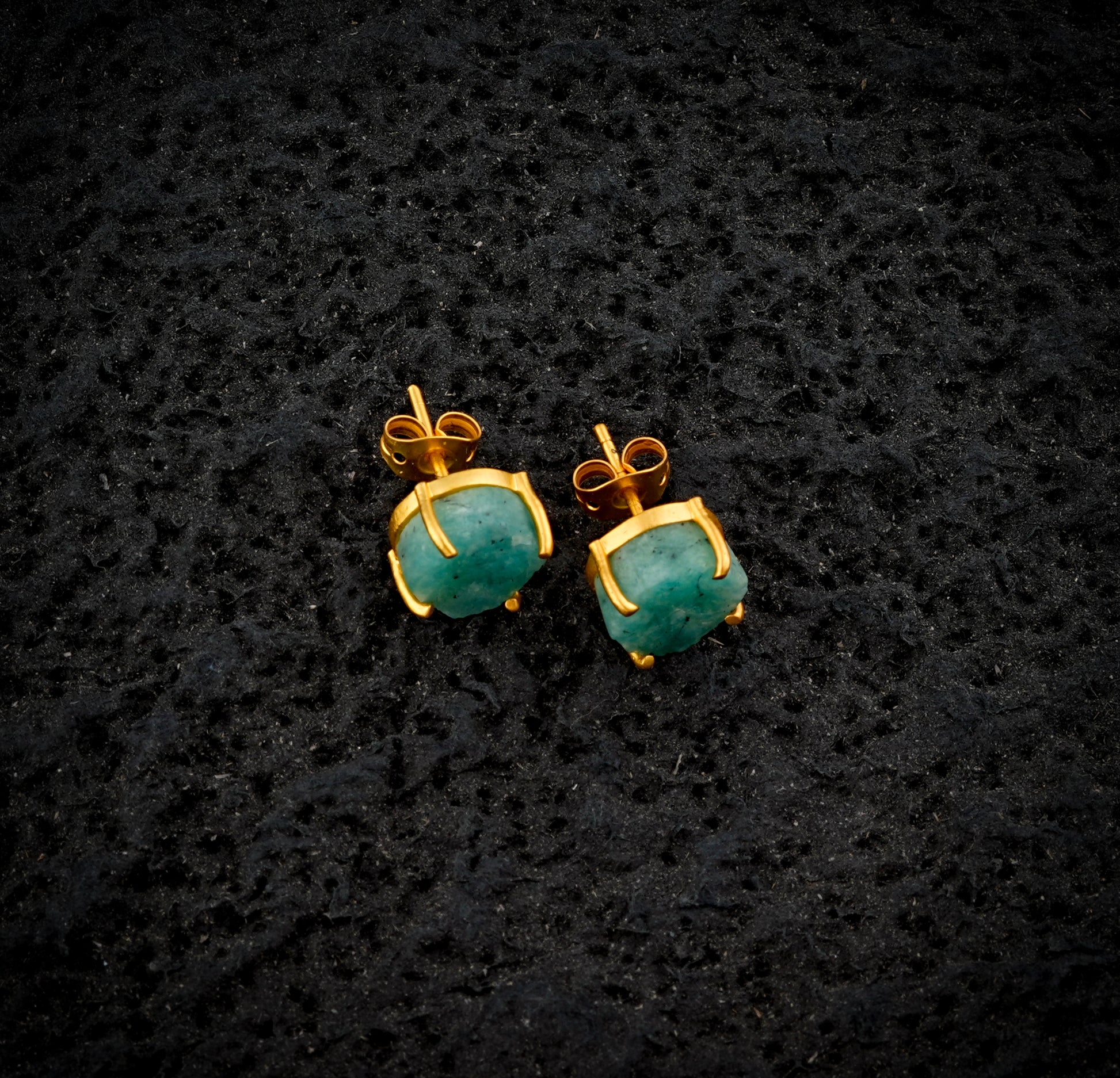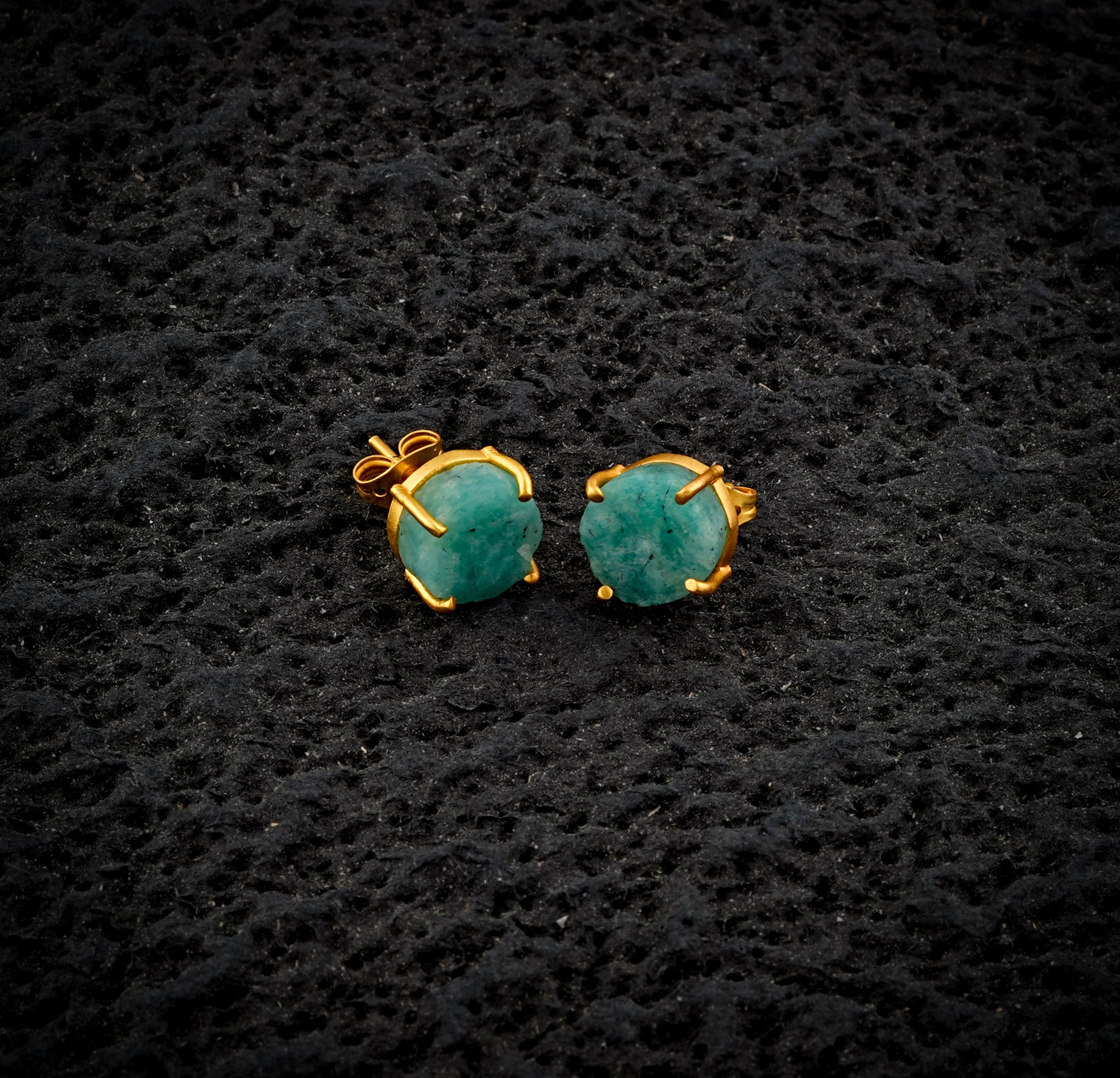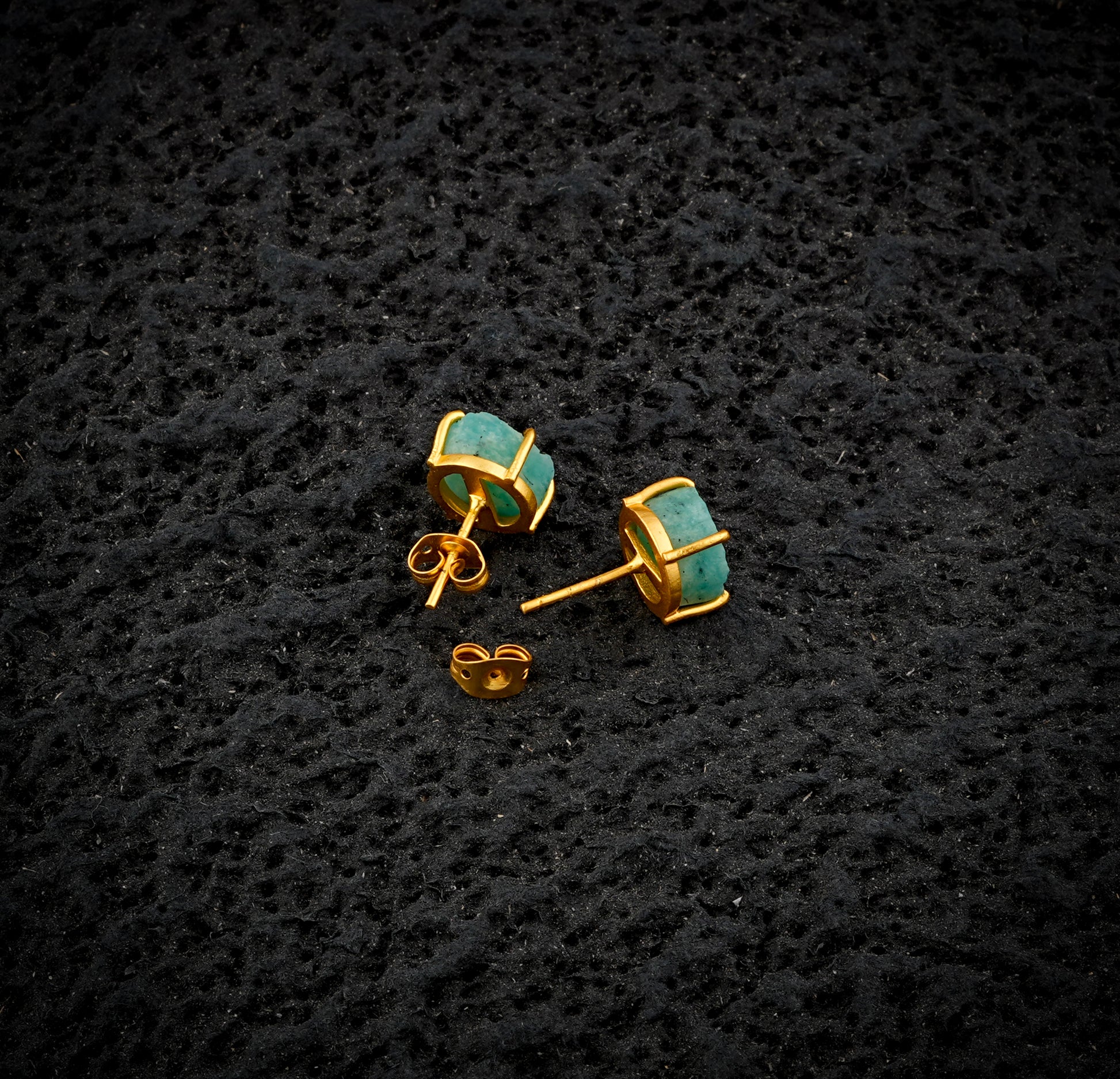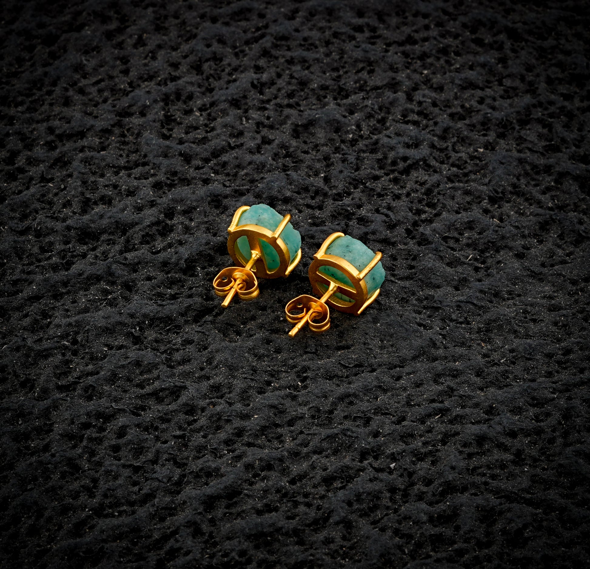 Natural Uncut Amazonite Studded In Gold Plated brass