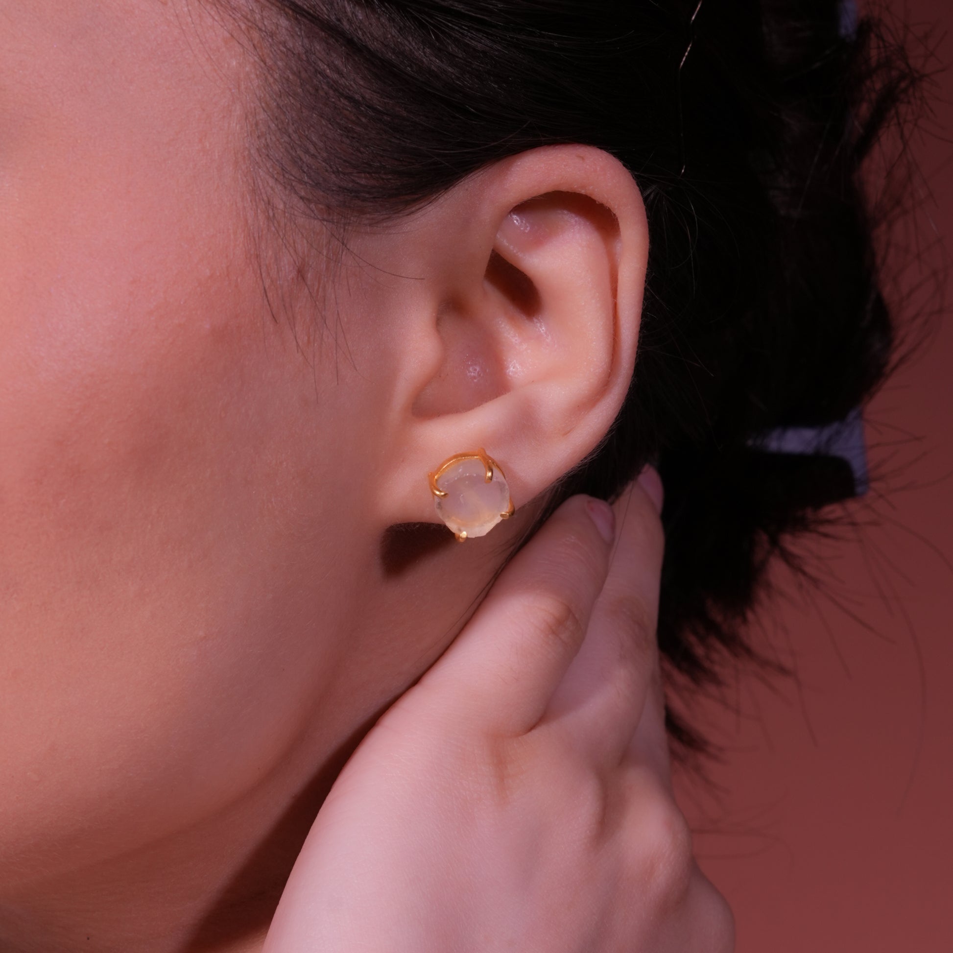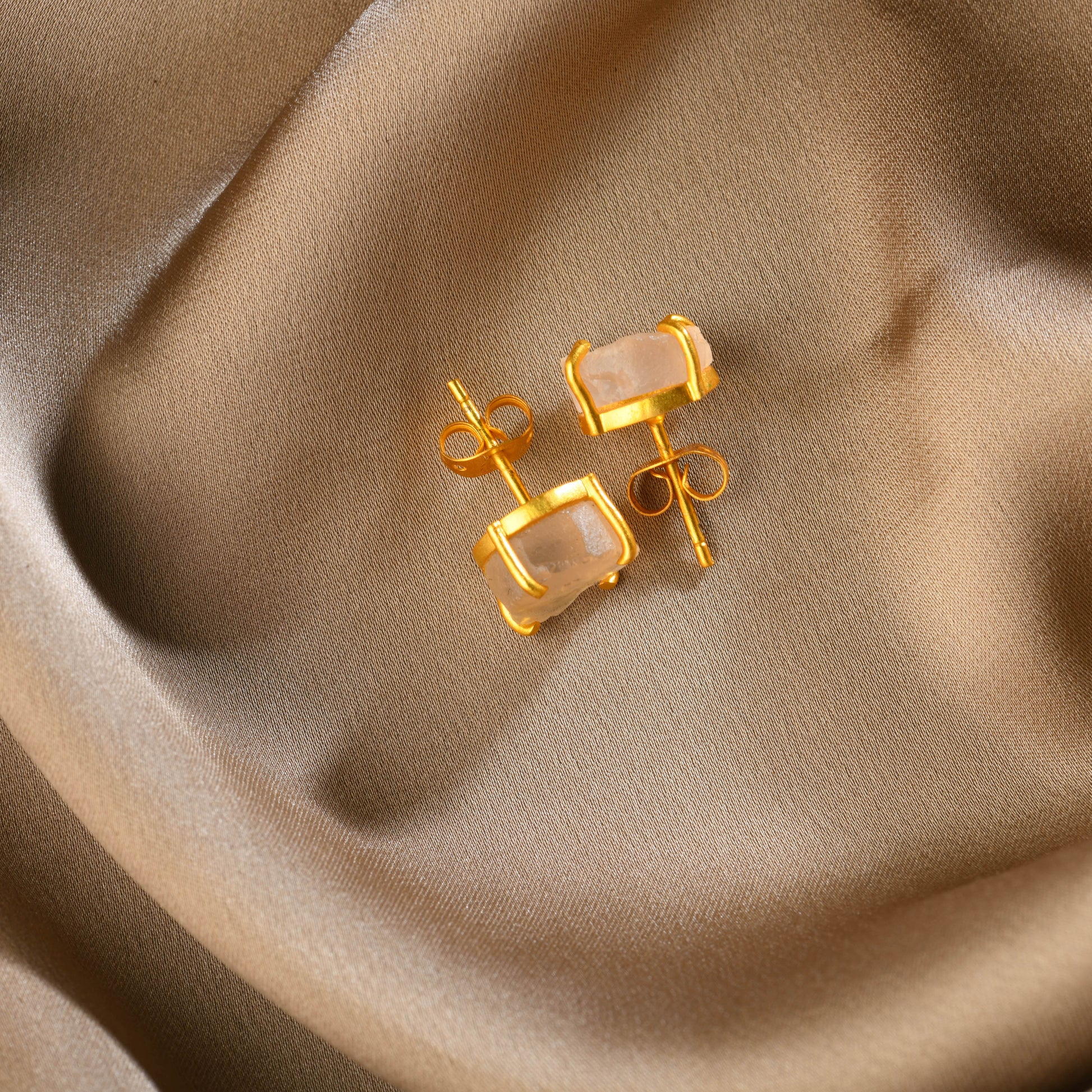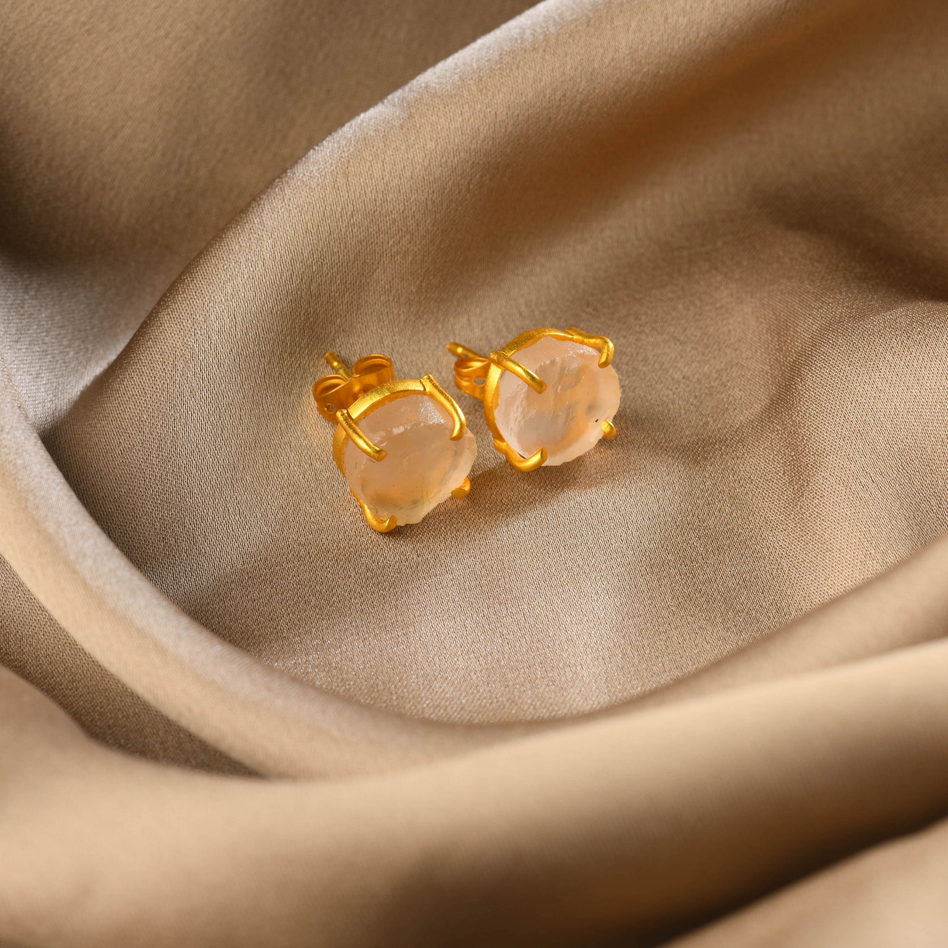 Natural Uncut Rose Quartz Studs