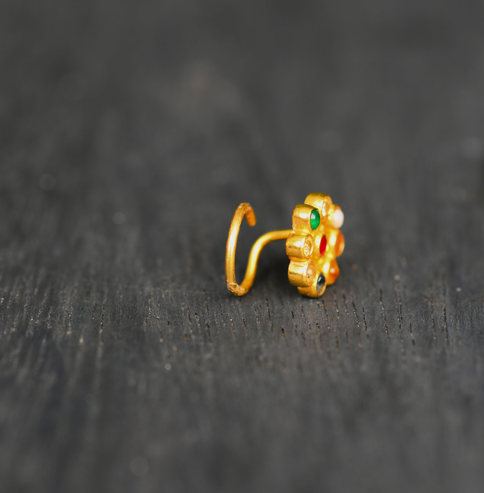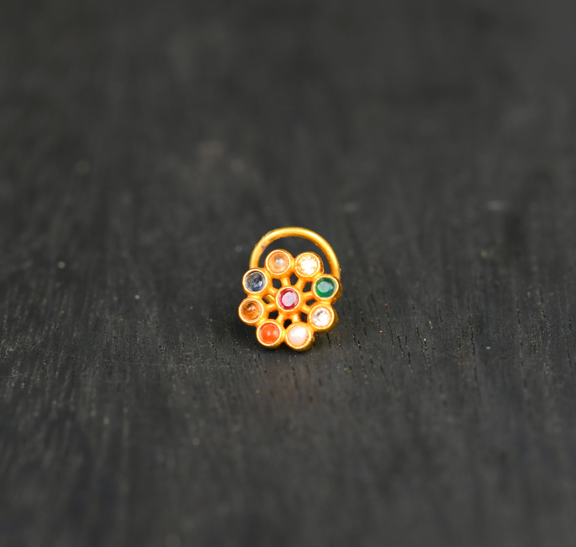 Nav Ratna Gold Plated Silver Nose Pin