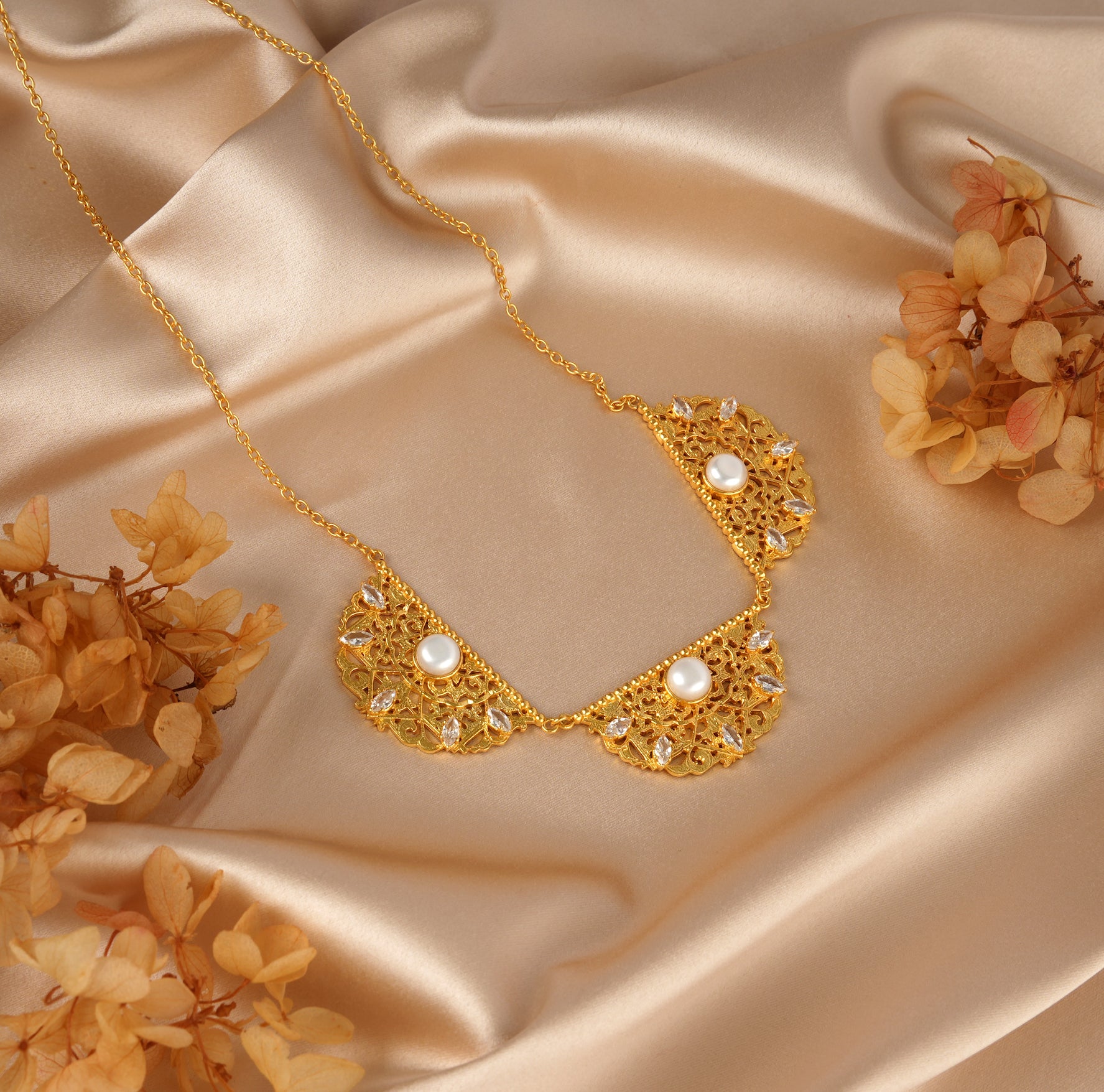 22kt Gold-plated Brass; Zirconium Stones; Pearls