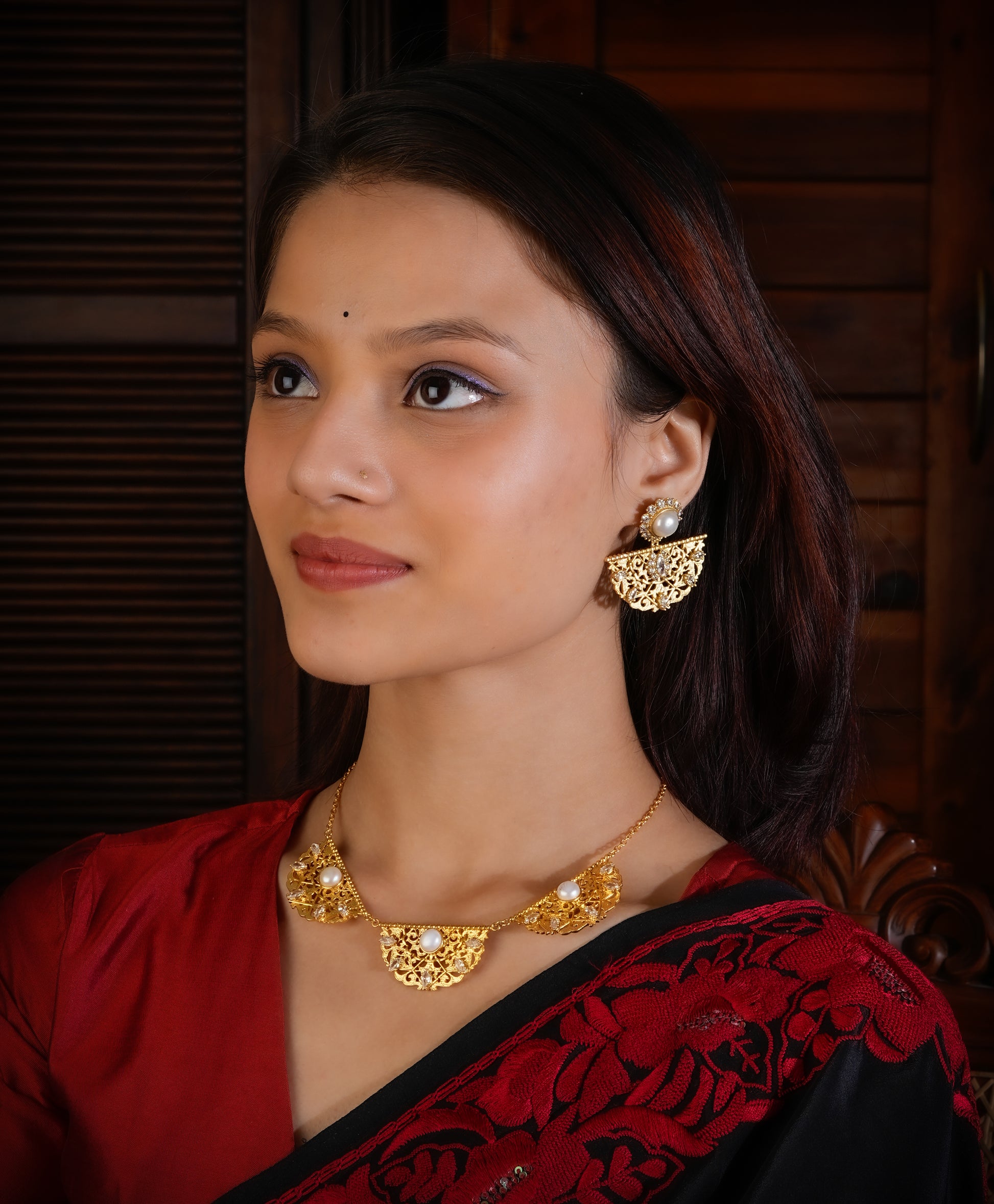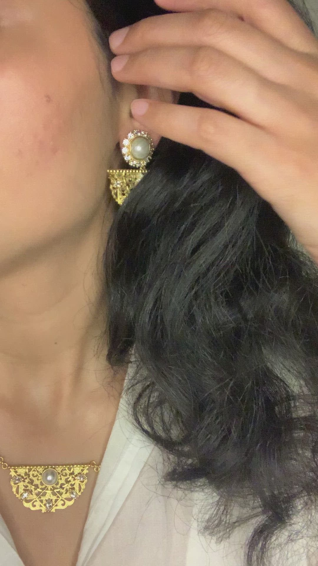 Capture the beauty of the moment with this stunning Nilofar Set! Embellished with dazzling pearl and zircon accents, its classic design is perfect for special occasions. Its eye-catching appeal will be sure to brighten your look. Shine on!