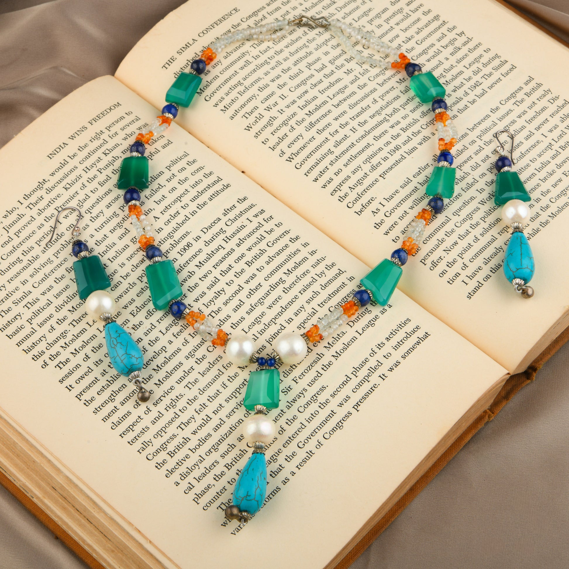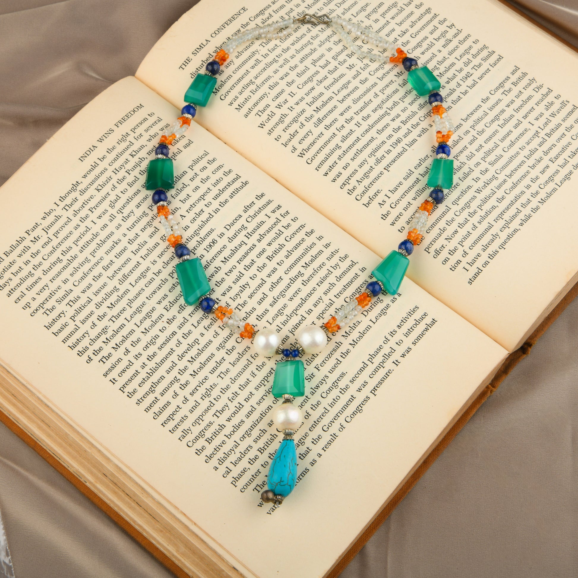 Note: All our jewellery is handcrafted, and hence some variations may occur, which only add to its beauty.A refined harmony of silver, freshwater pearls, and vibrant gemstones, this necklace celebrates colour, craft, and free-spirited elegance. Designed for the modern muse, it brings together earthy tones and artisanal detail in a statement that feels both soulful and luxurious.