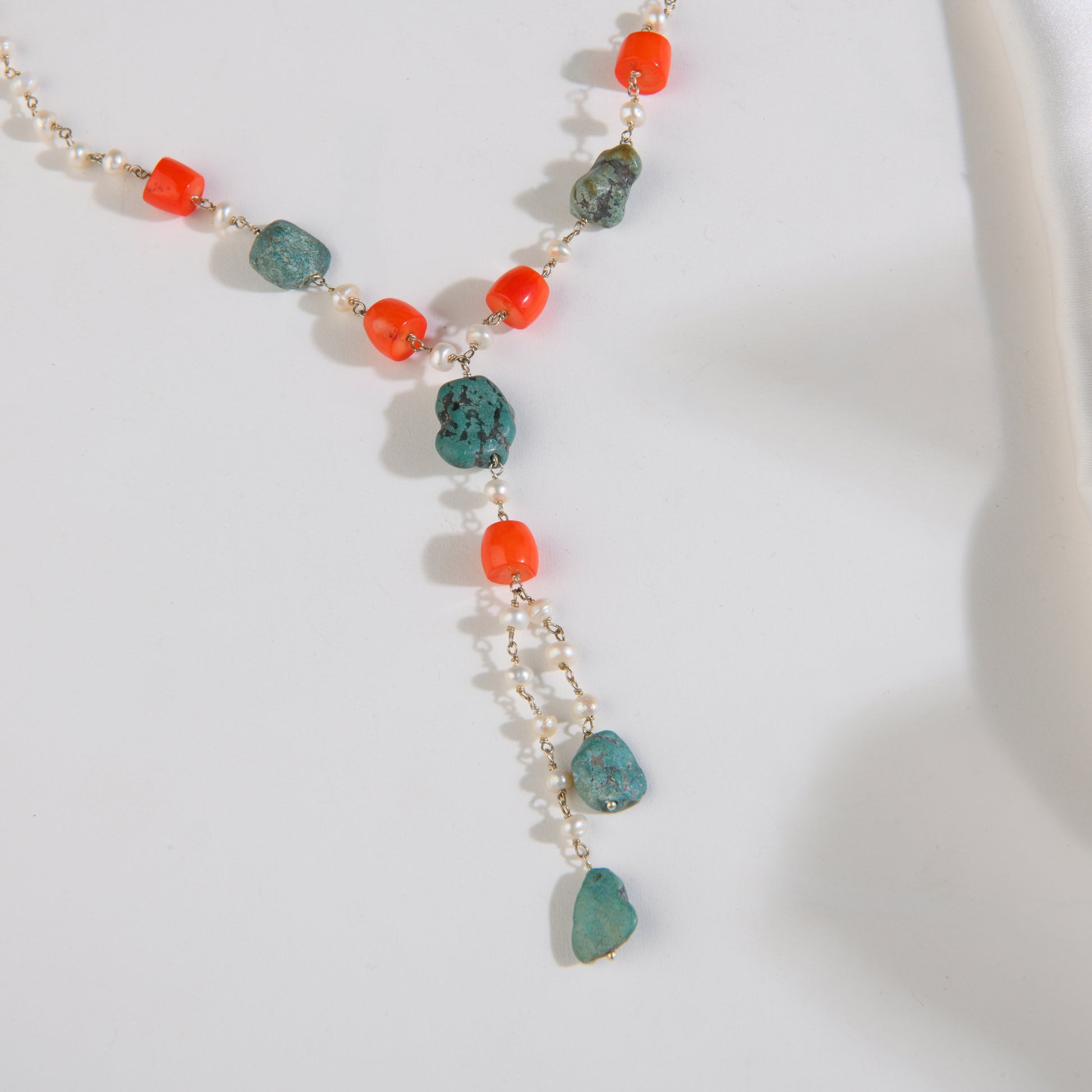 Turquoise and Coral Stones;  Fresh Water Pearls