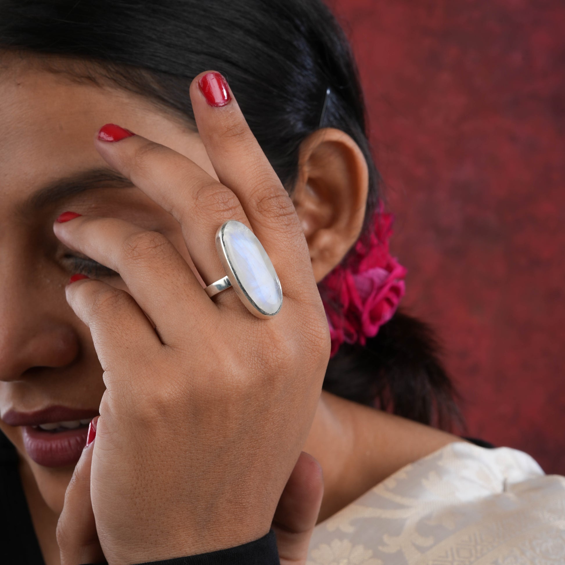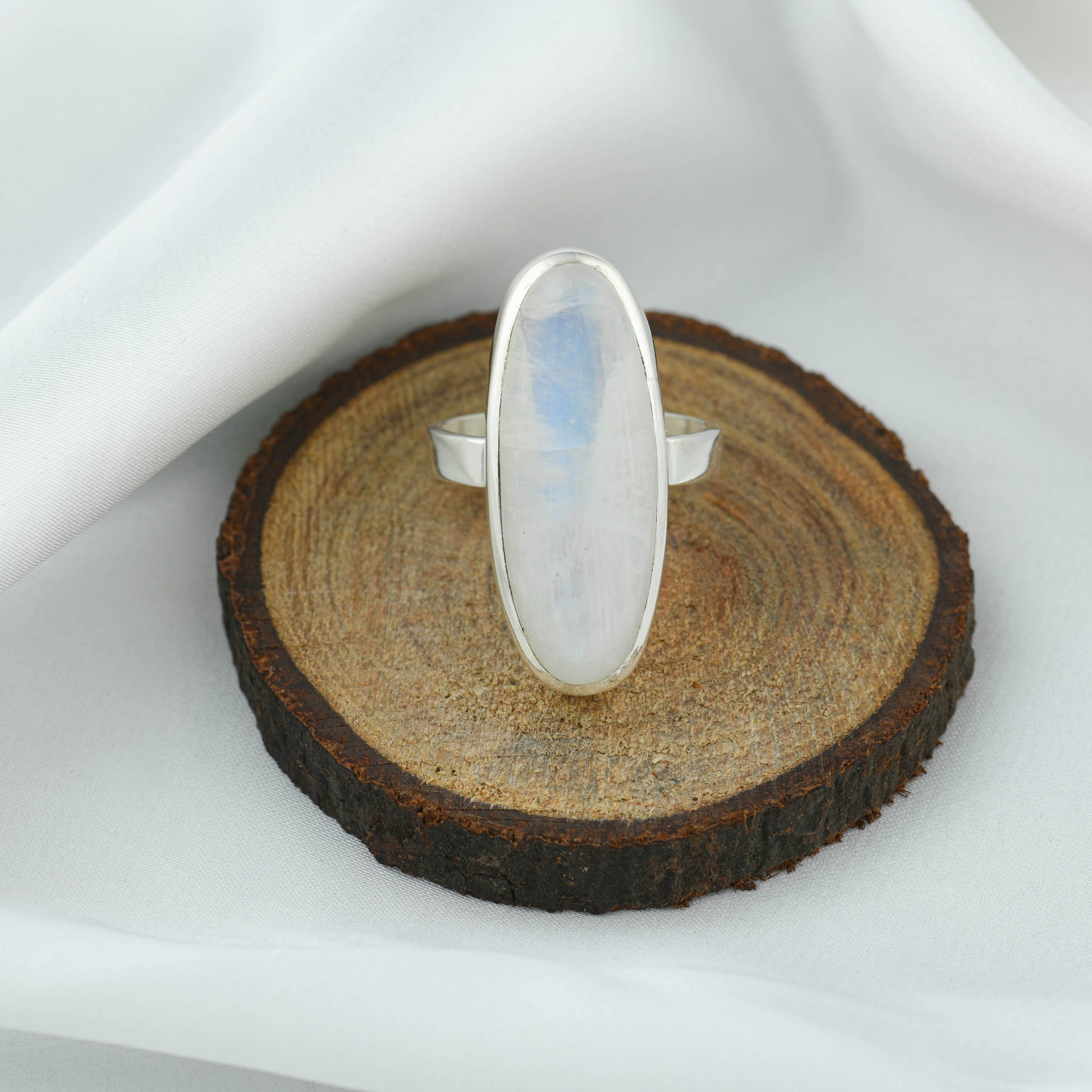 Oblong Moonstone Silver Ring
