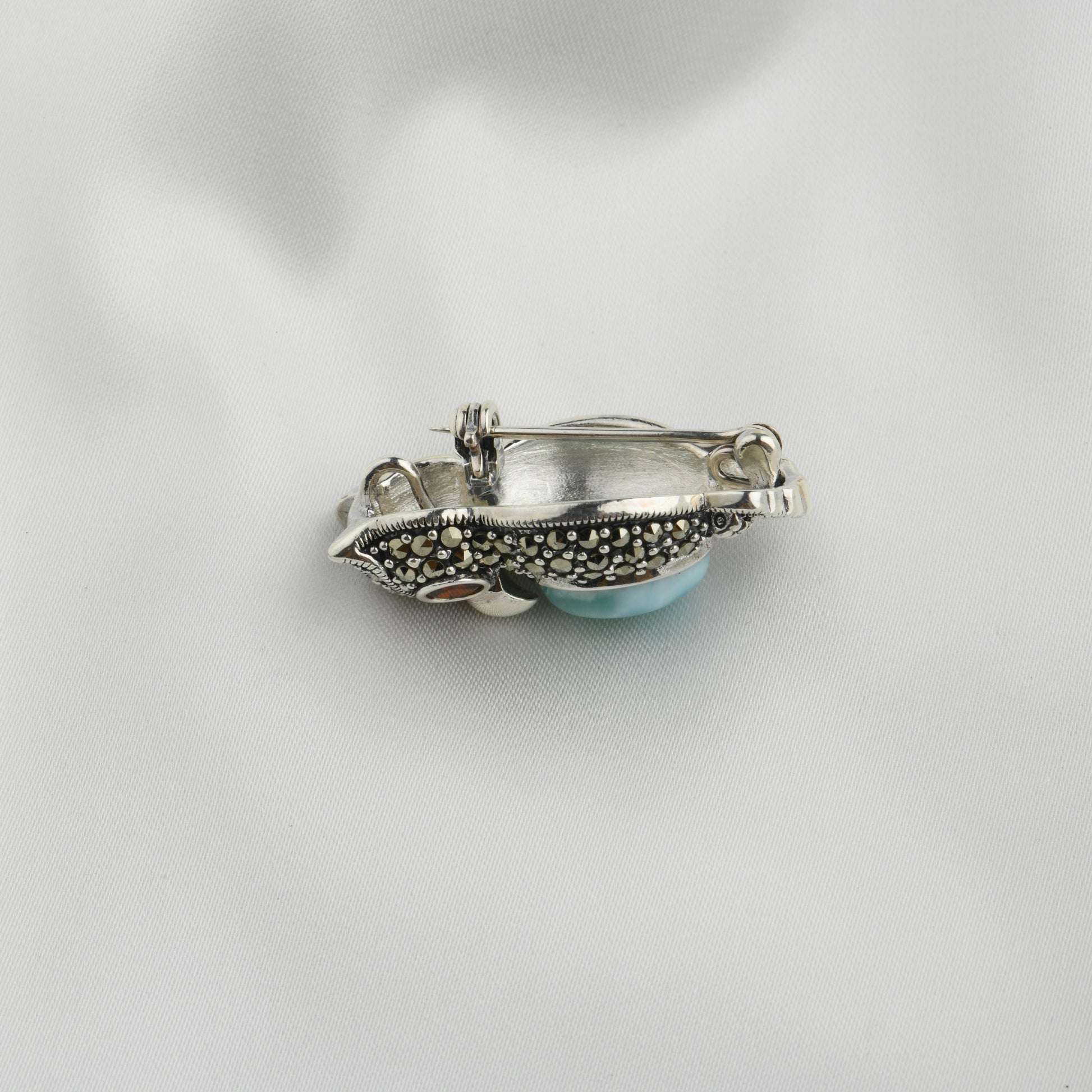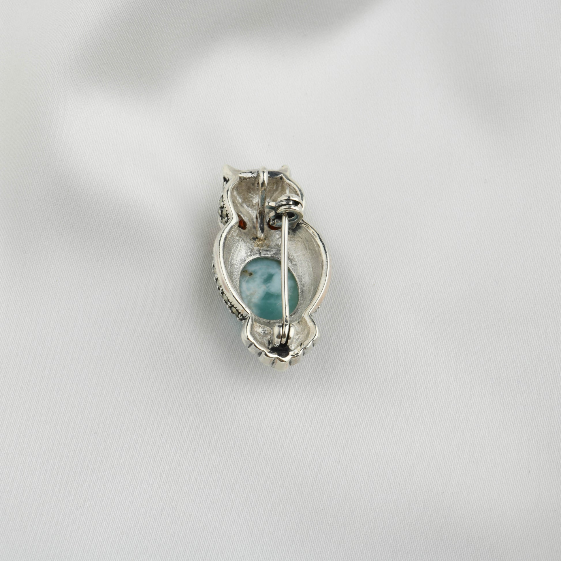 Ocean Heart Owl: Silver Marcasite Brooch Cum Pendant