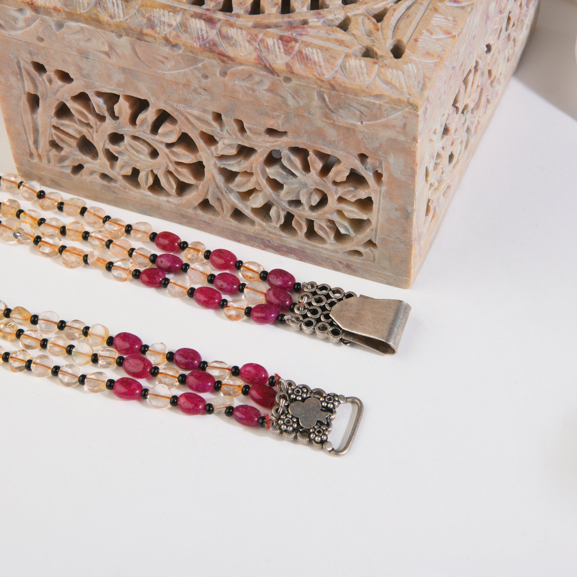 Red Onyx Beads, Citrine, Black Beads, Silver