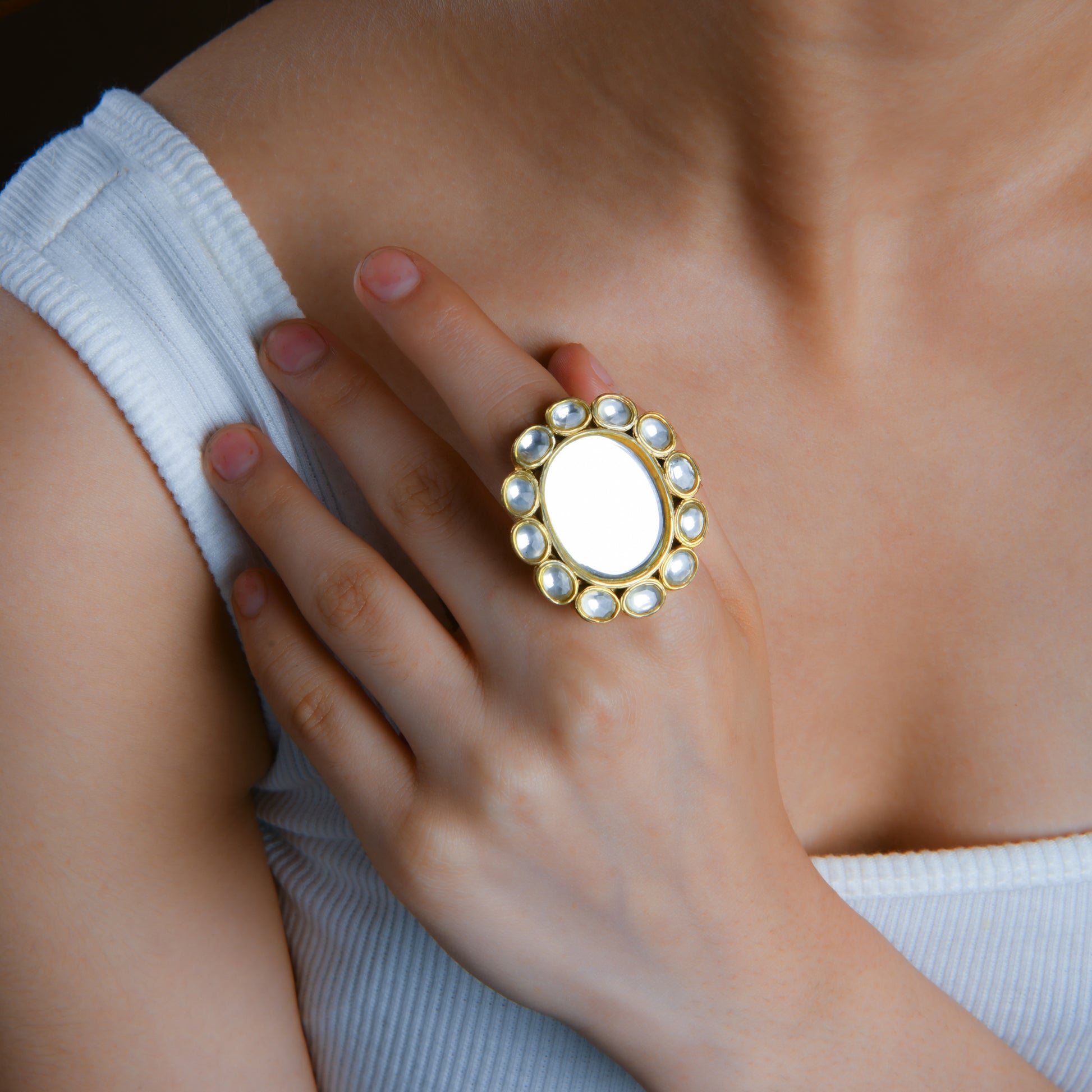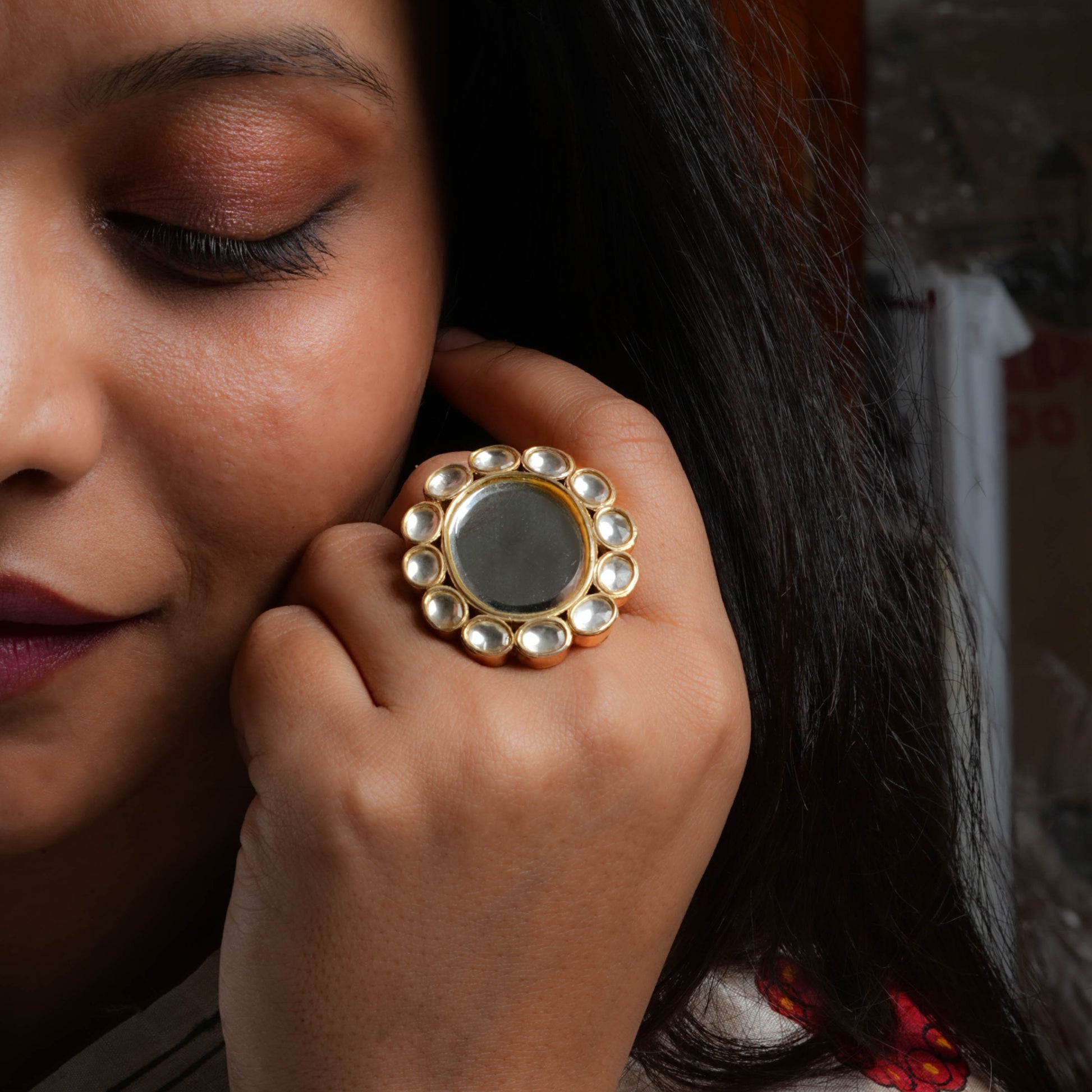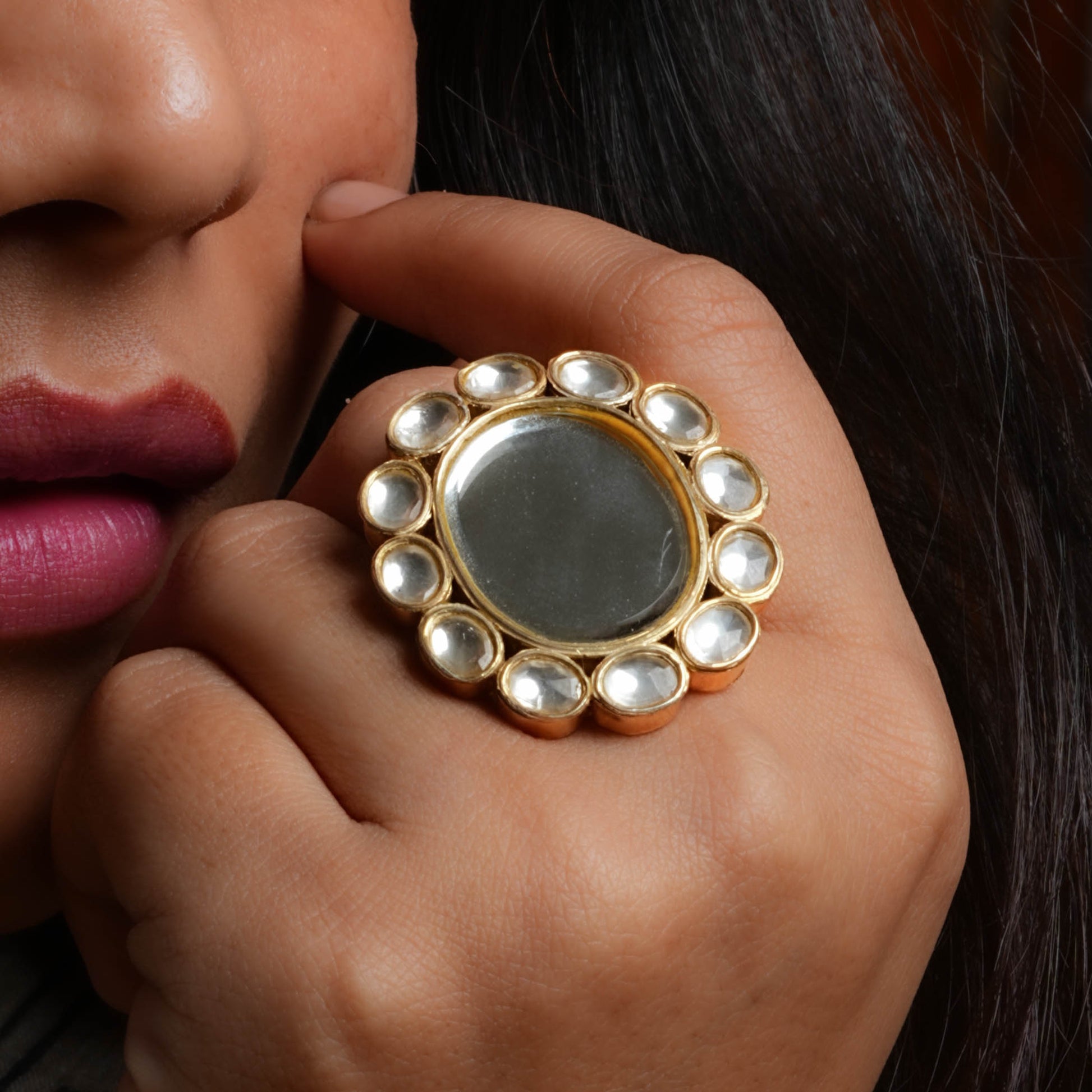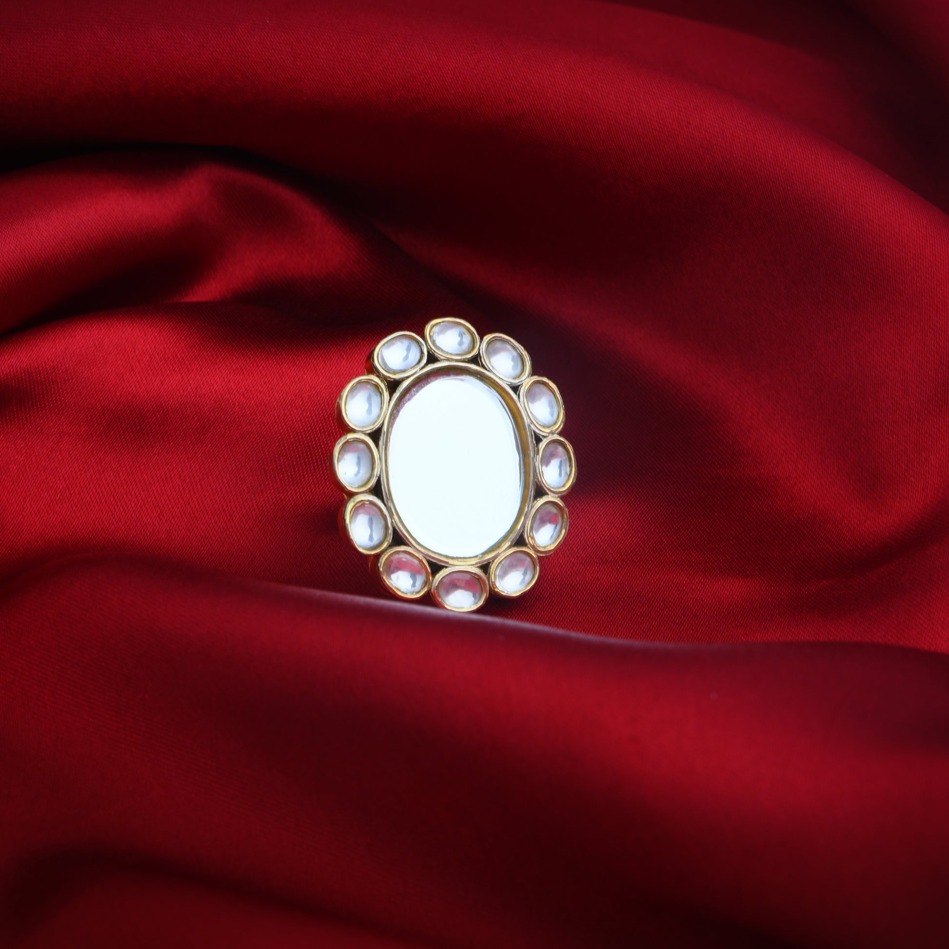 Oval Kundan Arsi Wedding Ring In Silver