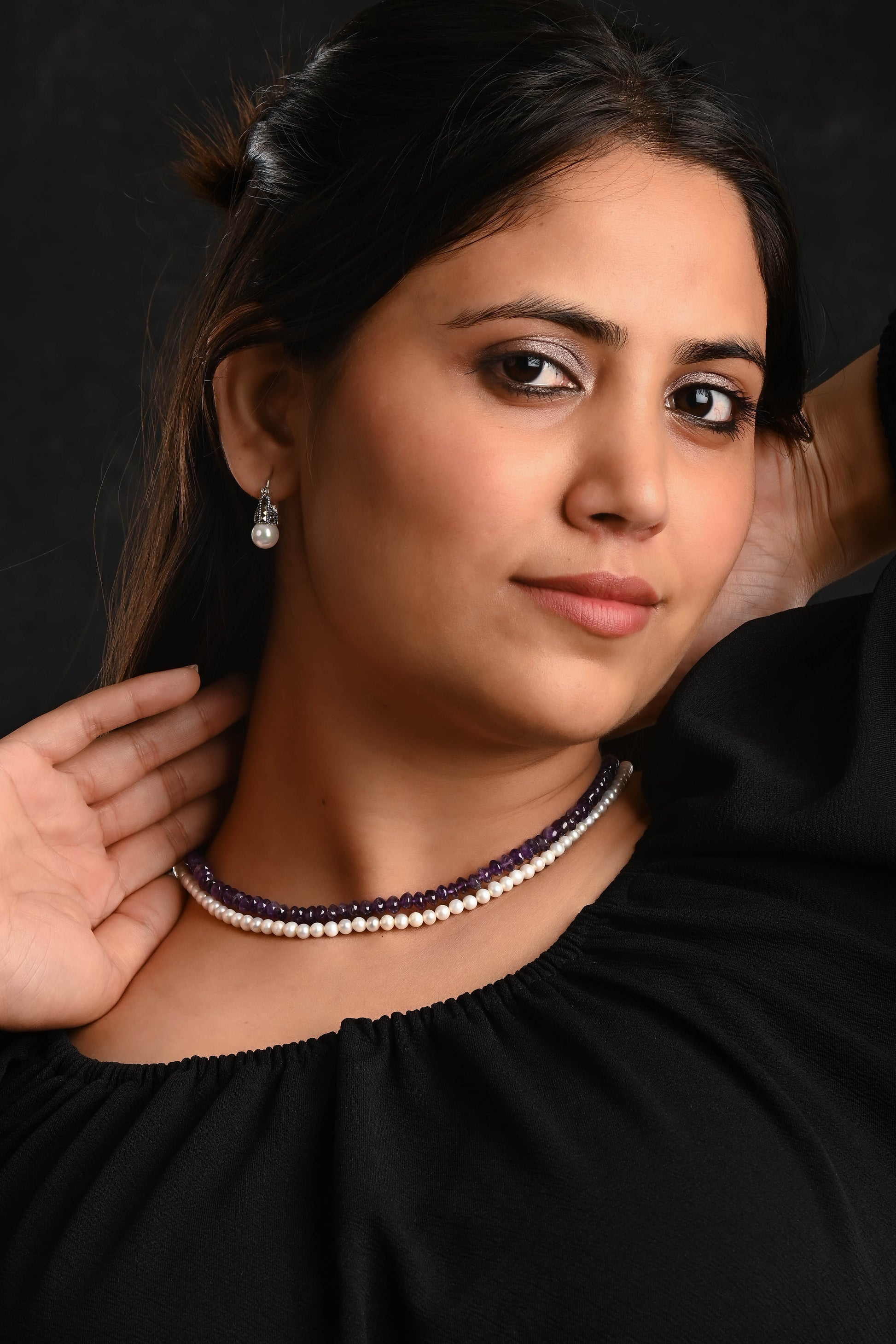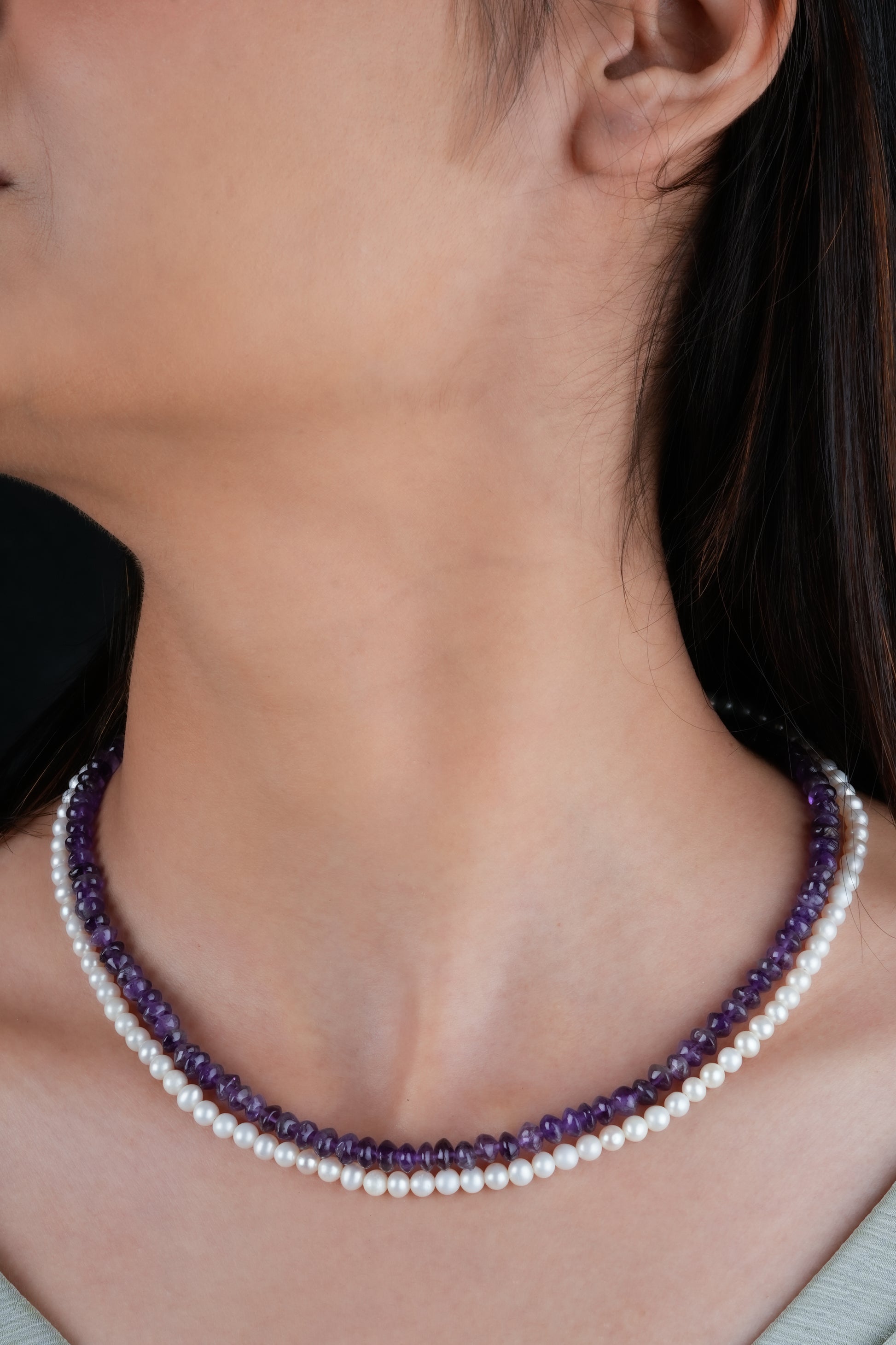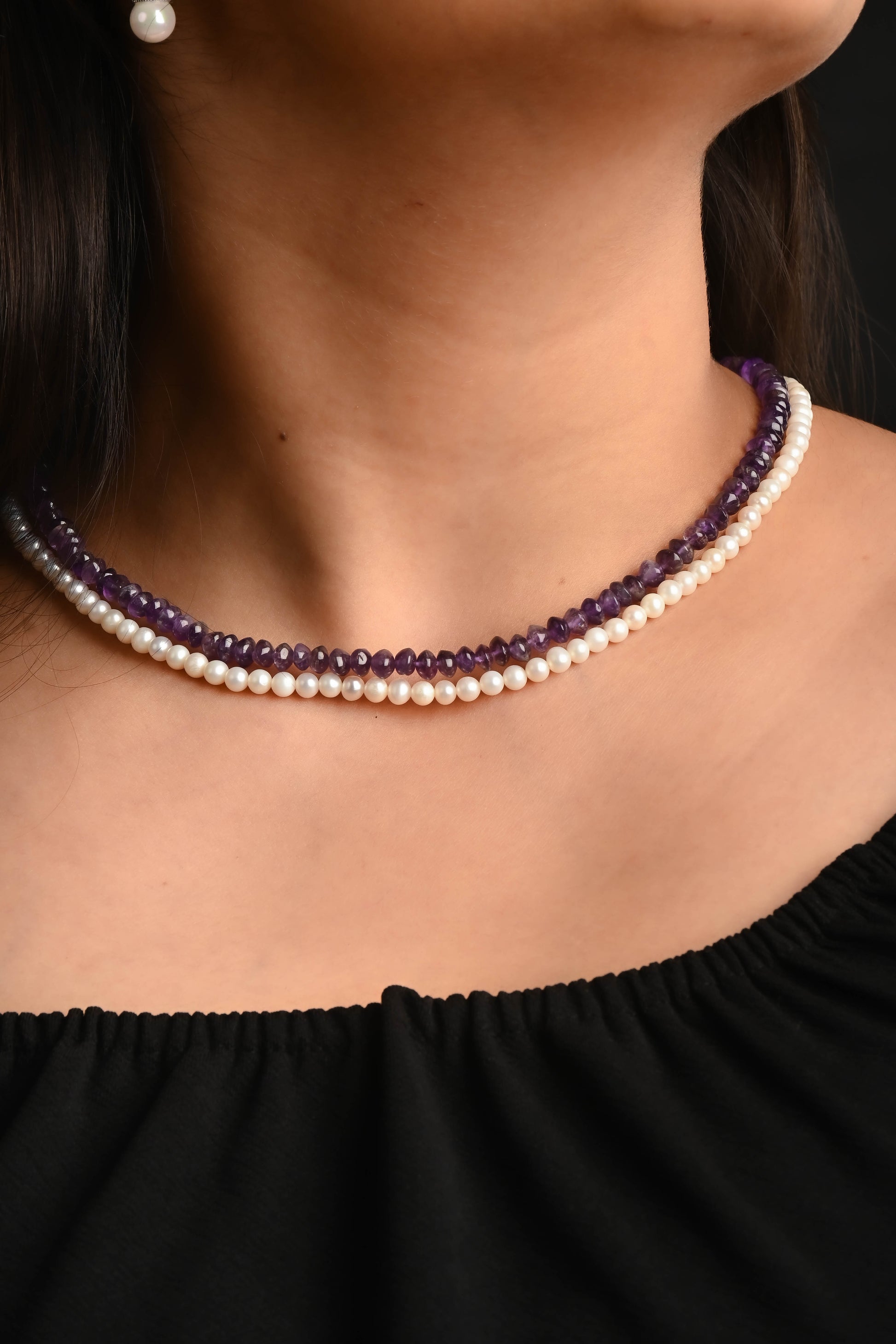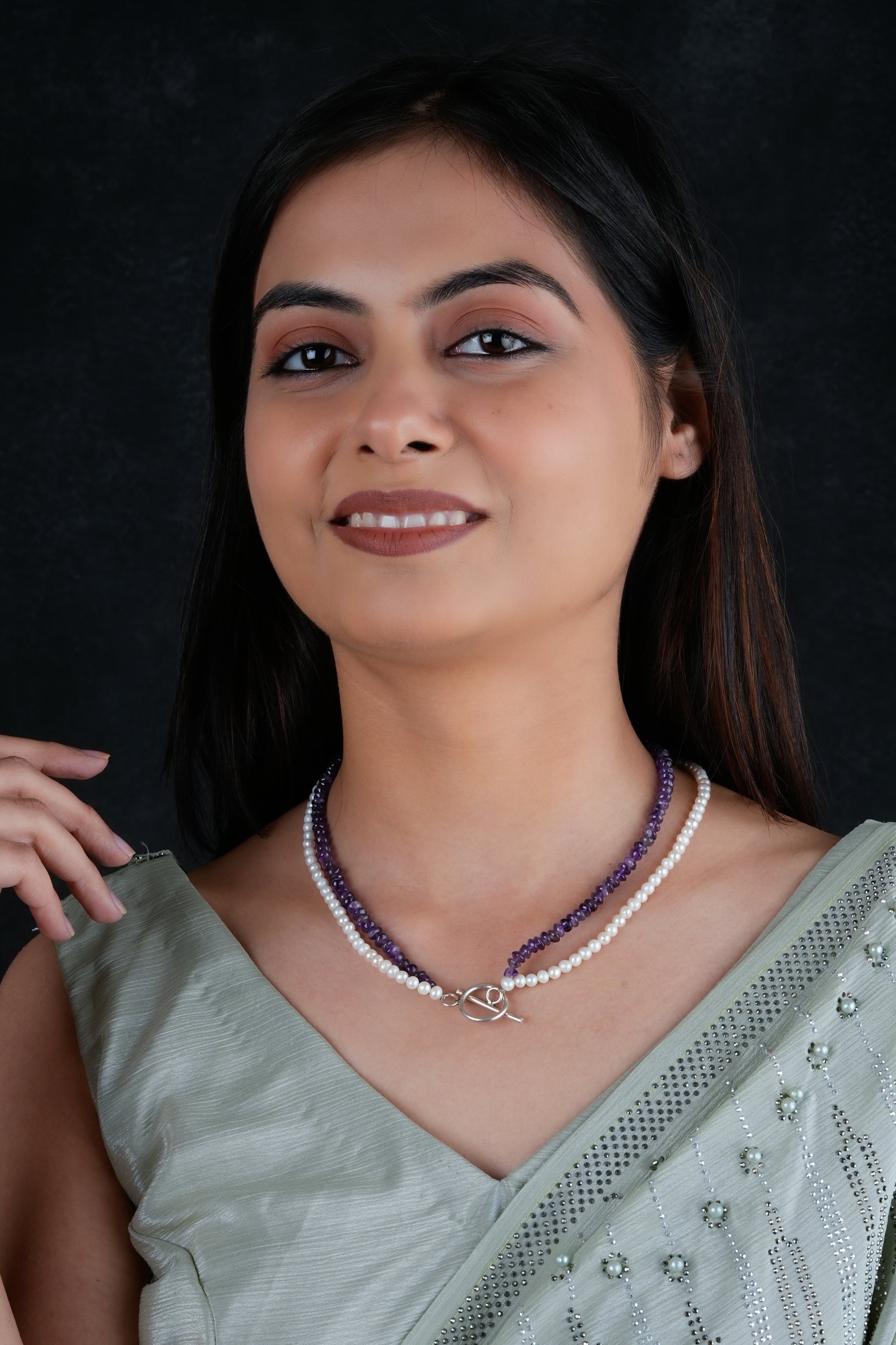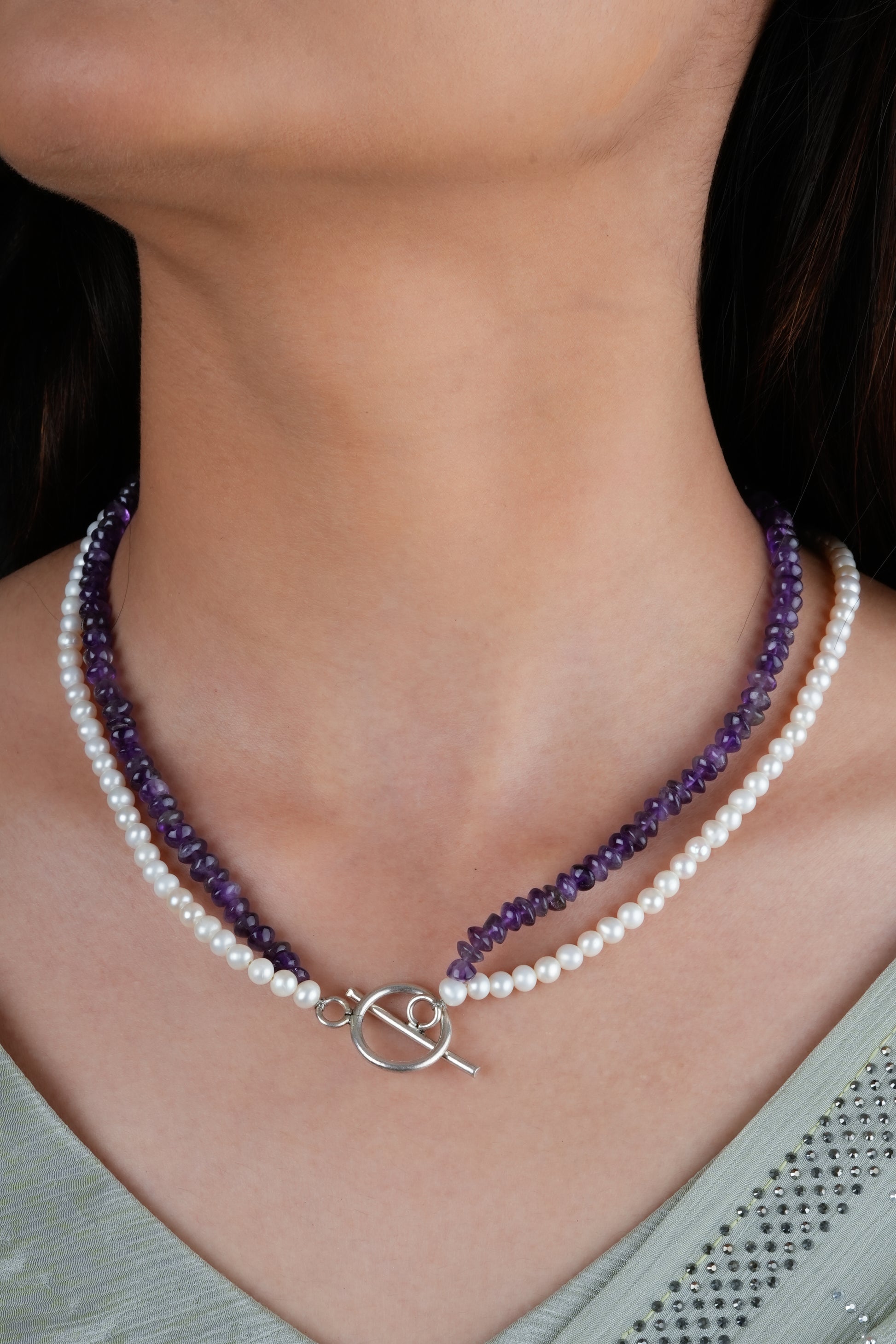 Natural Freshwater Pearls; Amethyst Beads, Lock Is Silver Plated Brass