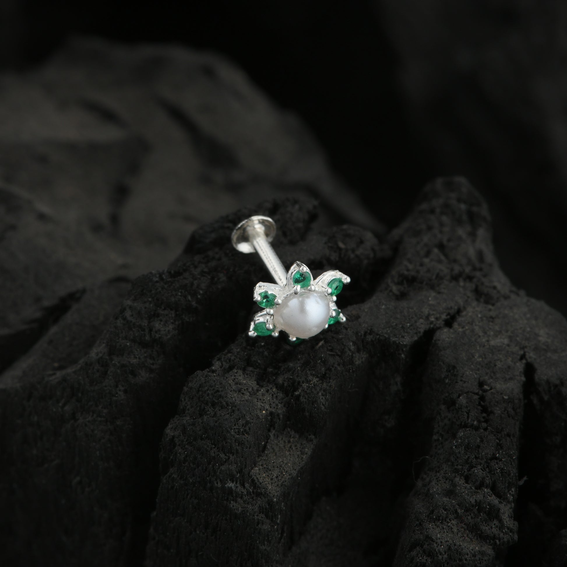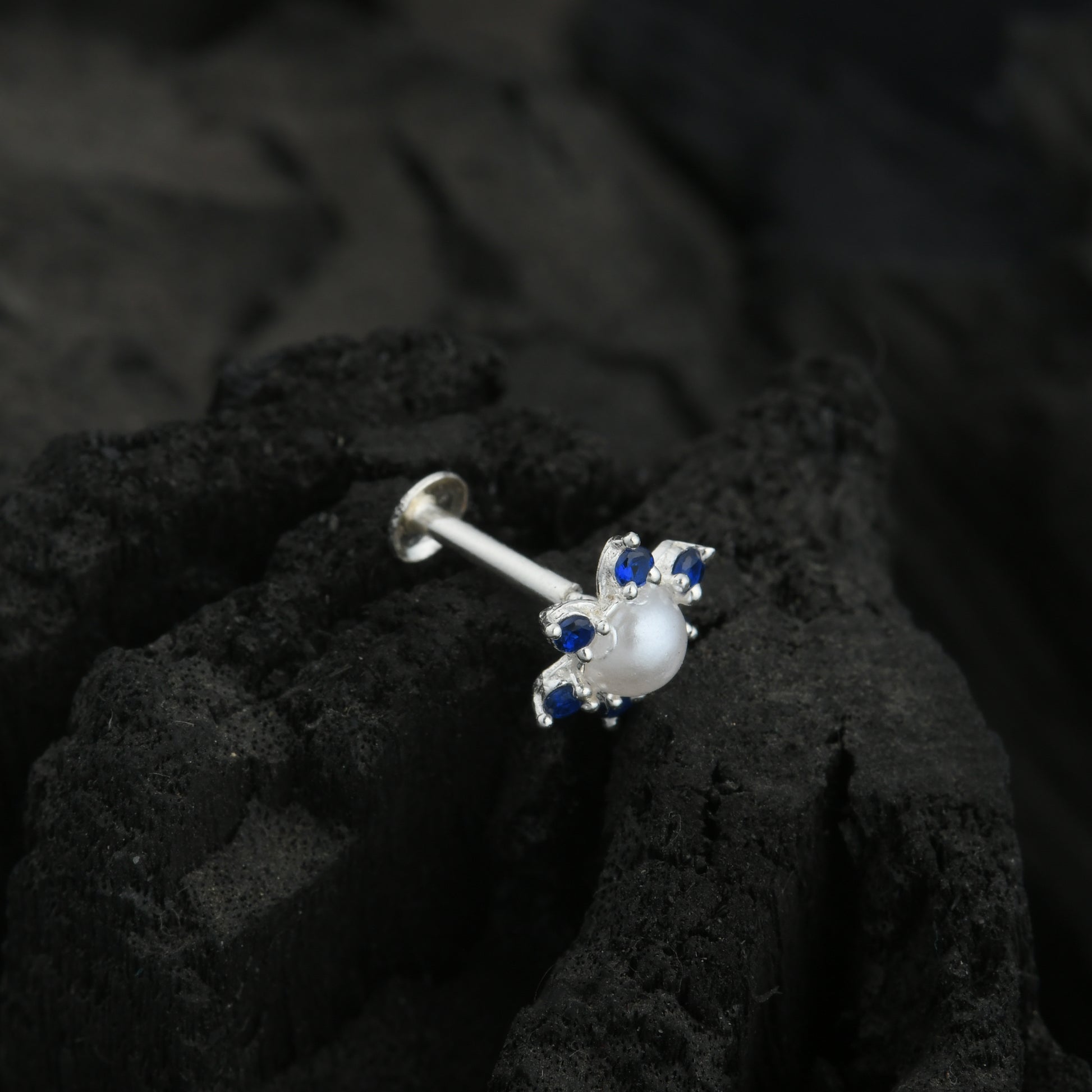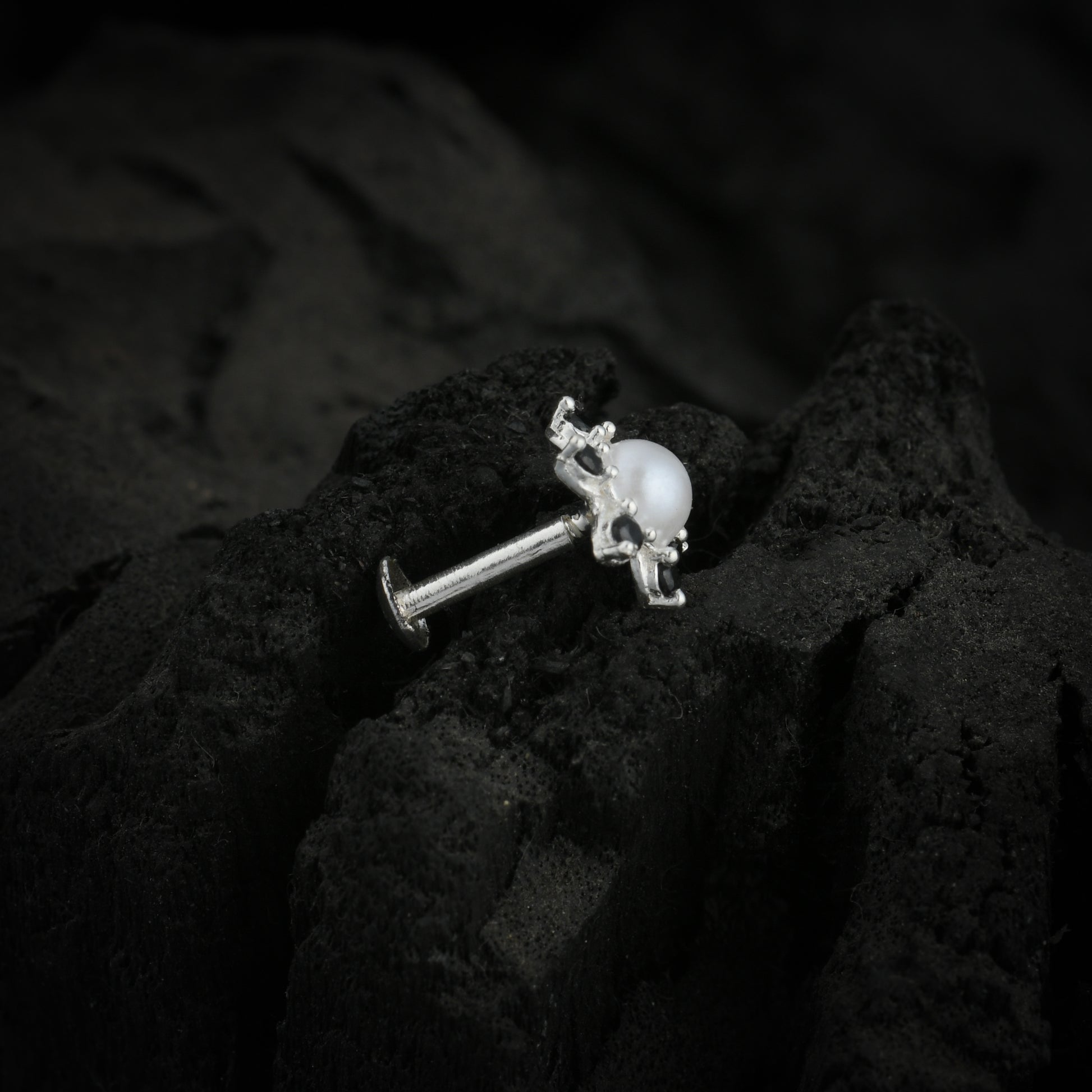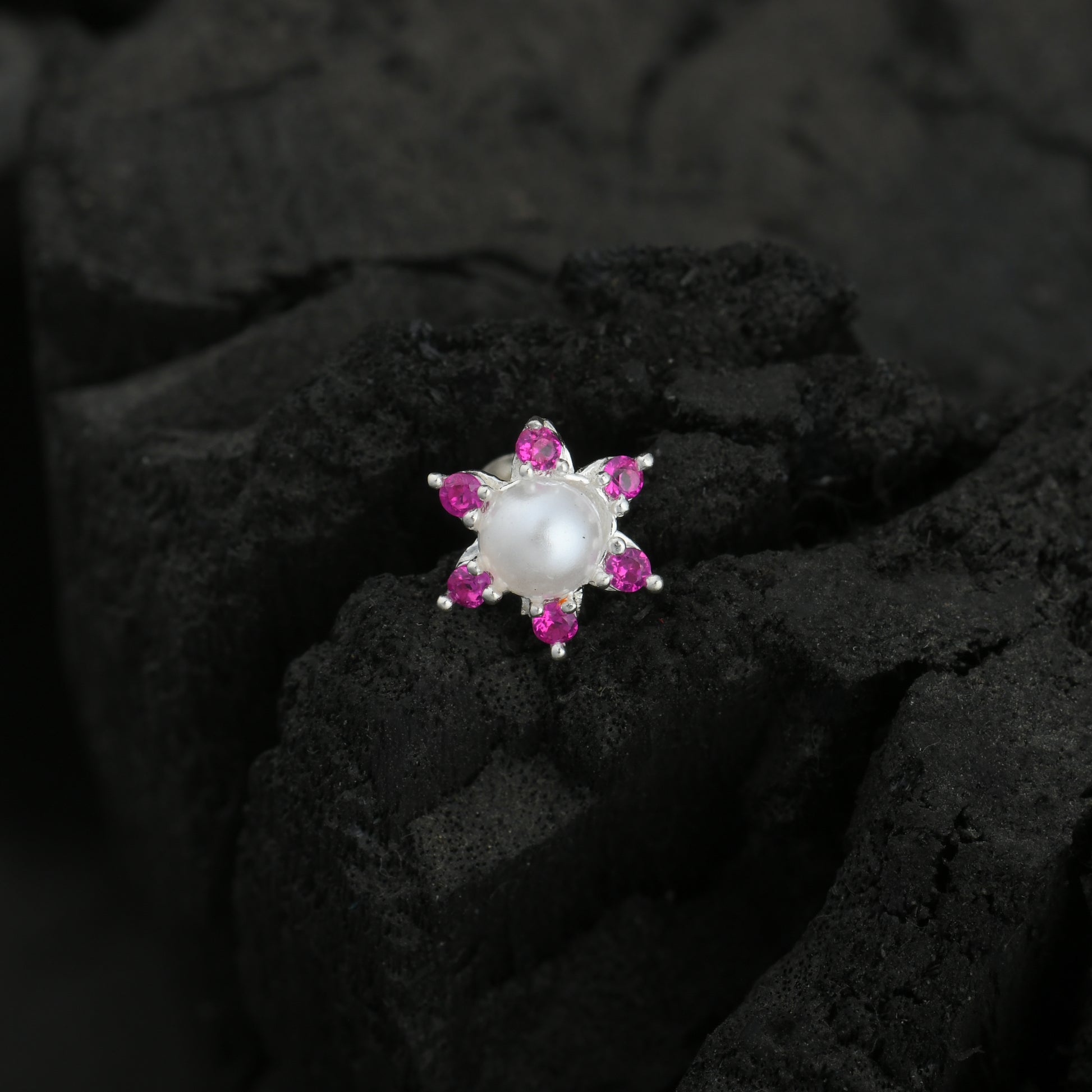 Material  92.5 Silver. Pearl and CZ. Screw Type. Needs Piercing