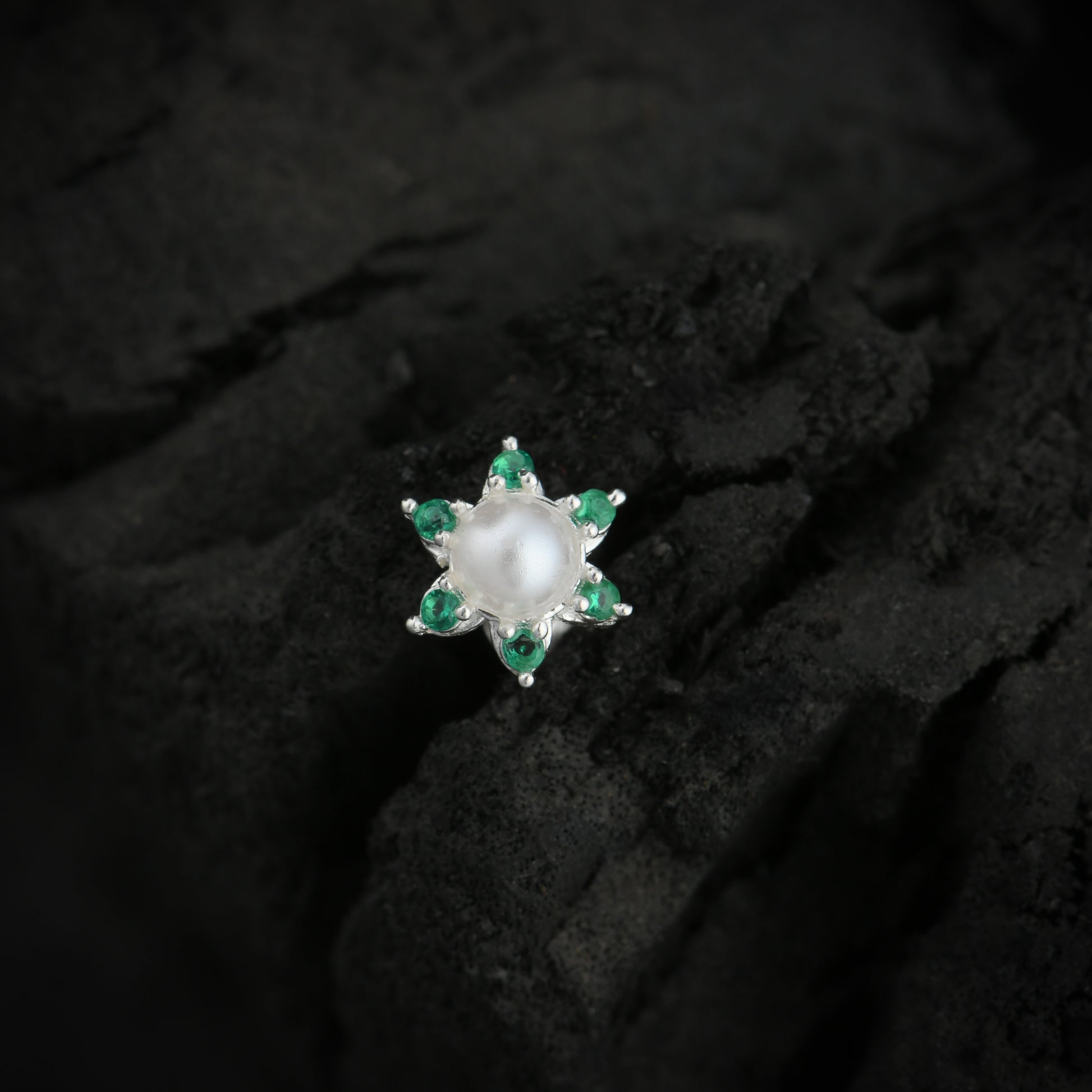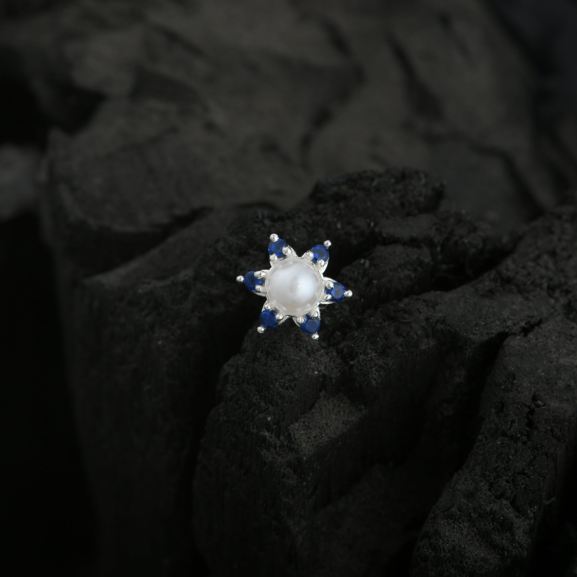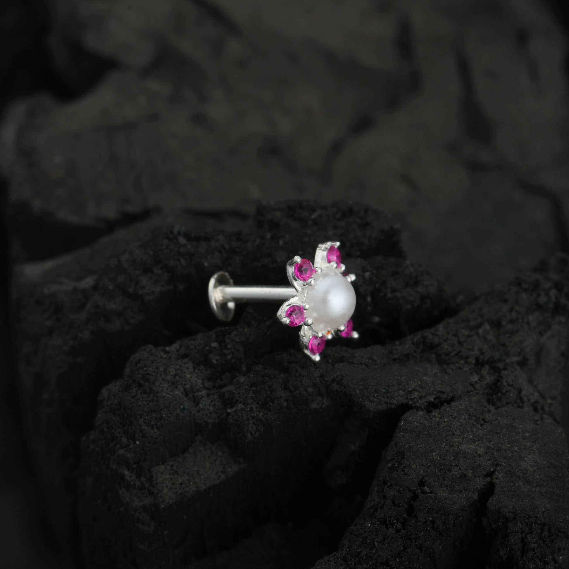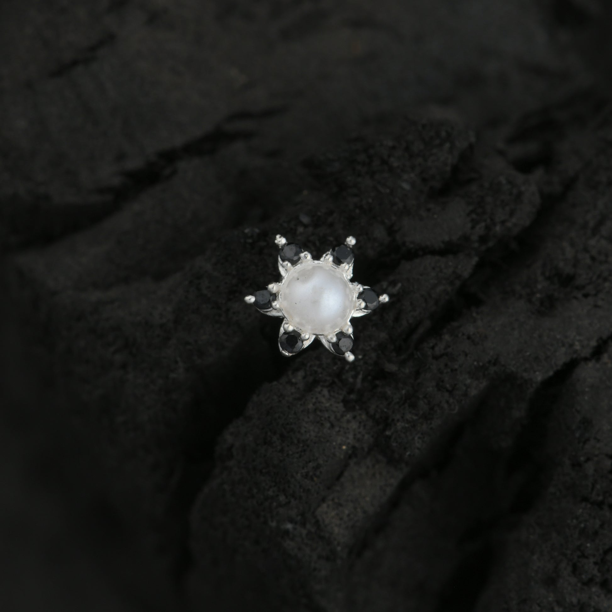 Material  92.5 Silver. Pearl and CZ. Screw Type. Needs Piercing