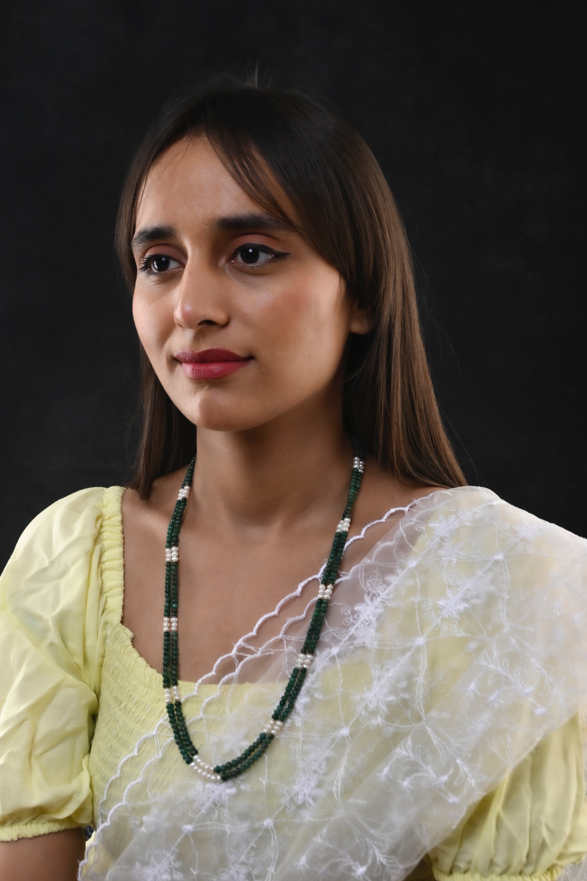 Pearls and Green Aventurine Strings Necklace