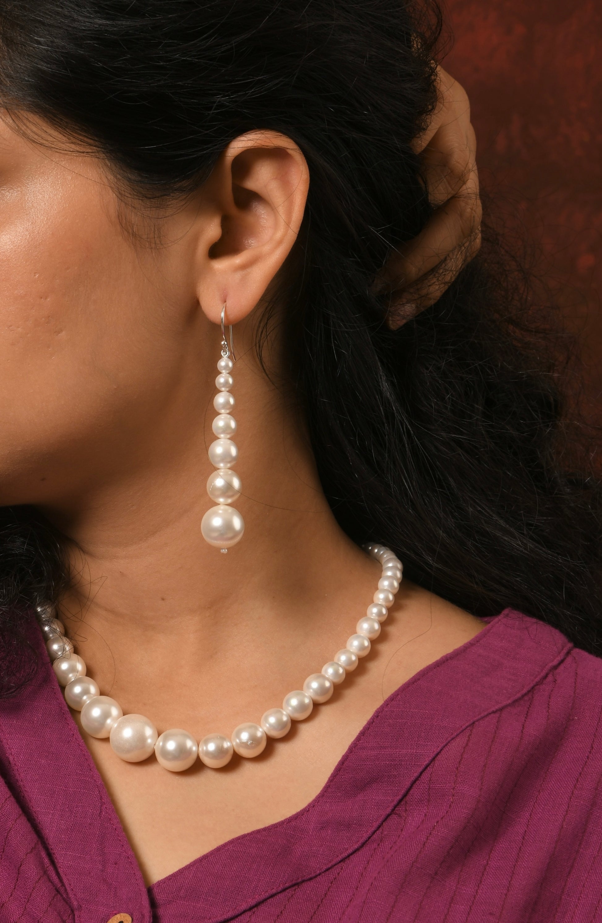 These Bold Graduated Pearl Danglers will make any outfit pop! Delicately designed with lustrous pearls, these earrings give a touch of stylish sophistication, while still being light and comfortable to wear. Add a touch of glamour to your look with these timeless earrings!