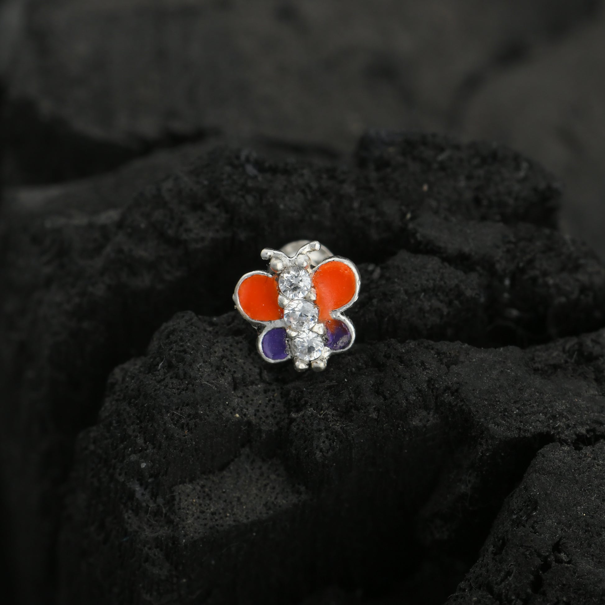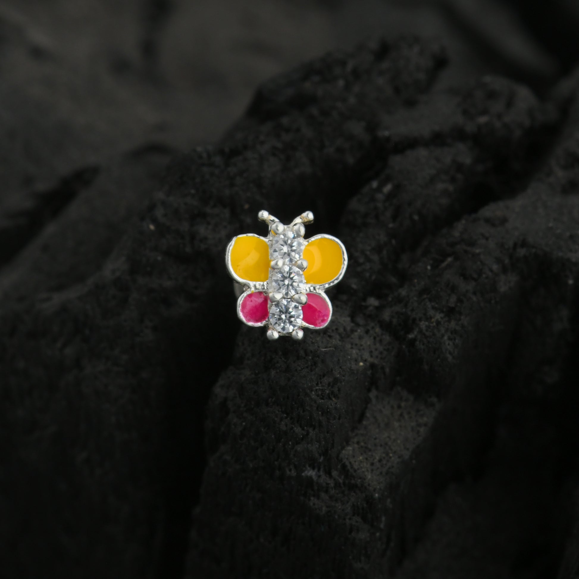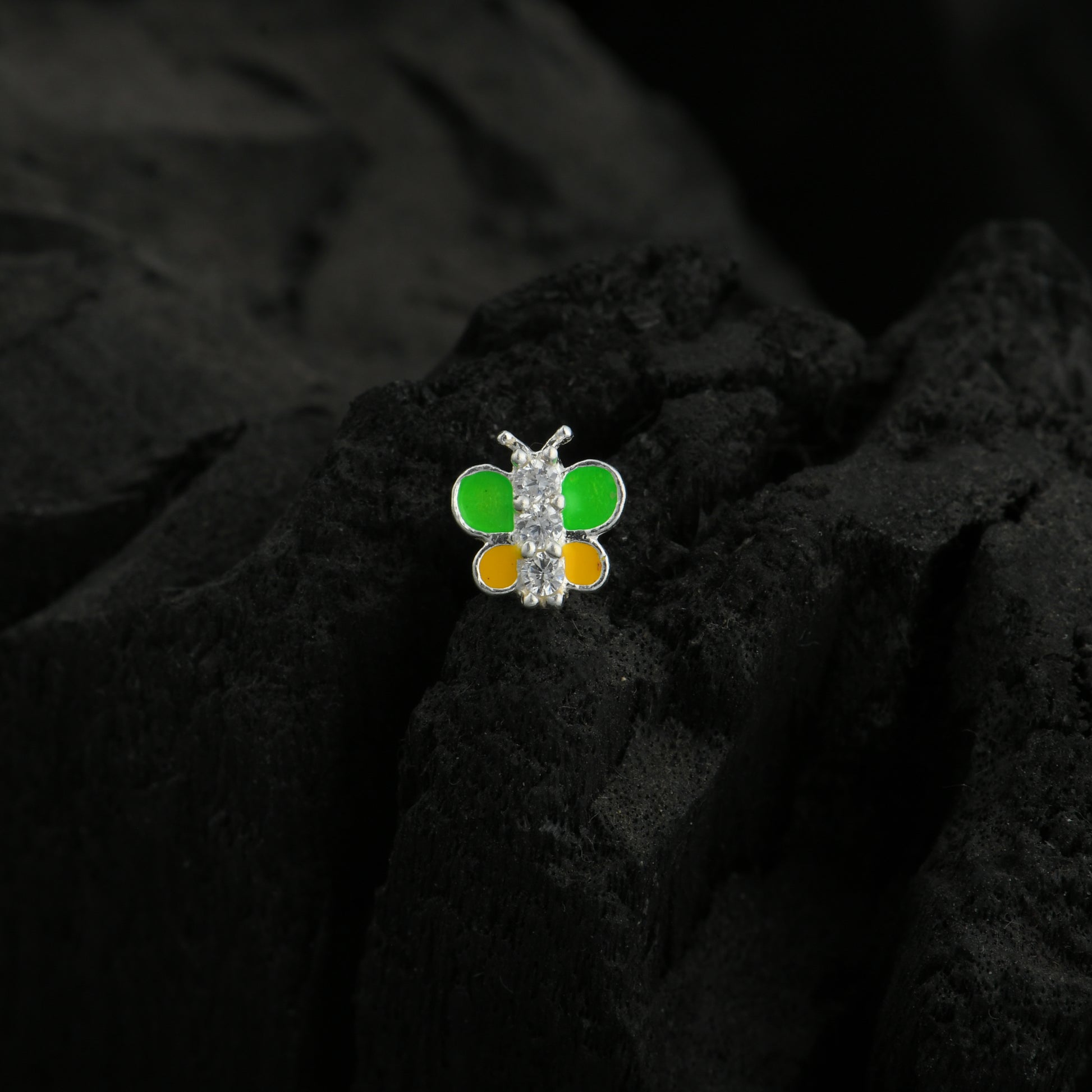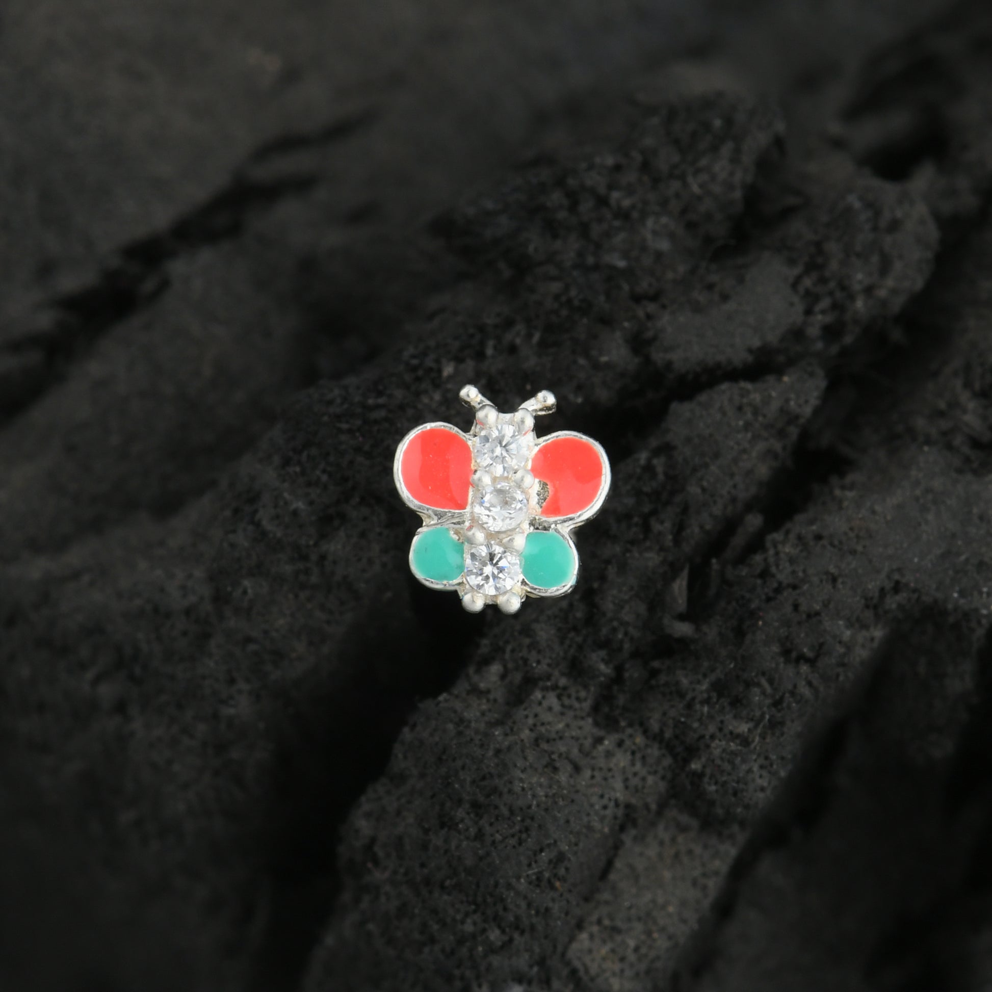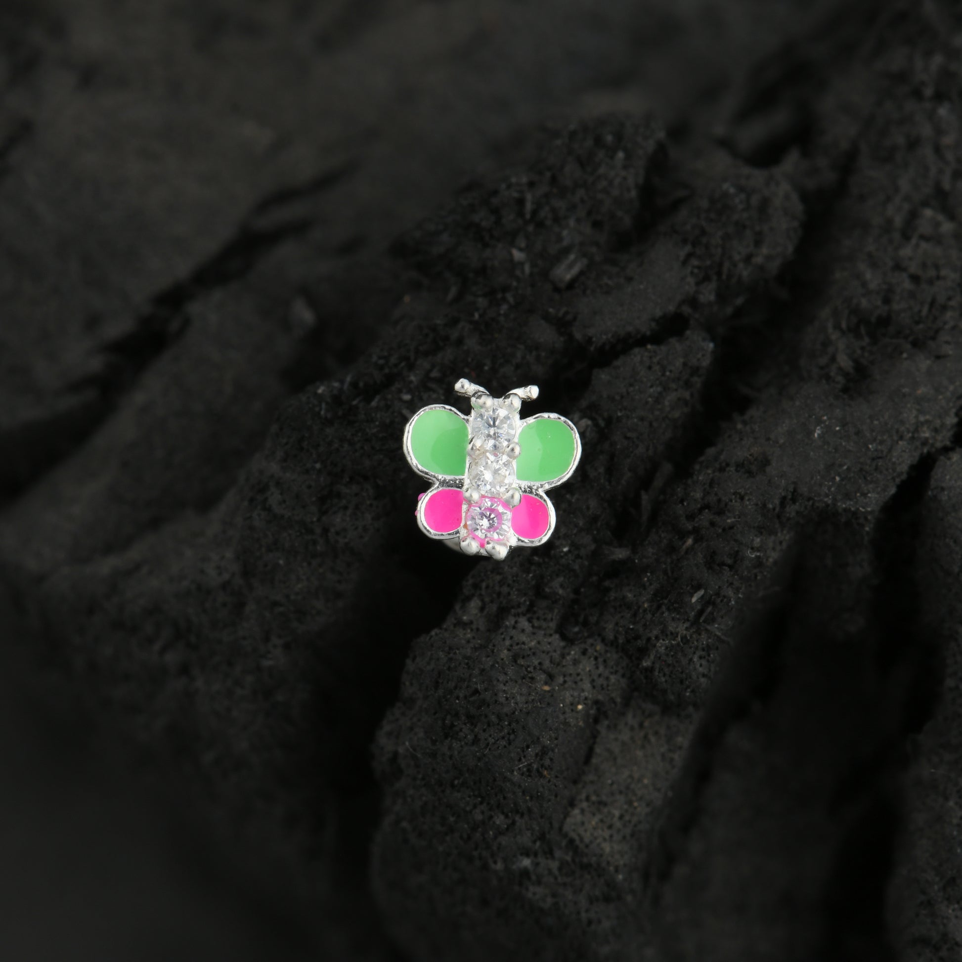 Rainbow Butterfly Enamel Silver Nose Pin(Screw Back)