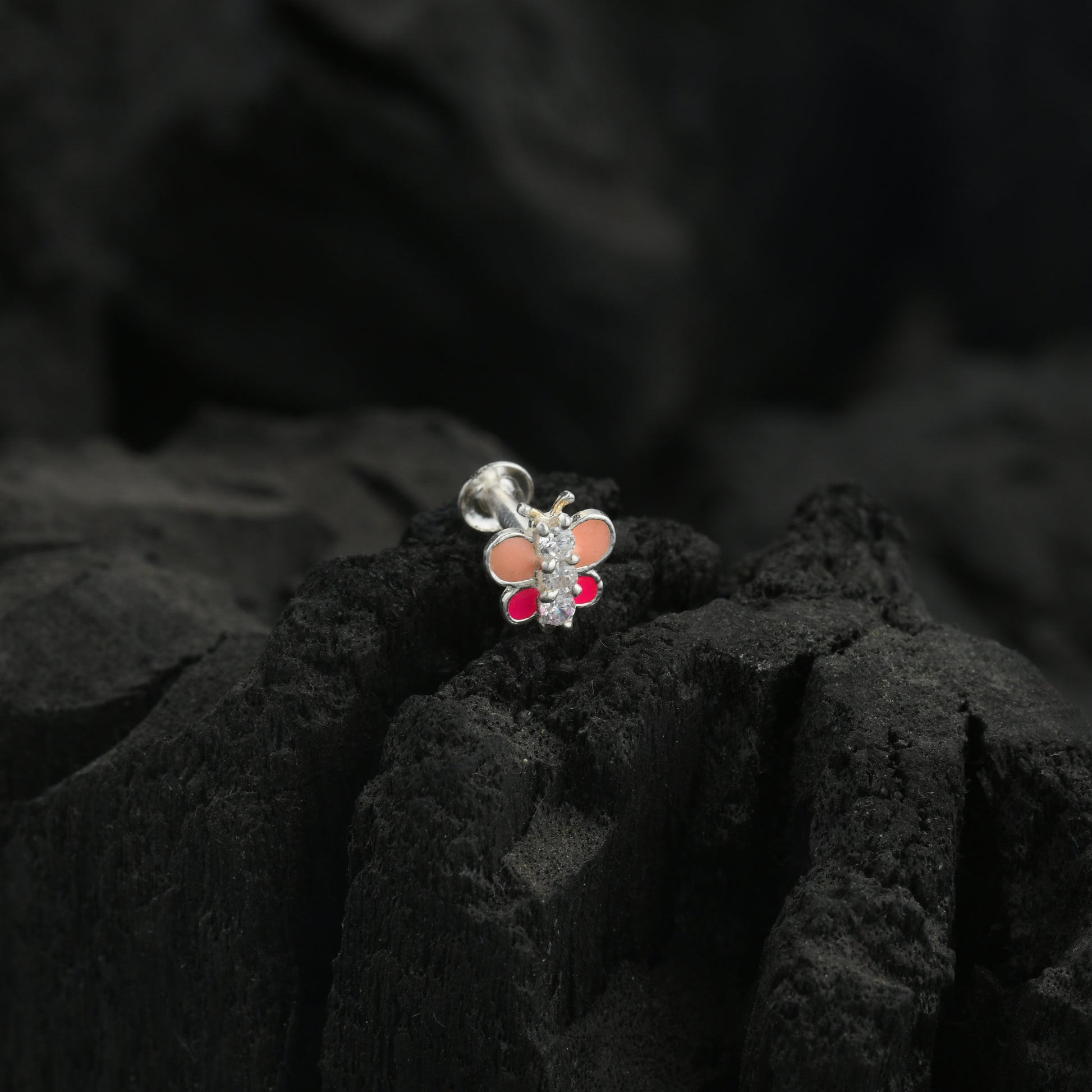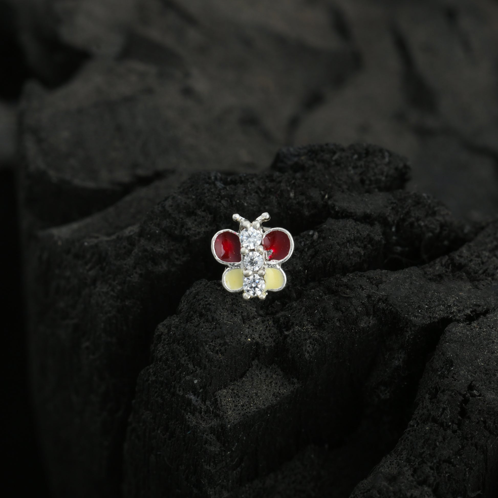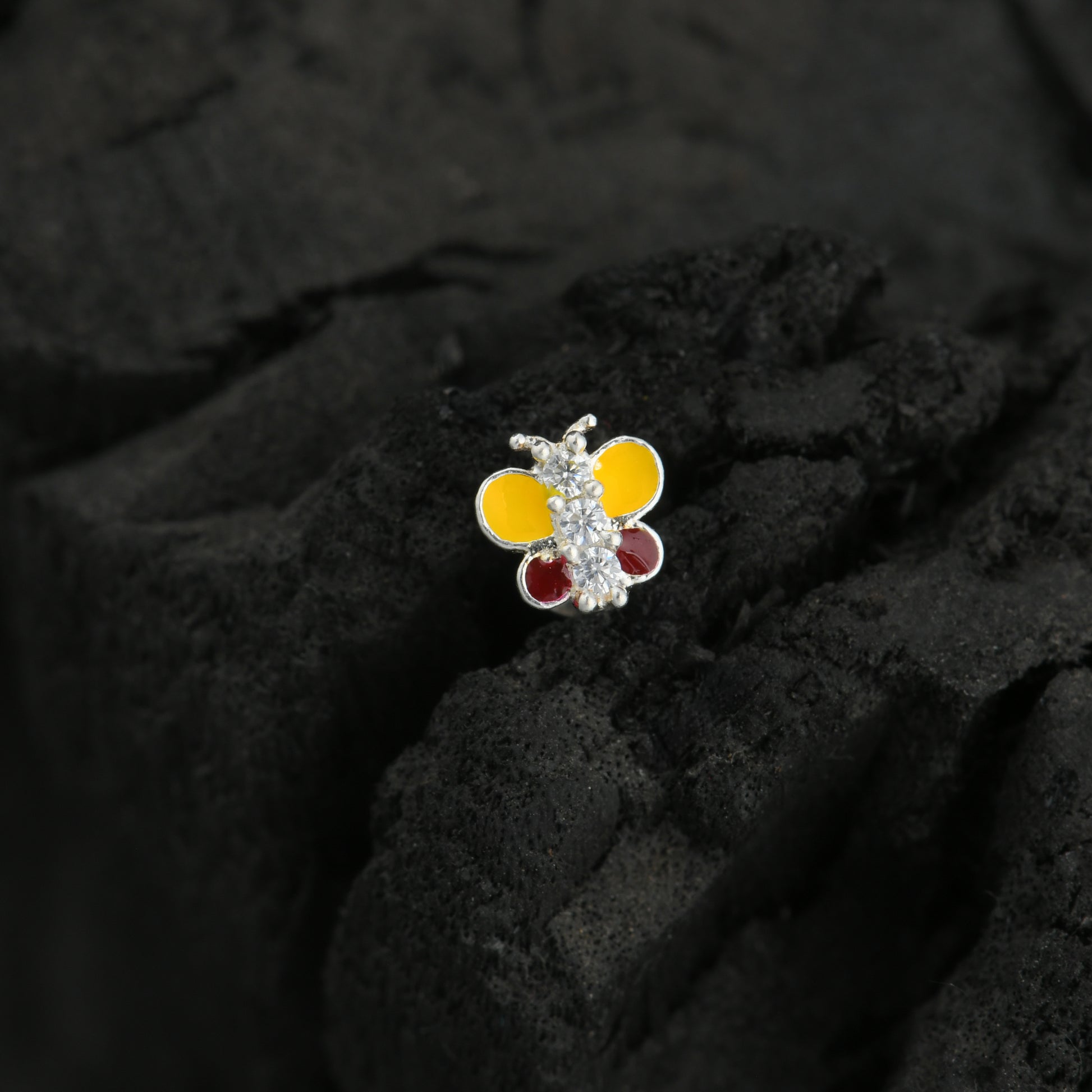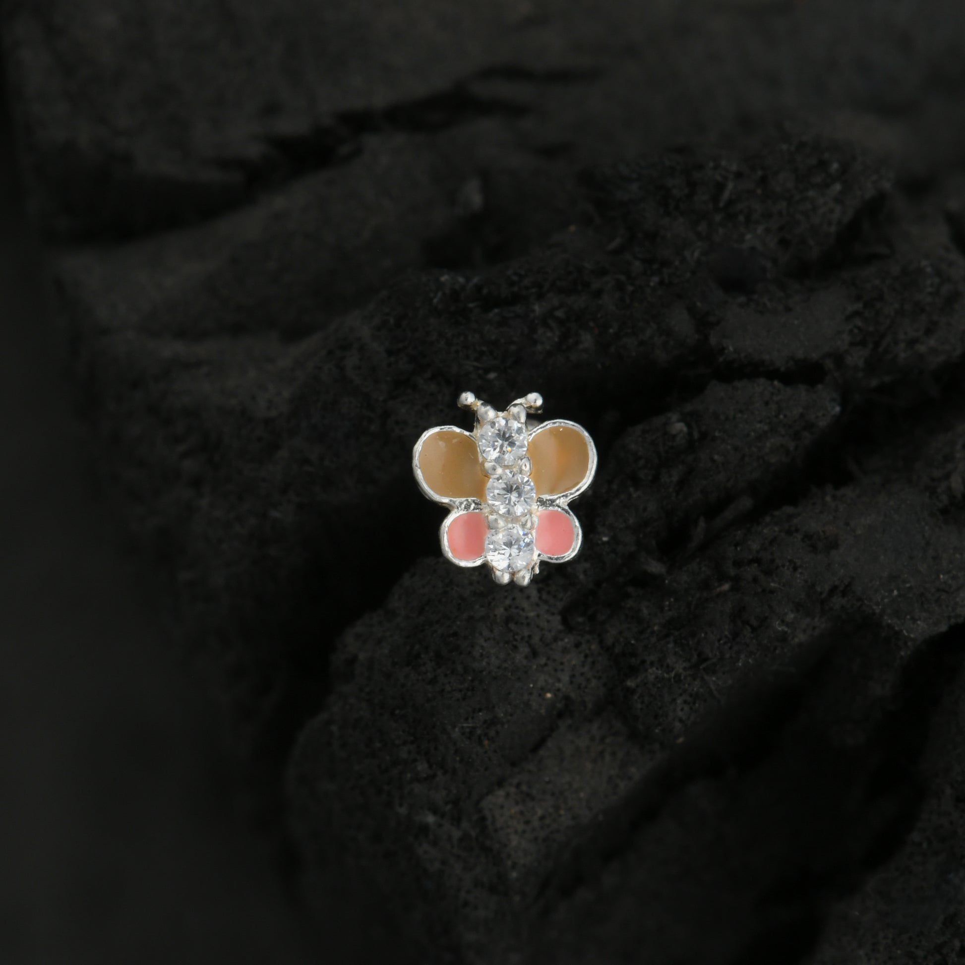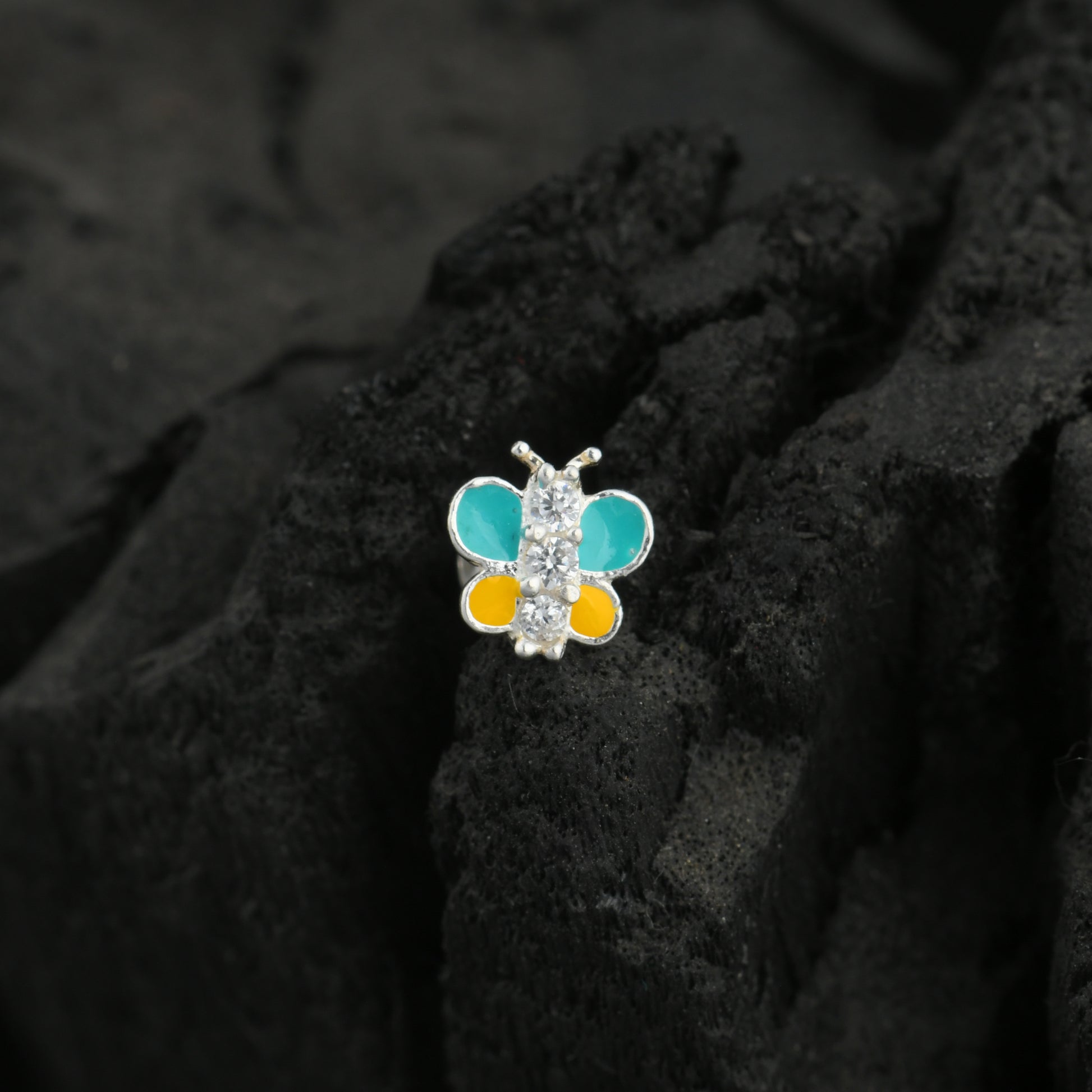 Rainbow Butterfly Enamel Silver Nose Pin(Screw Back)