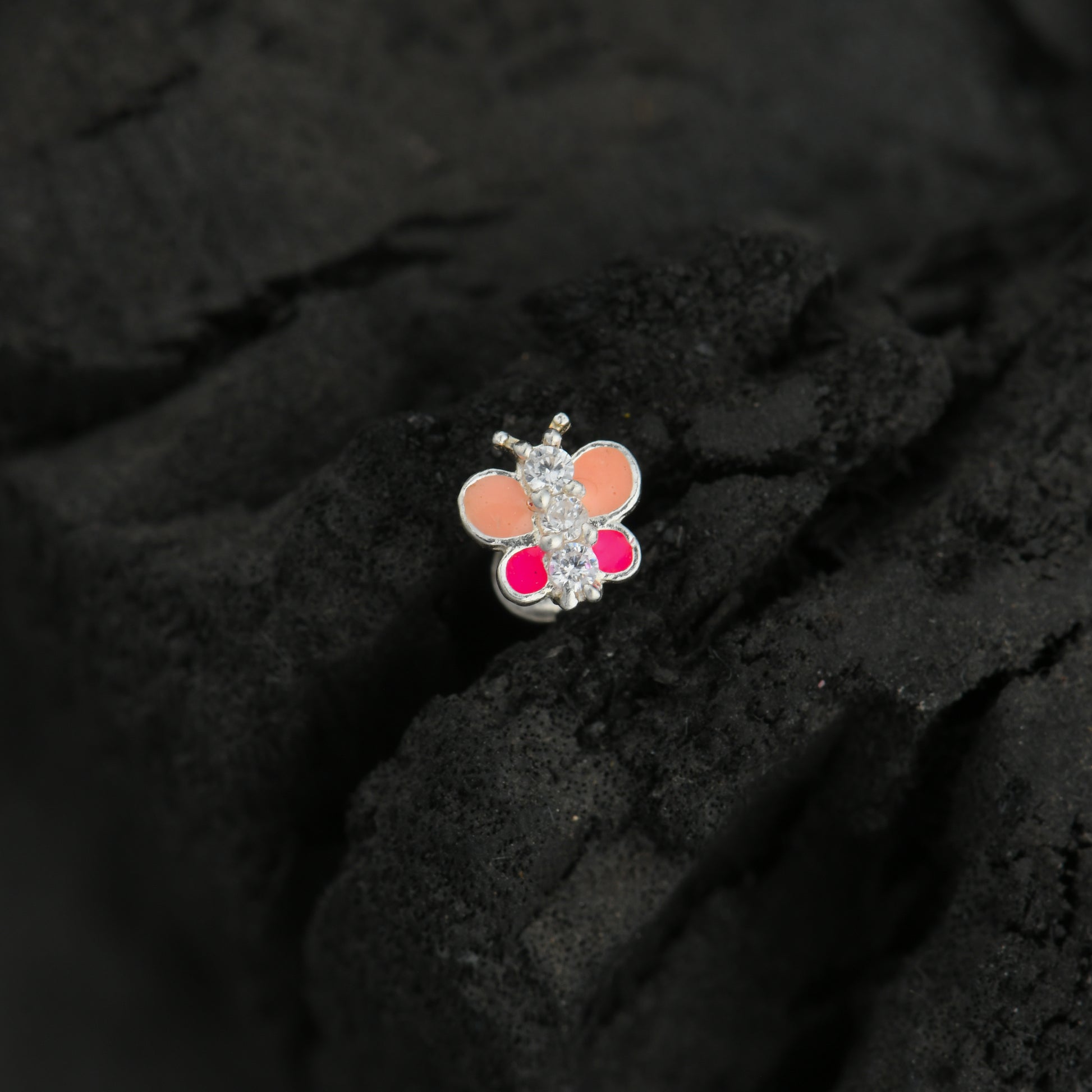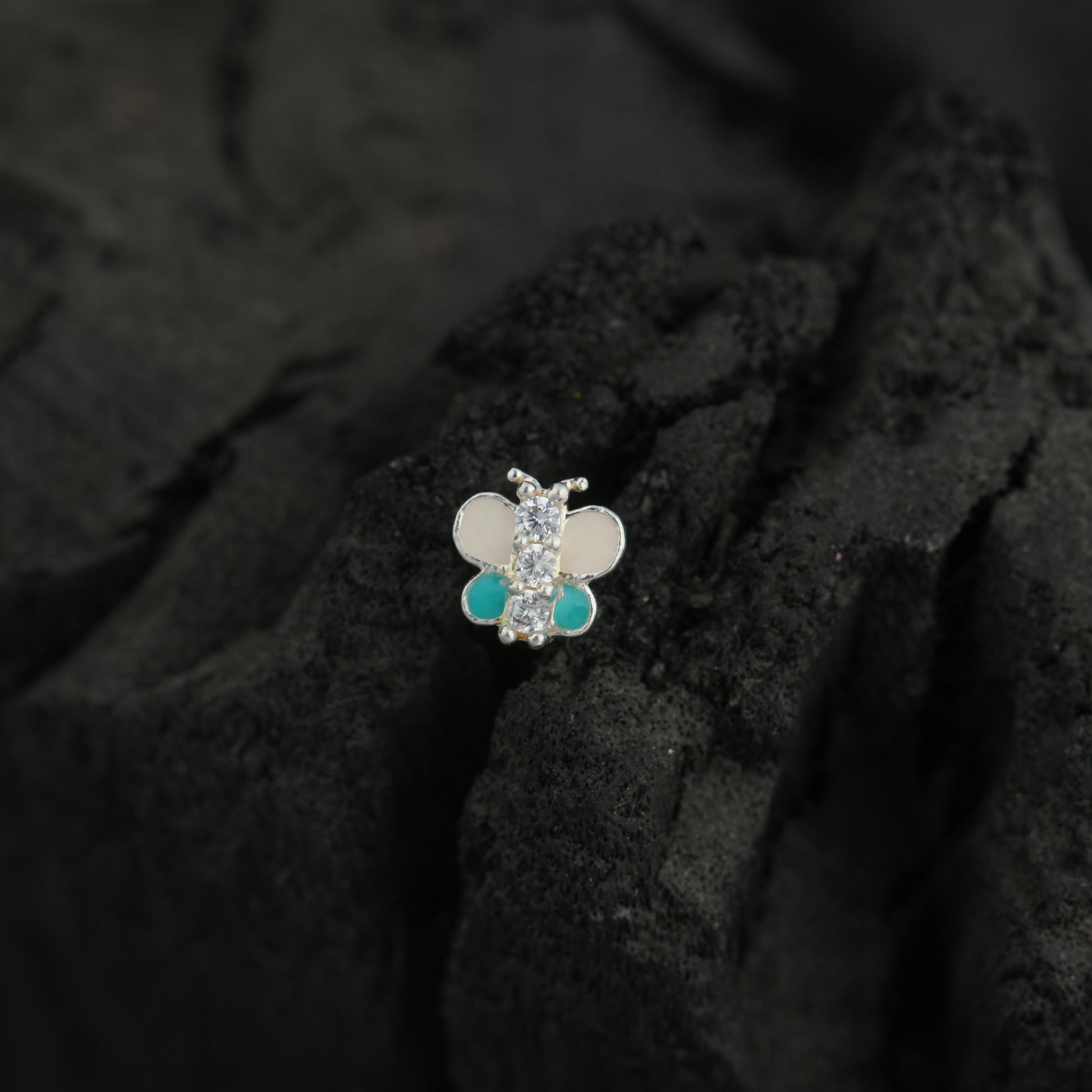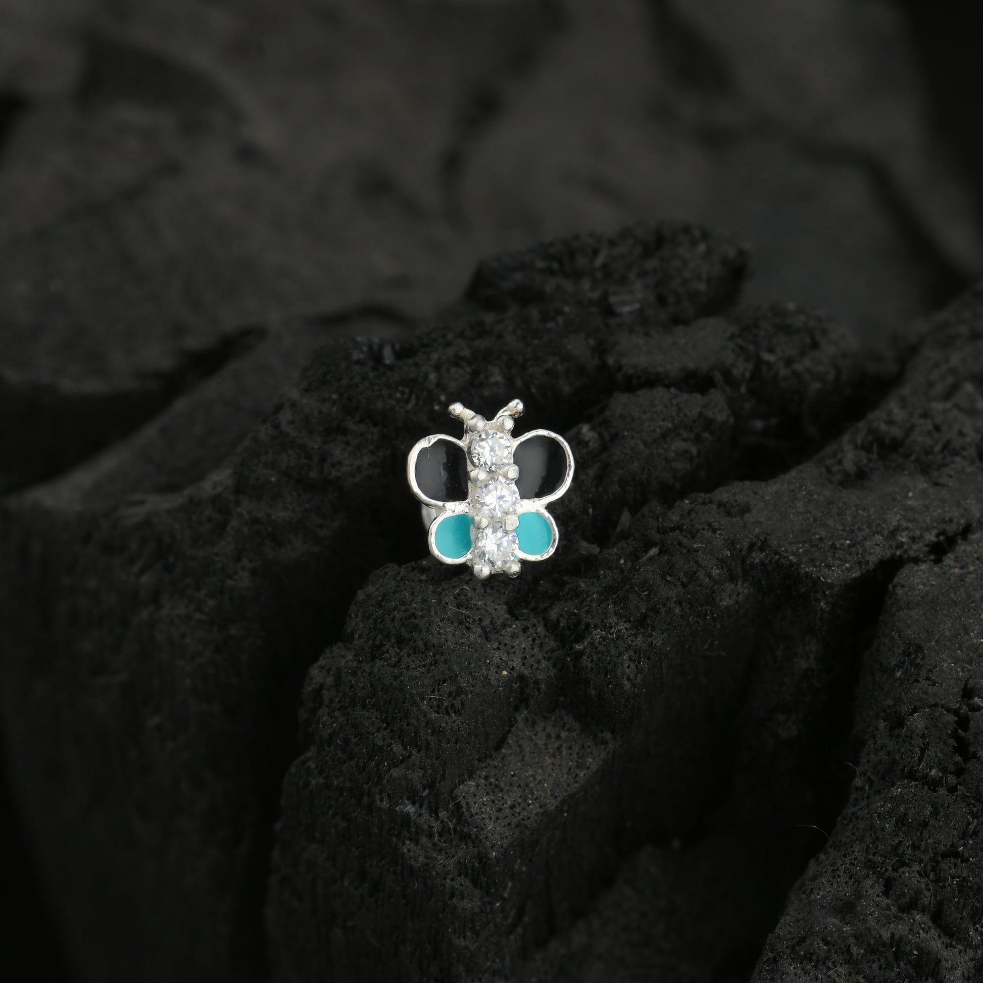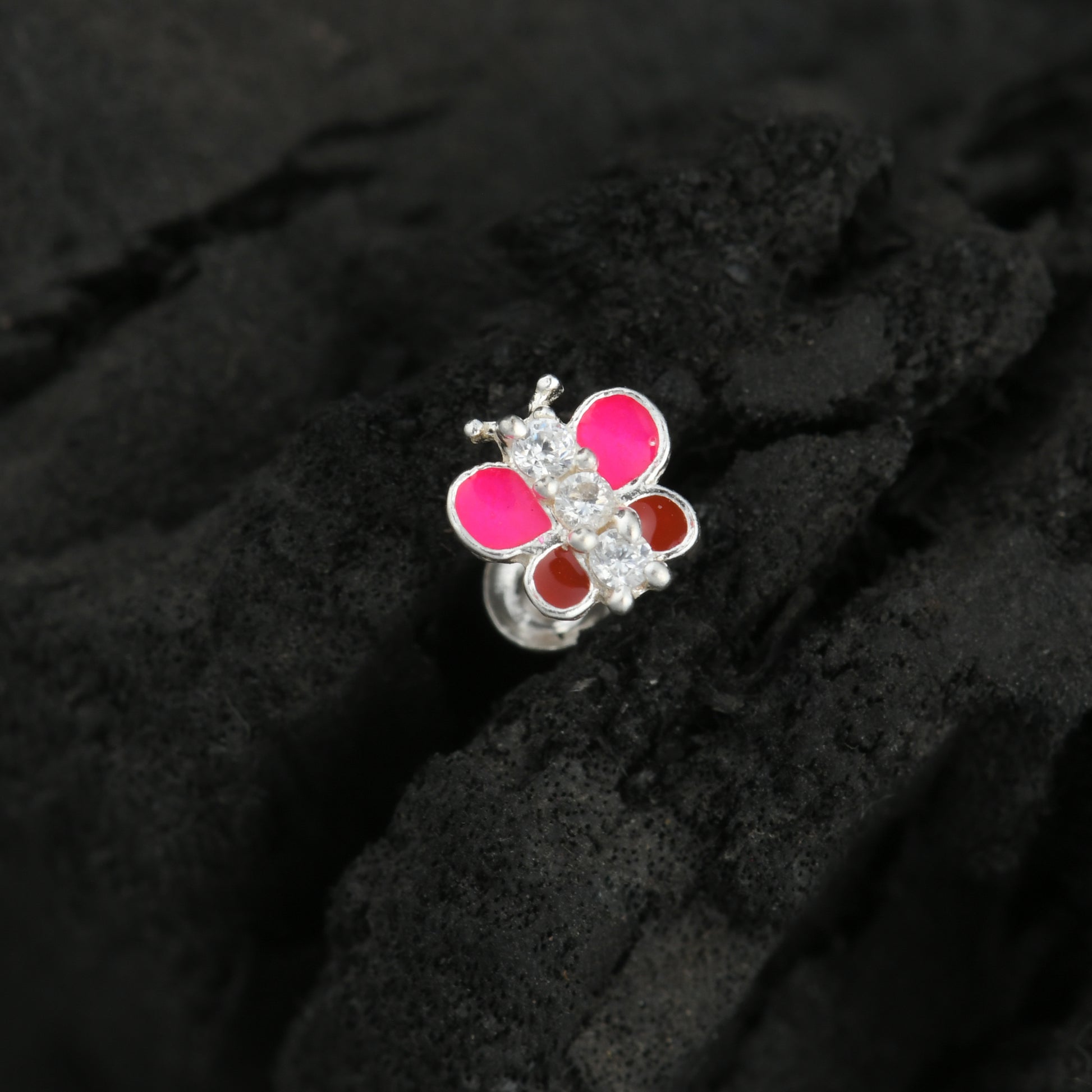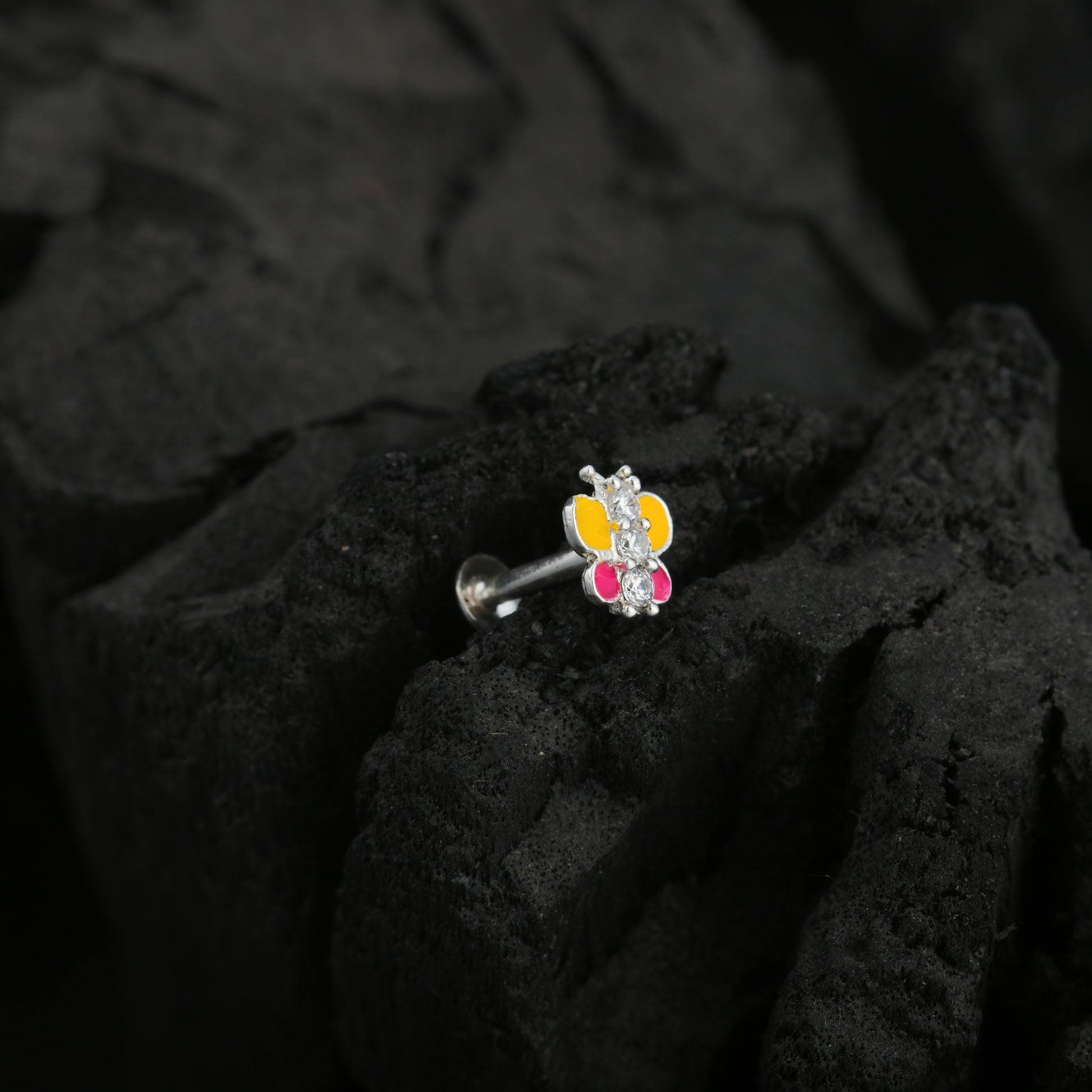 Rainbow Butterfly Enamel Silver Nose Pin(Screw Back)