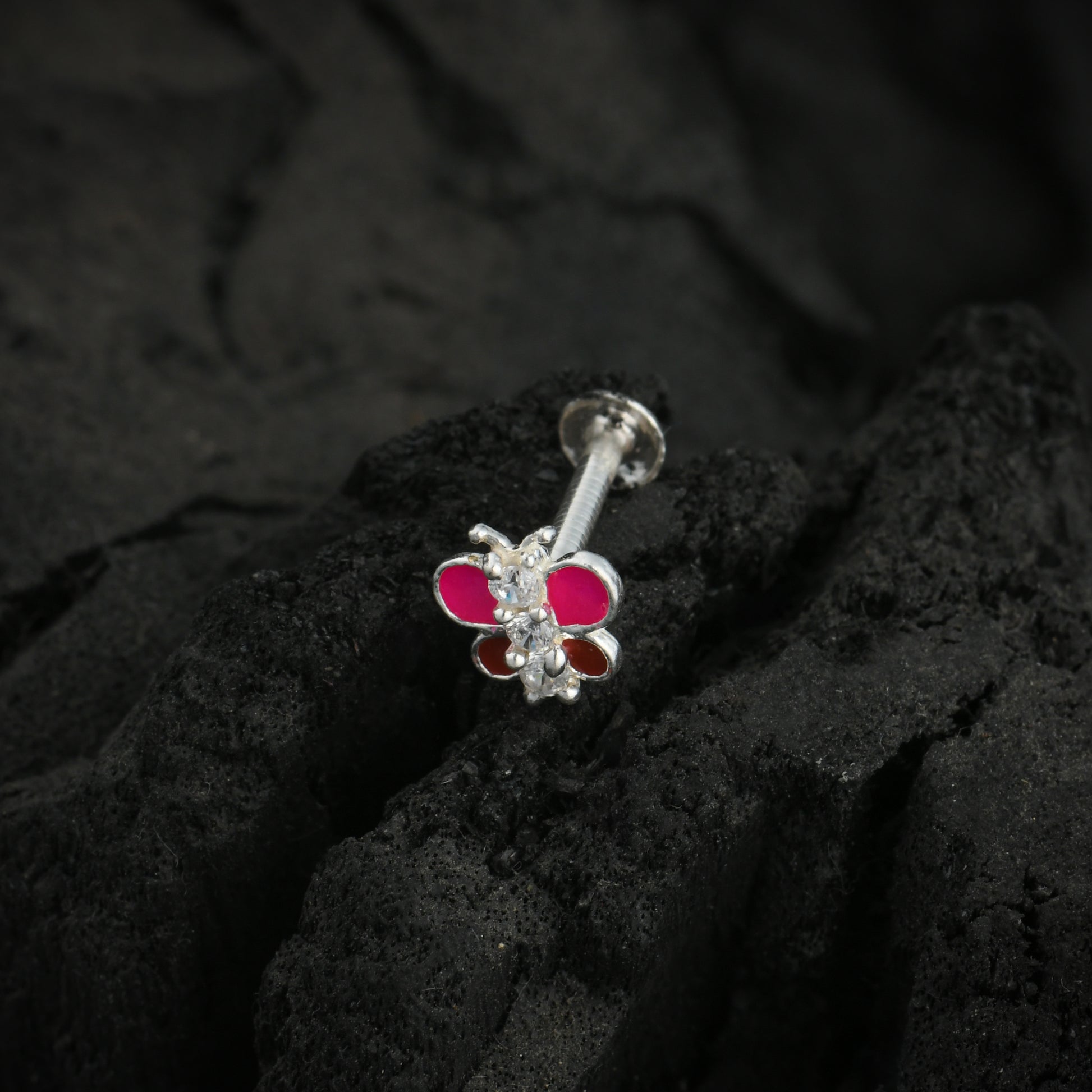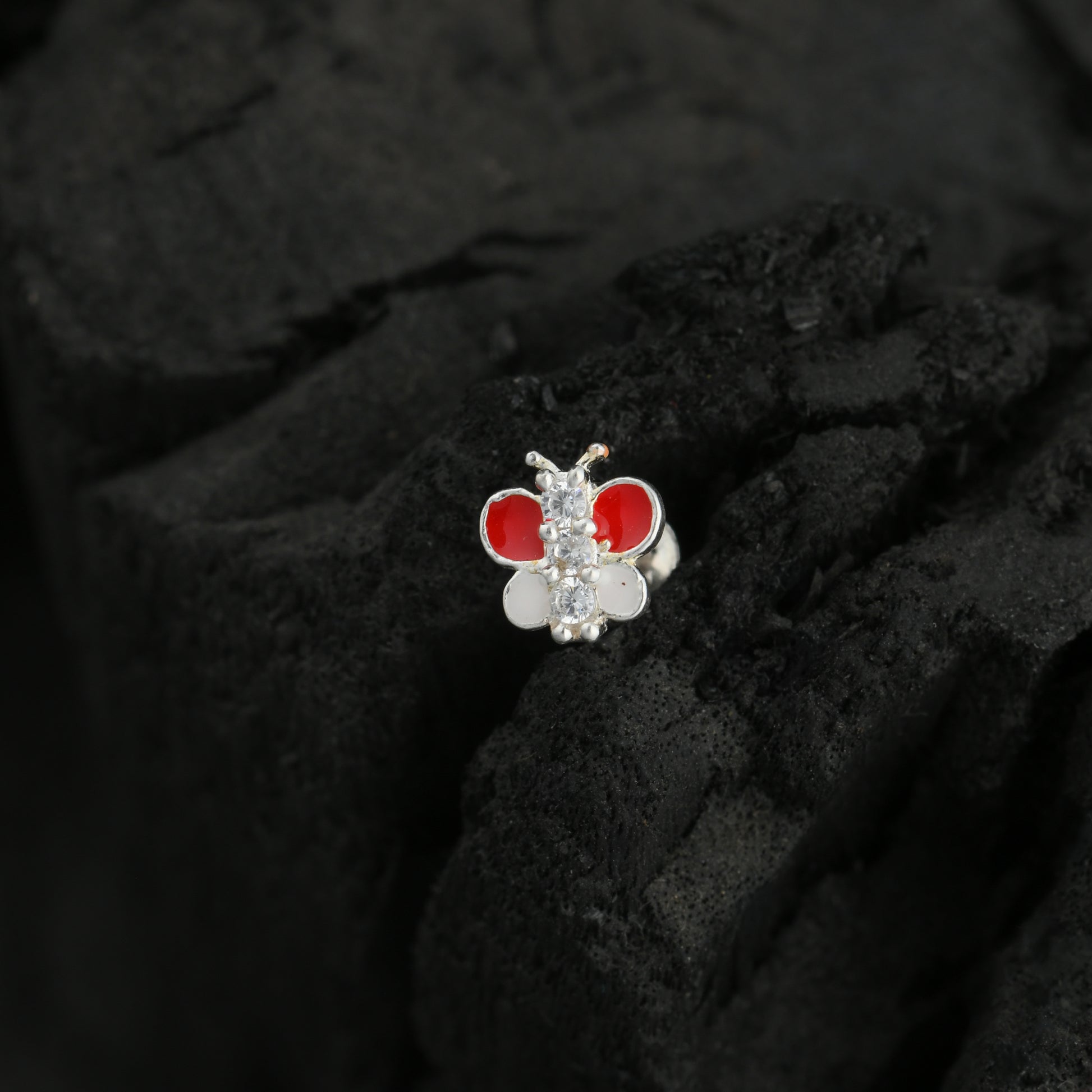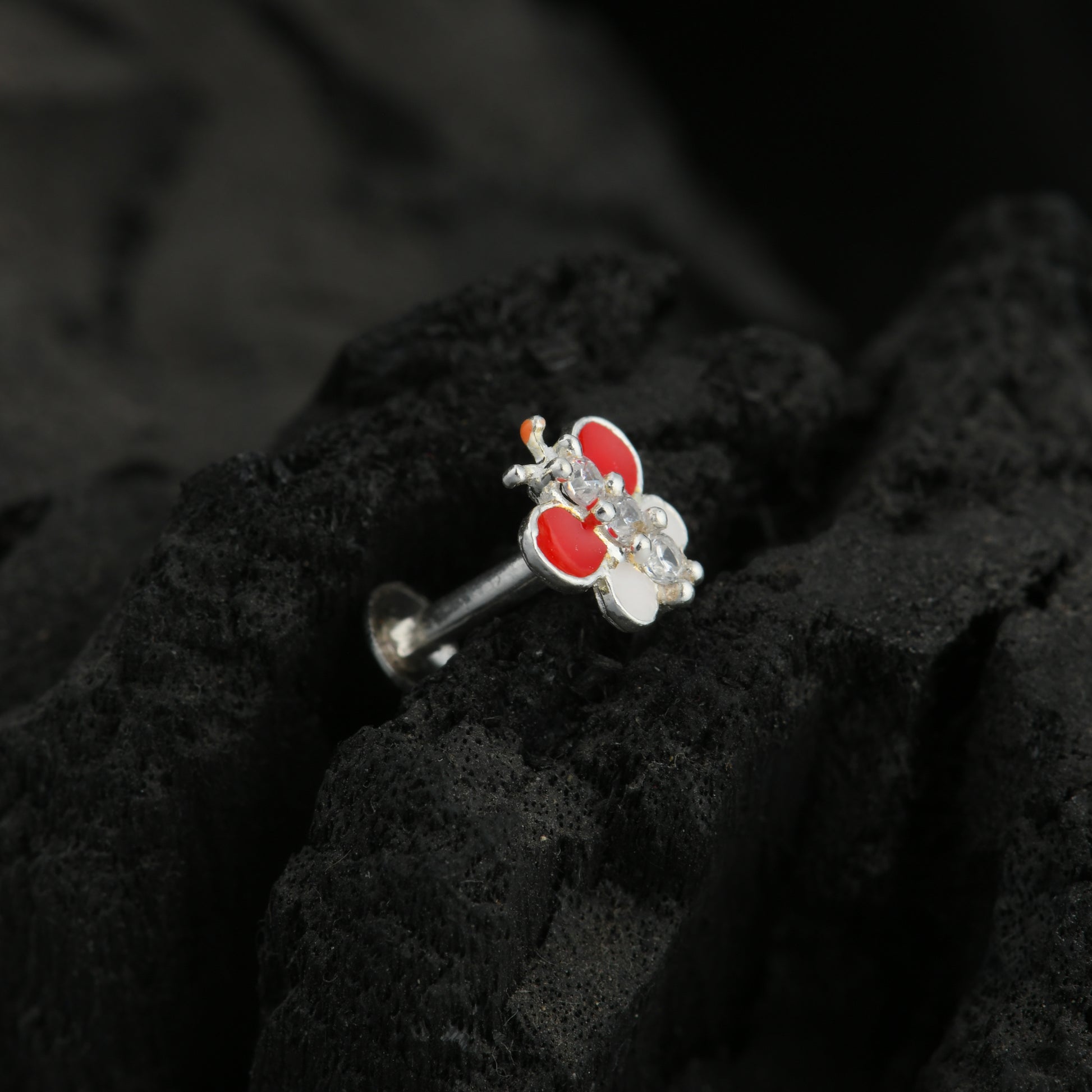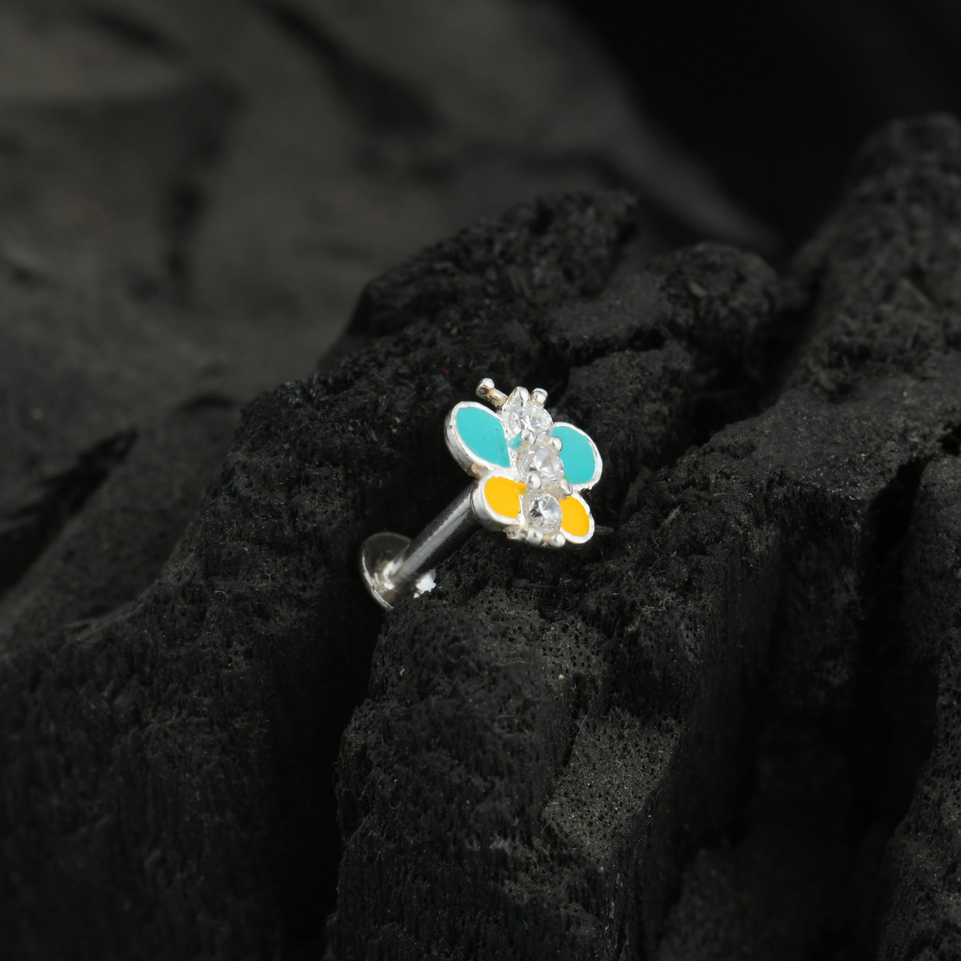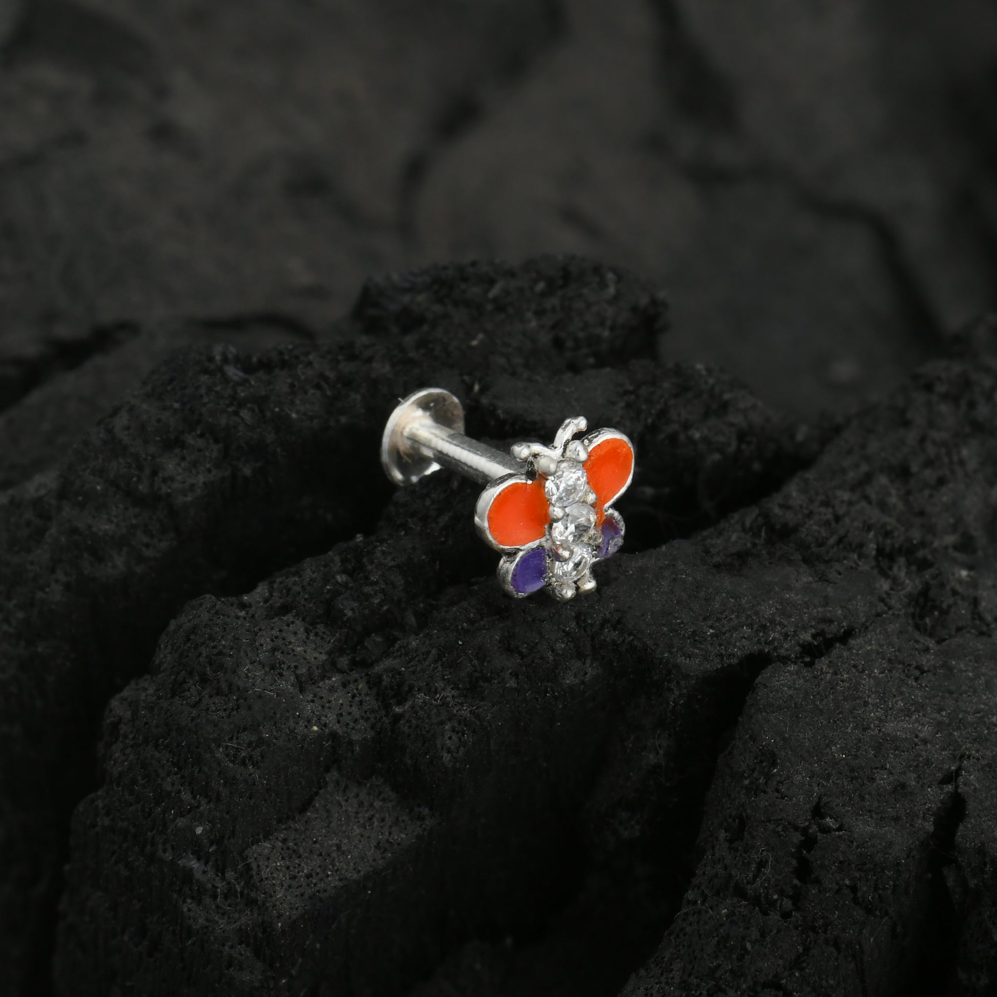 Rainbow Butterfly Enamel Silver Nose Pin(Screw Back)