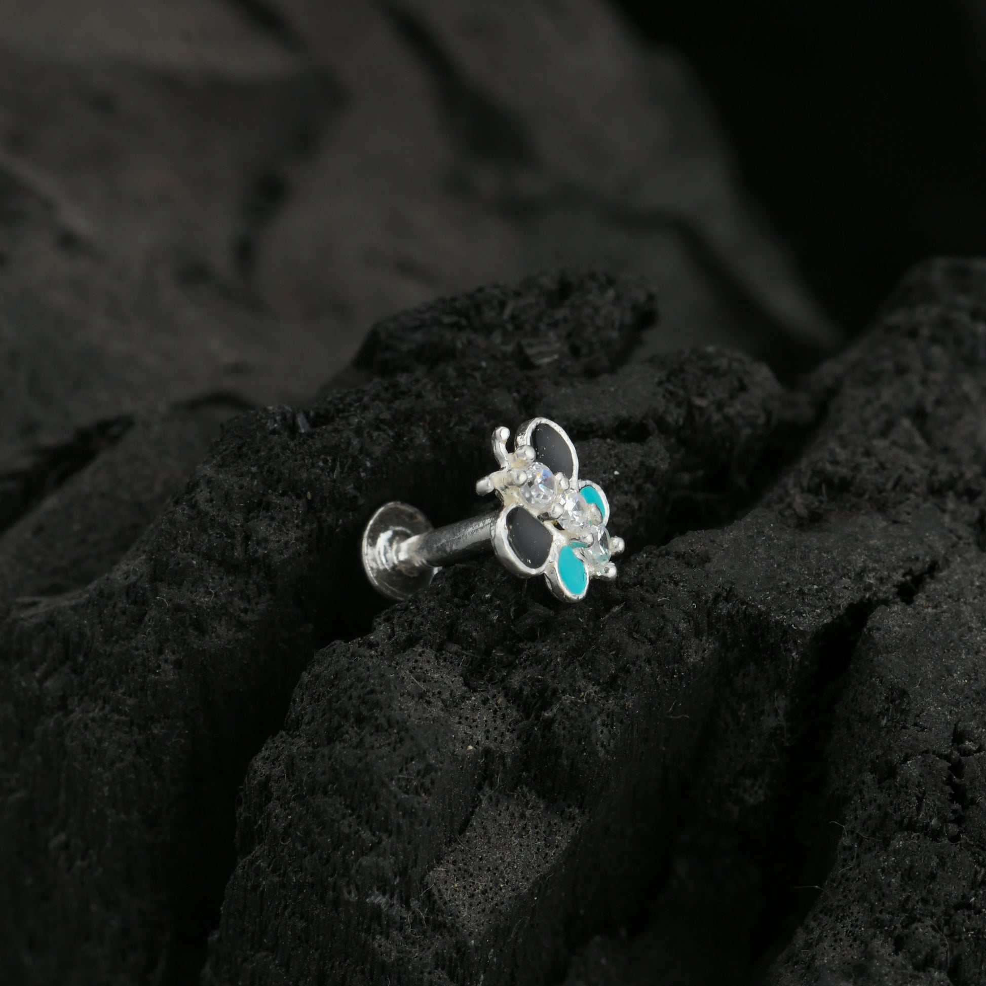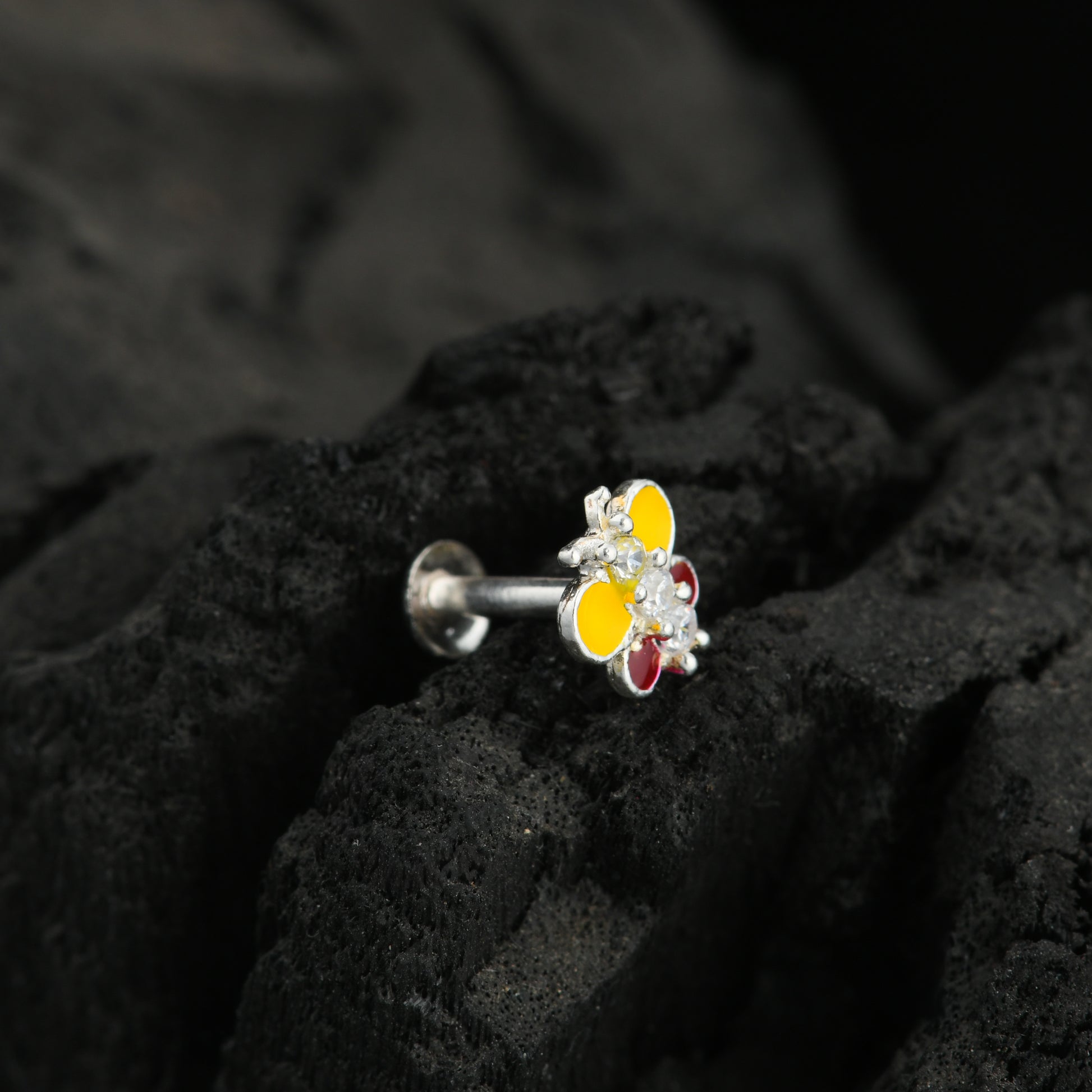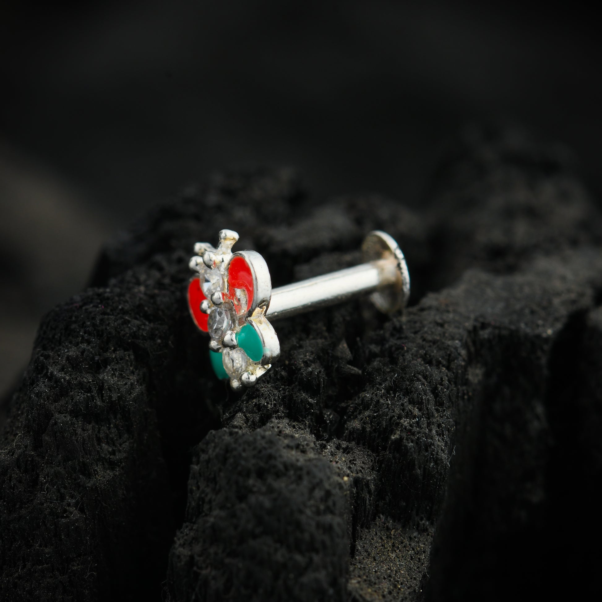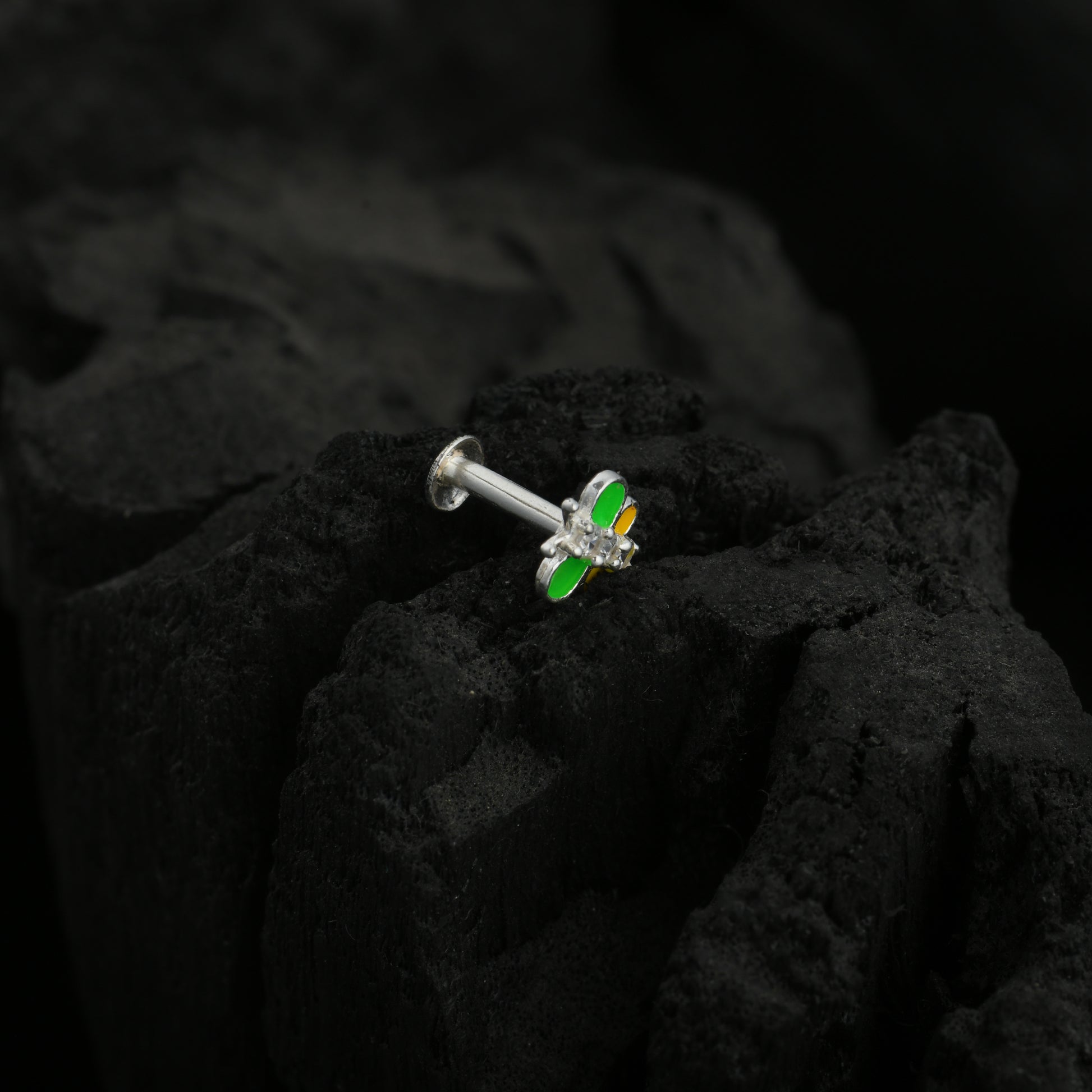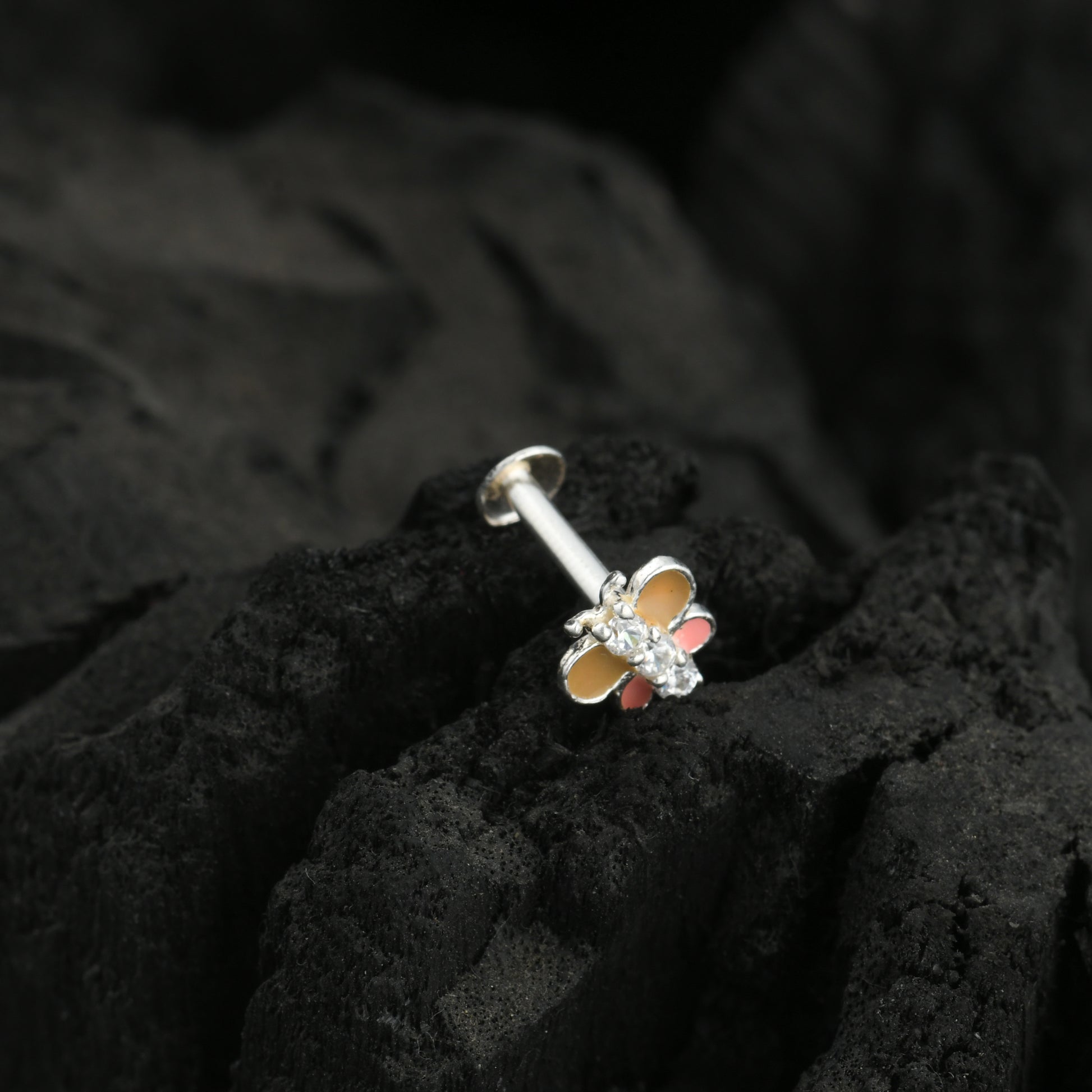Rainbow Butterfly Enamel Silver Nose Pin(Screw Back)