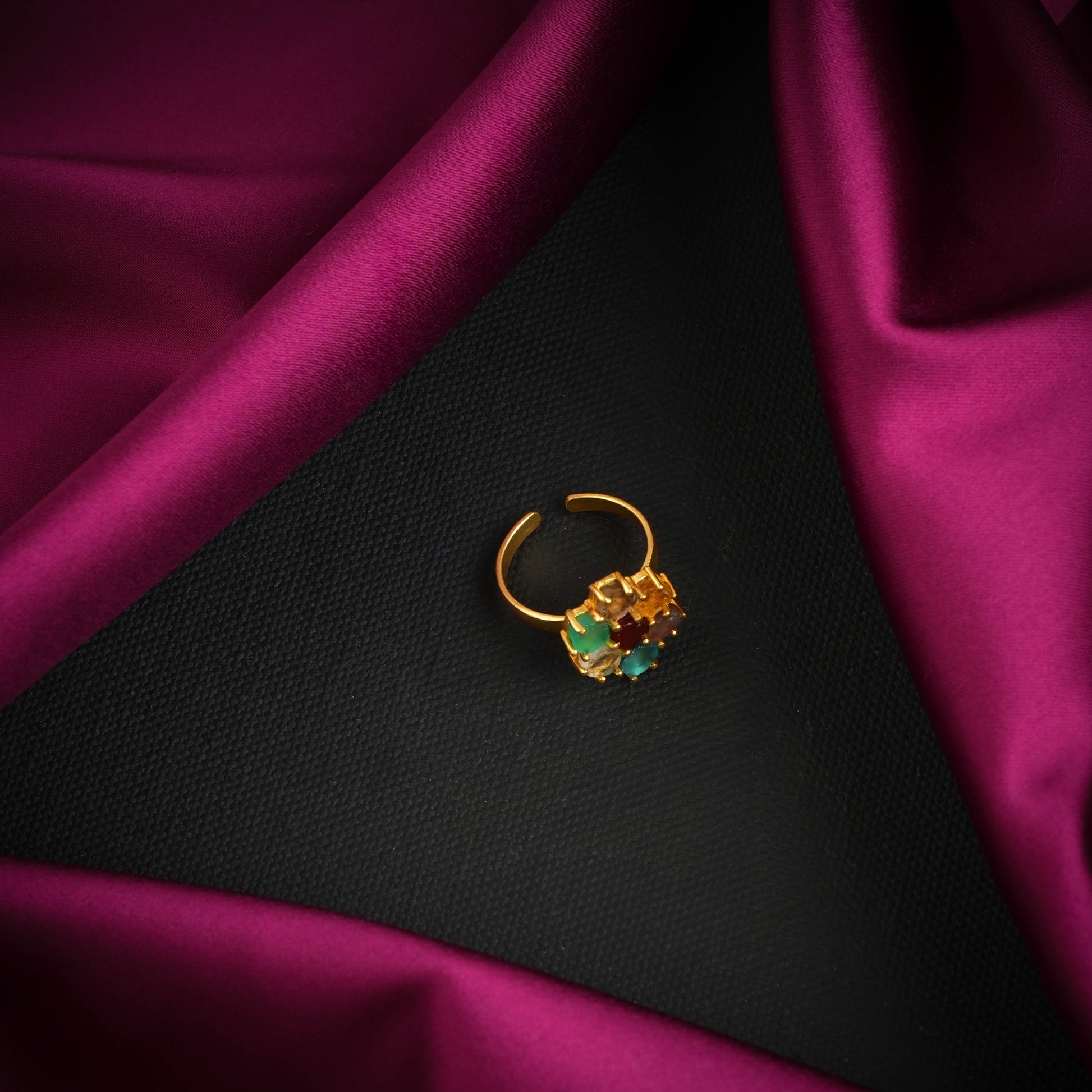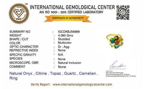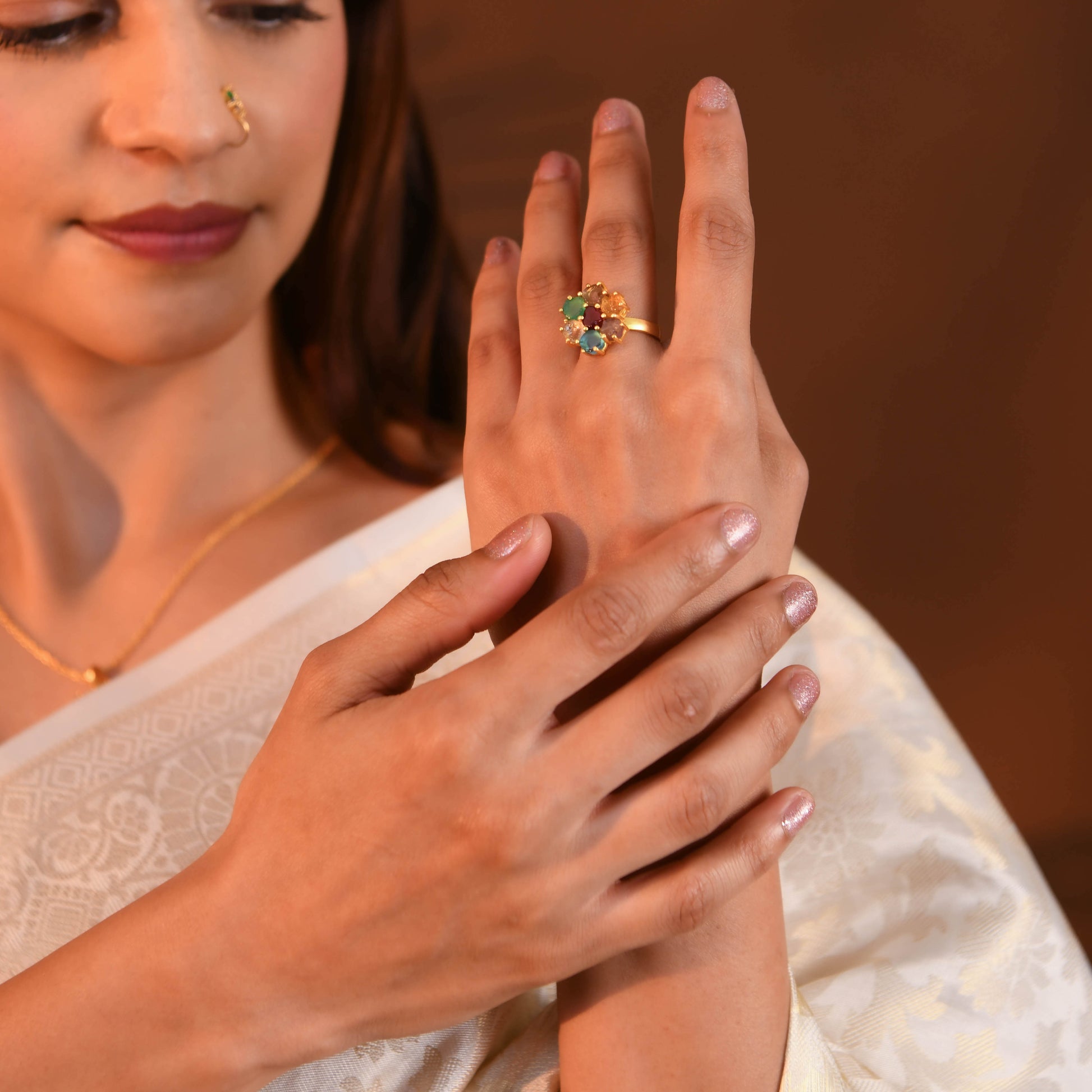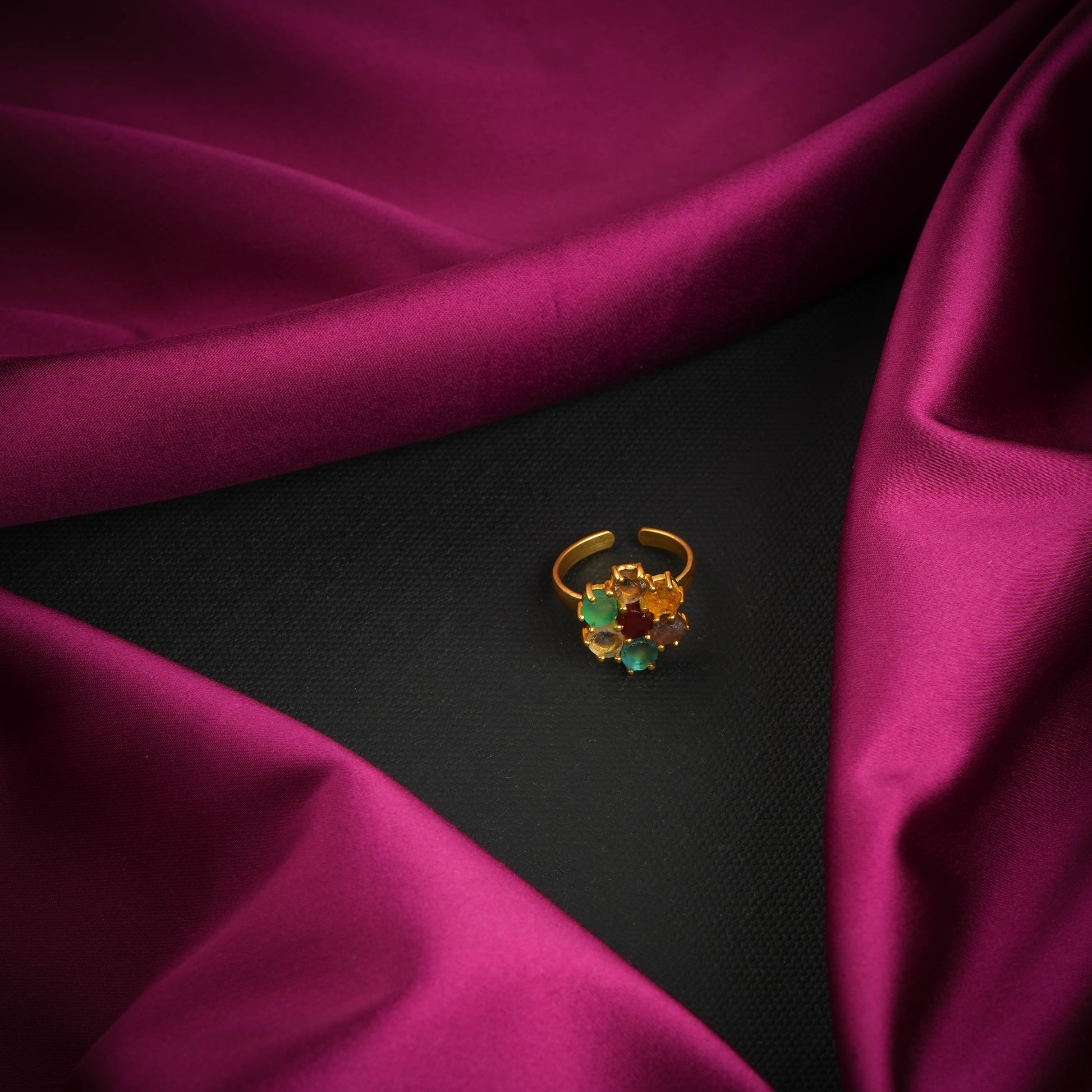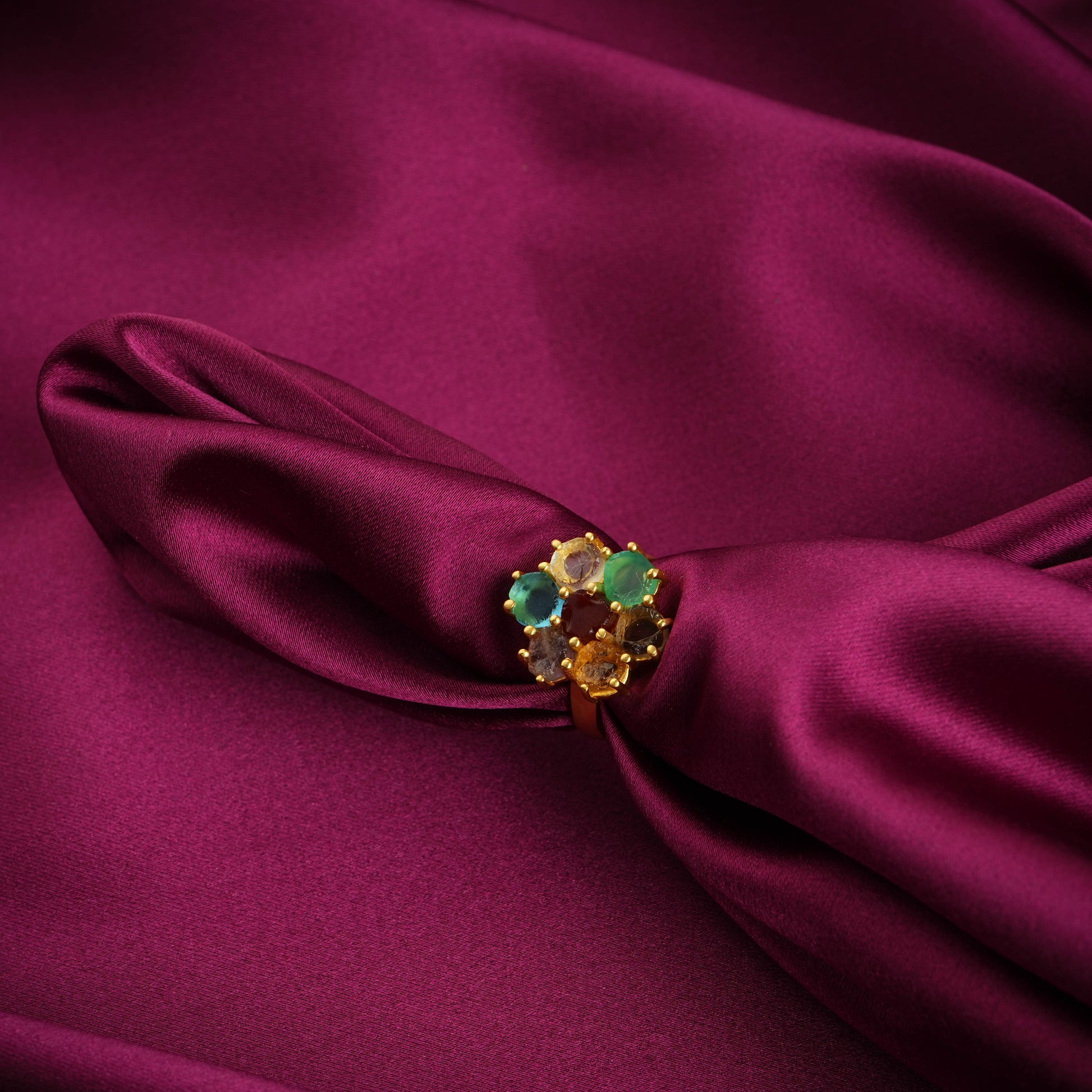 Semiprecious  Uncut Natural Crystal, Green Onyx, Smoky Quartz, Citrine, Amethyst, Blue Topaz, Carnelian studded in gold plated Brass