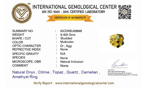 Semiprecious  Uncut Natural Crystal, Green Onyx, Smoky Quartz, Citrine, Amethyst, Blue Topaz, Carnelian studded in gold plated Brass