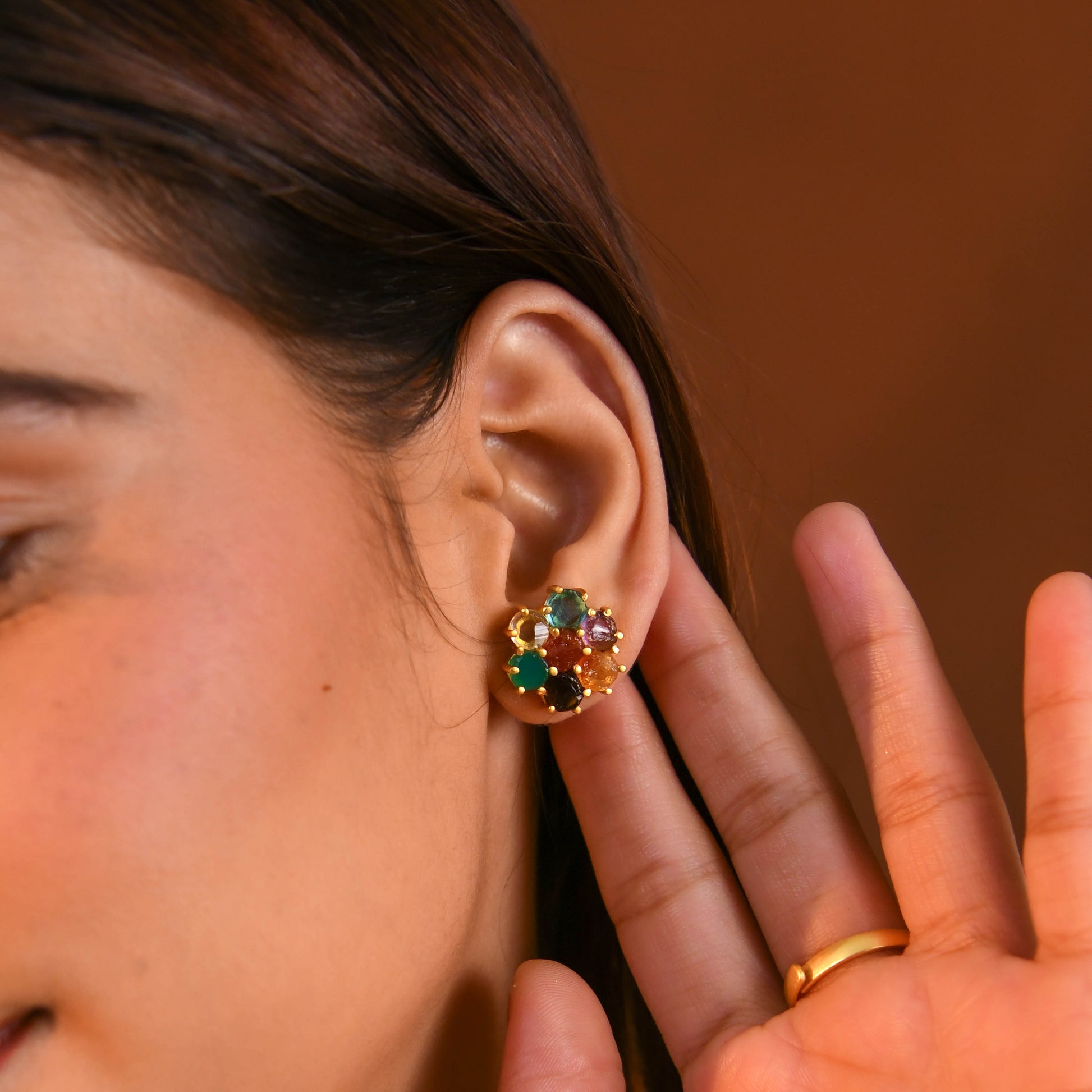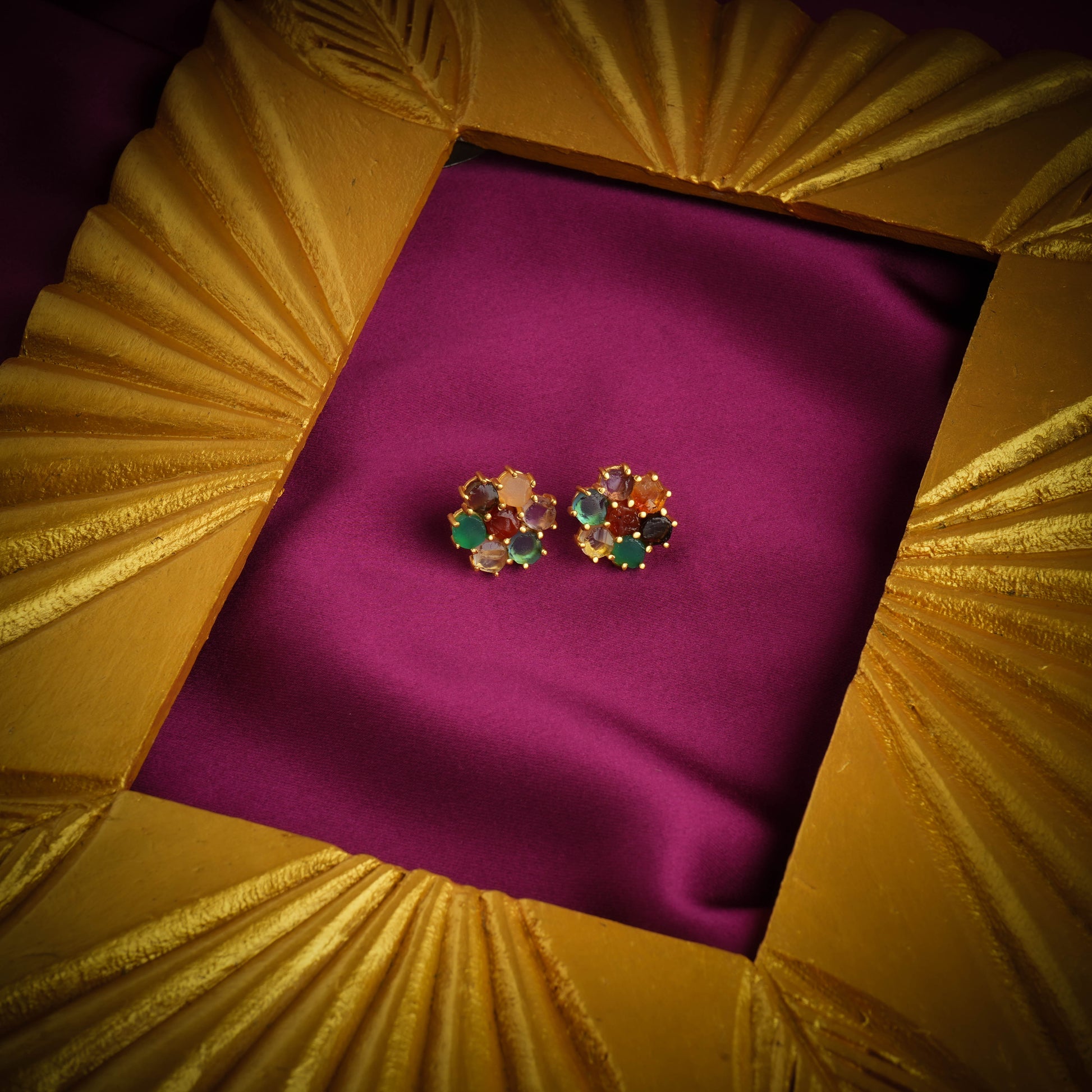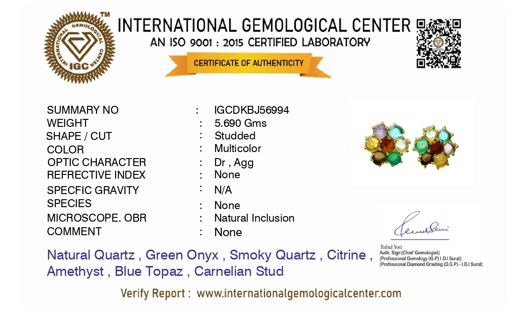 Semiprecious  Uncut Natural Crystal, Green Onyx, Smoky Quartz, Citrine, Amethyst, Blue Topaz, Carnelian studded in gold plated Brass