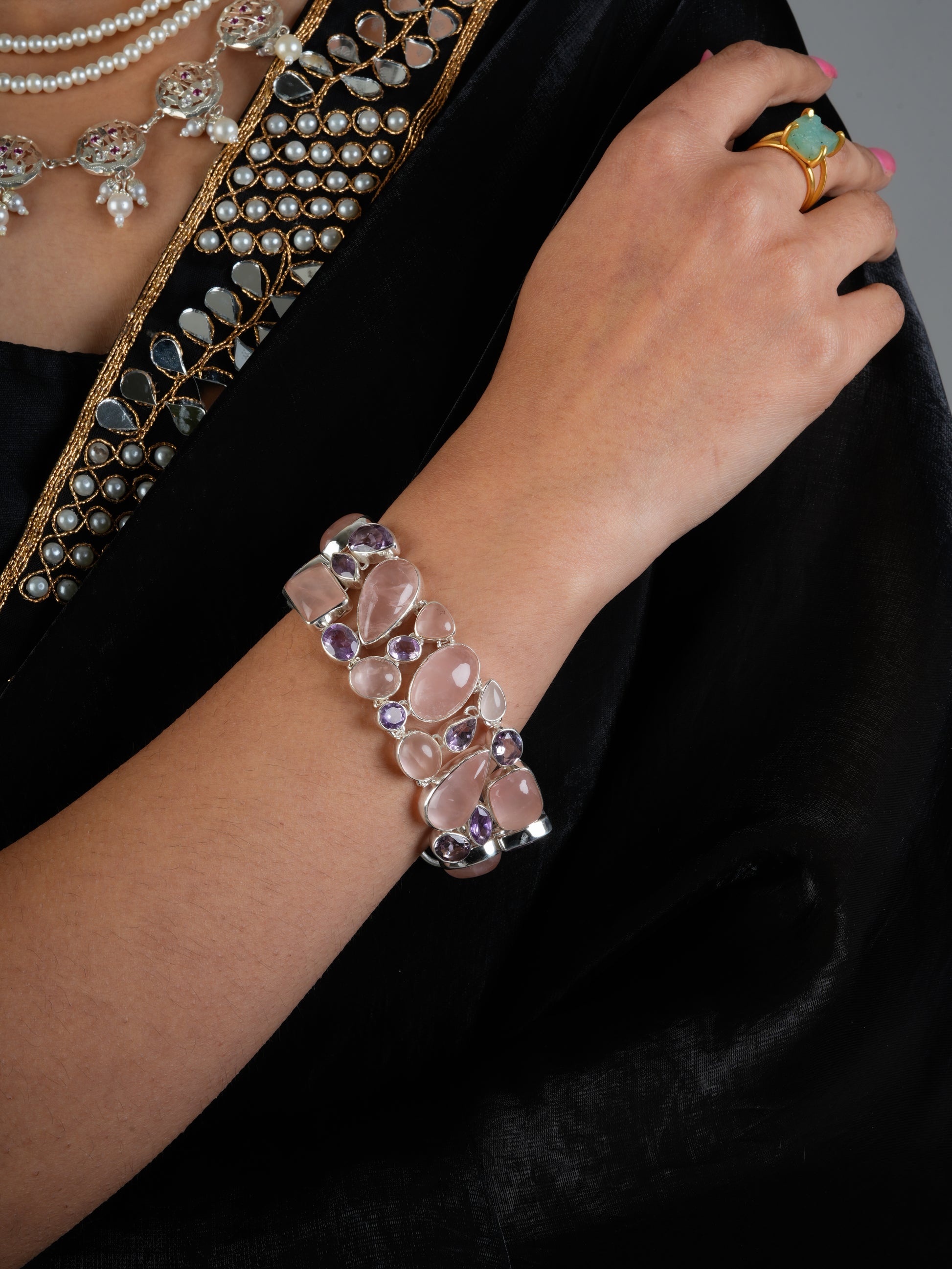 Rose Quartz And Amethyst Unique Bracelet