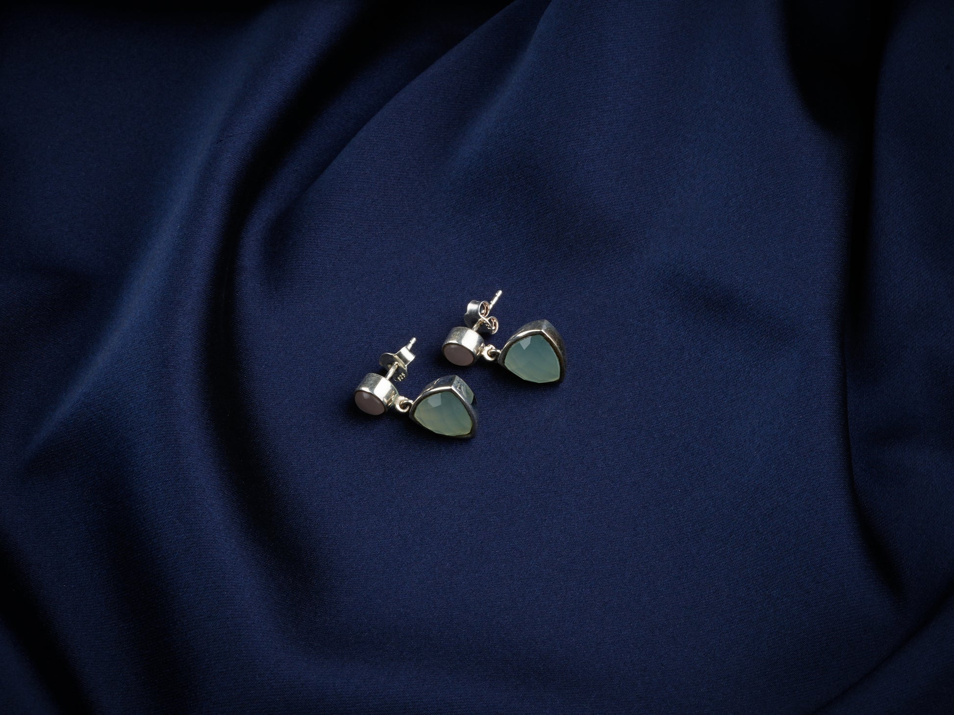 Rose Quartz And Aqua Chalcedony Silver Earrings