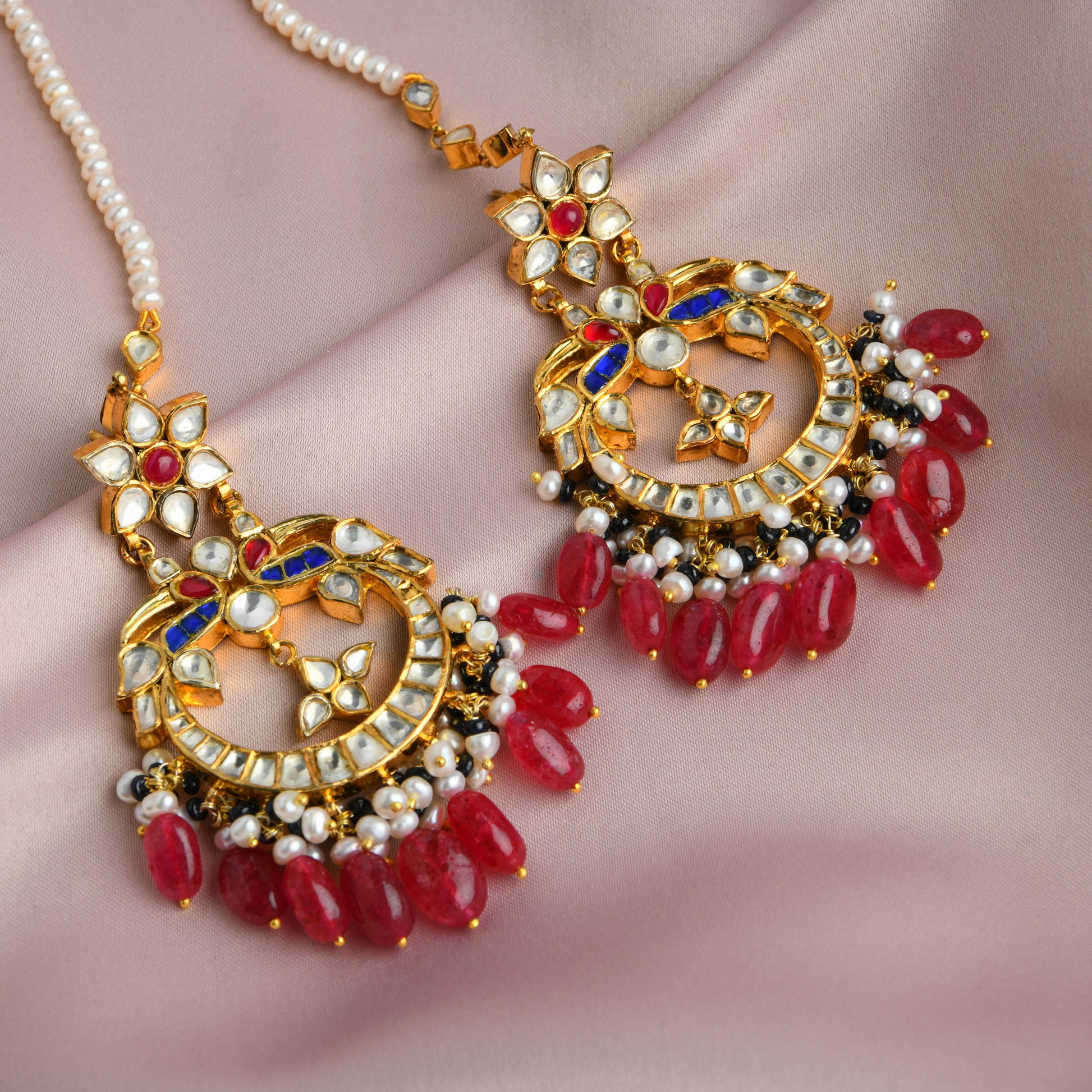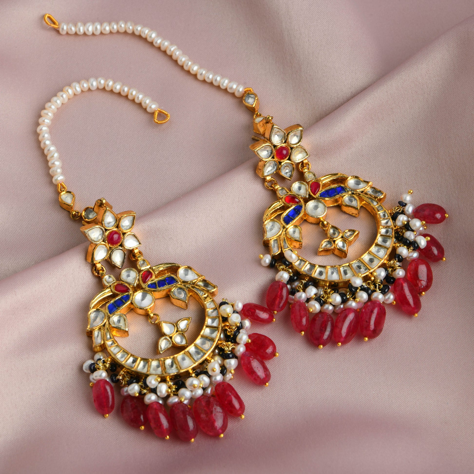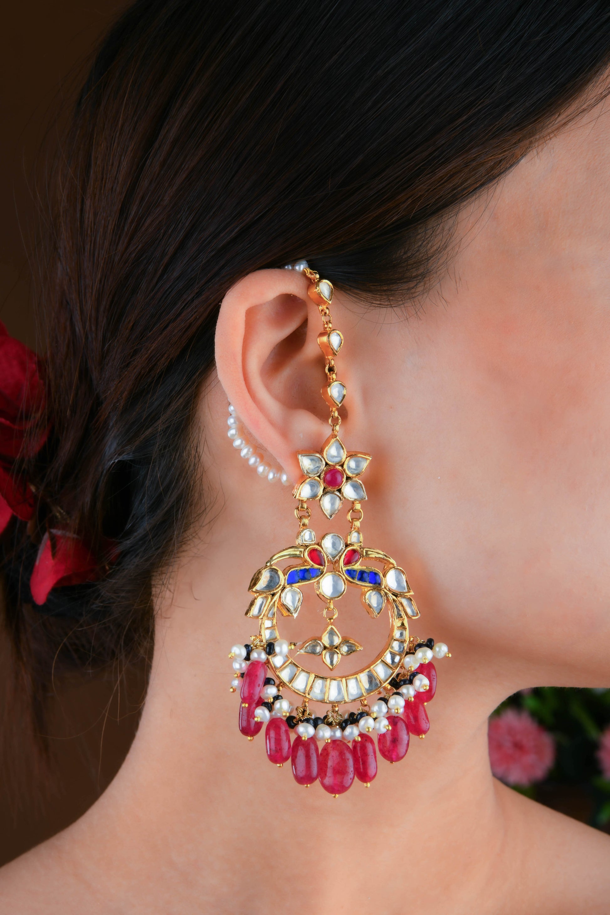 • Exquisite Kundan Artistry: Showcasing traditional craftsmanship, each earring is adorned with meticulously set Kundan stones, radiating authentic Indian royal charm.