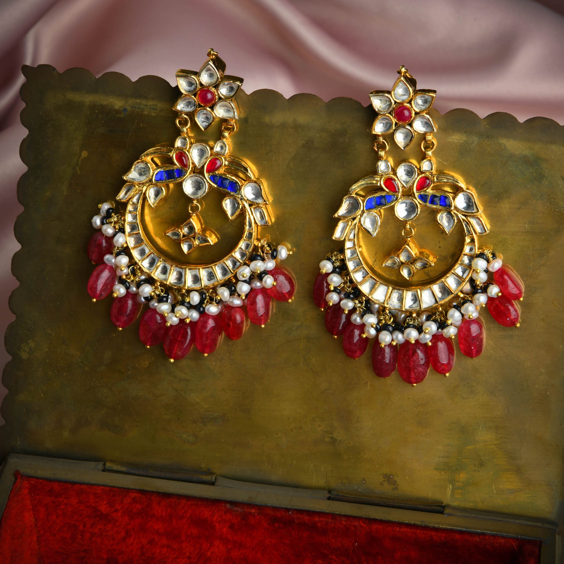 Royal Kundan Gold Plated Silver Chand Bali Earrings