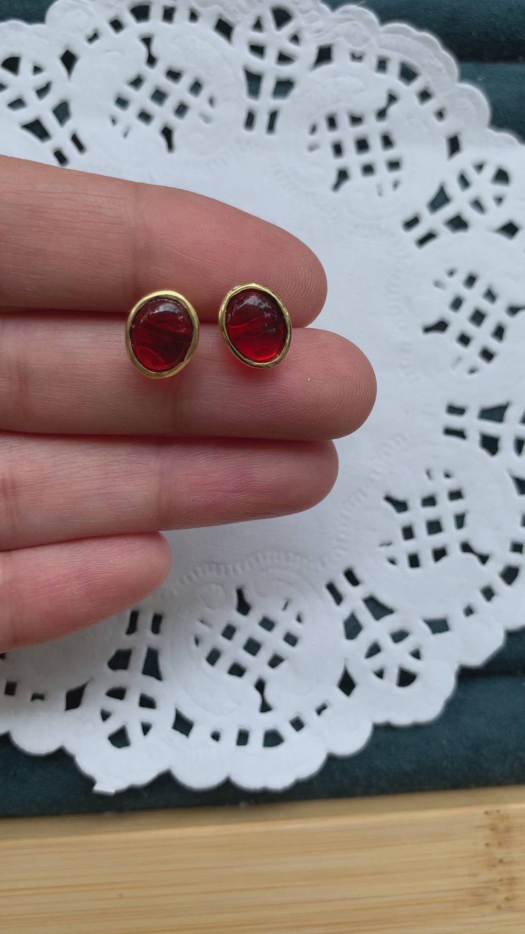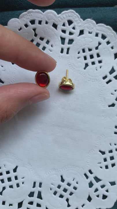 These luminous ruby studs will add a vibrant sparkle to any look. Crafted with shimmering cabochon stones, these earrings offer a warm, red glow that is sure to make a statement! Perfect for everyday wear or special occasions, these stunning studs will elevate any outfit.