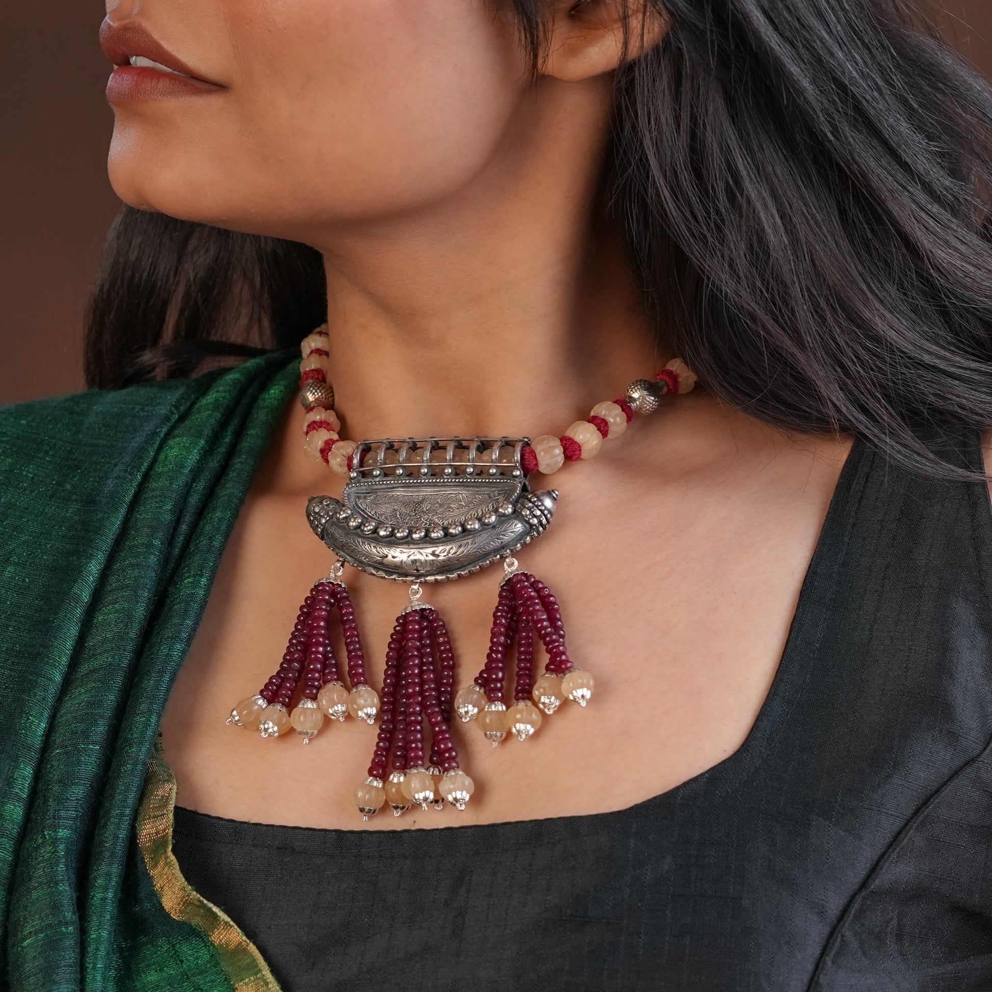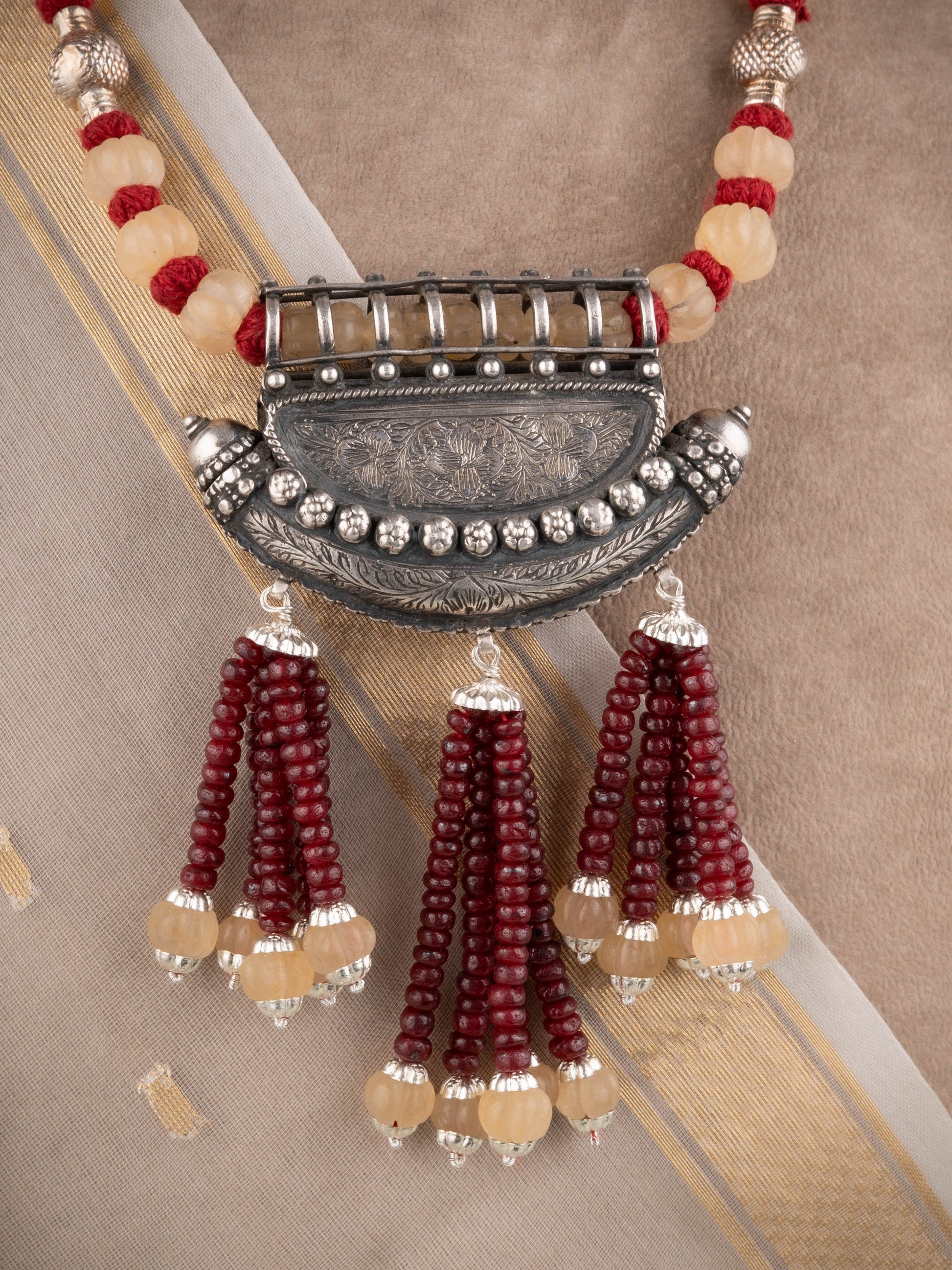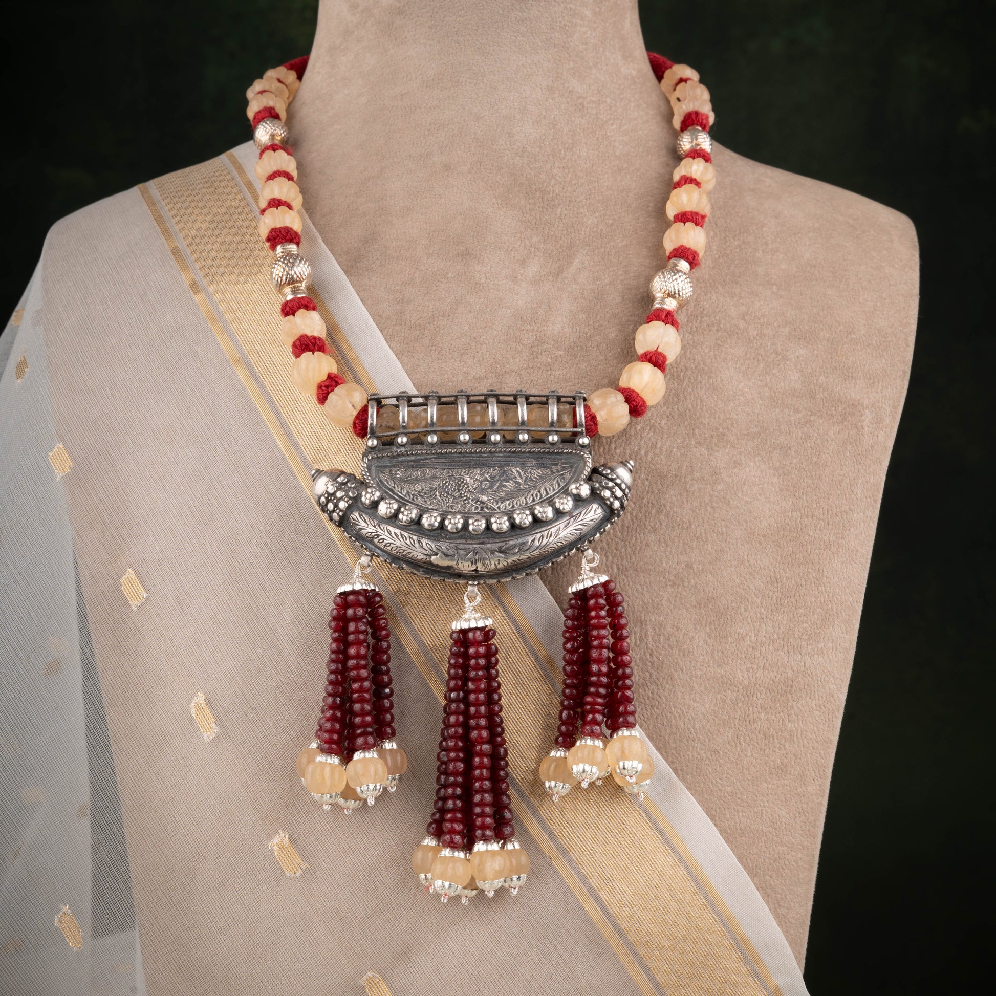 Ruby Odisha Pukhraj Silver Designer Necklace