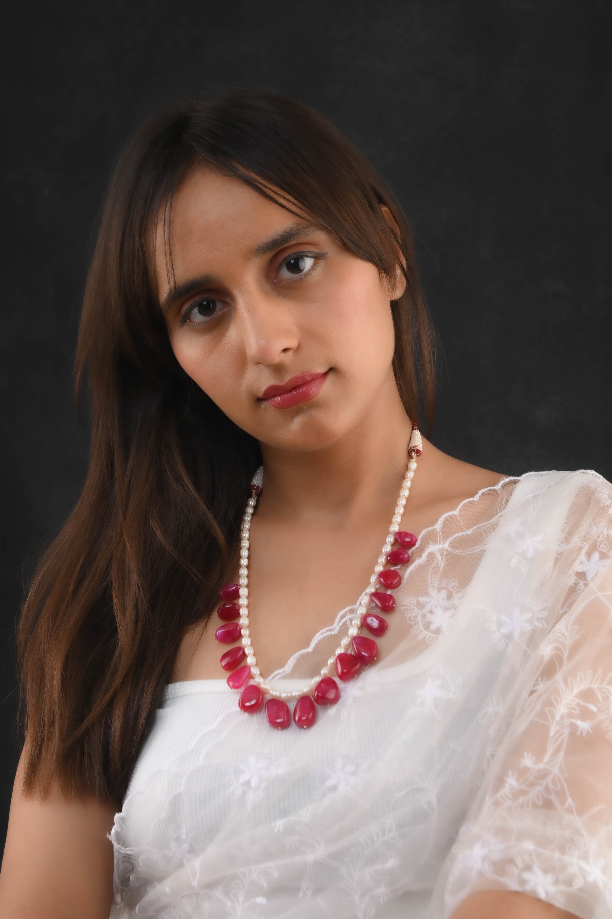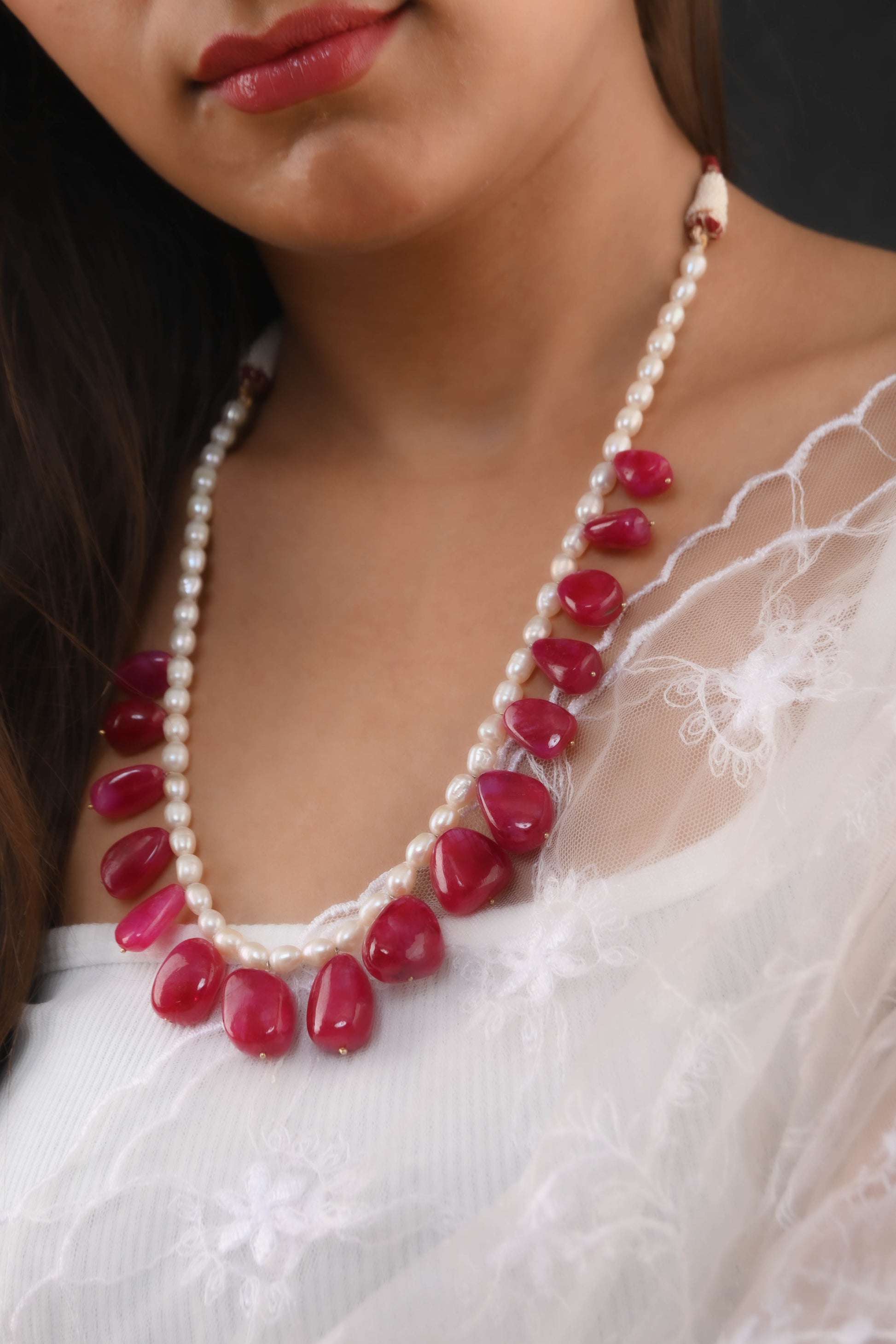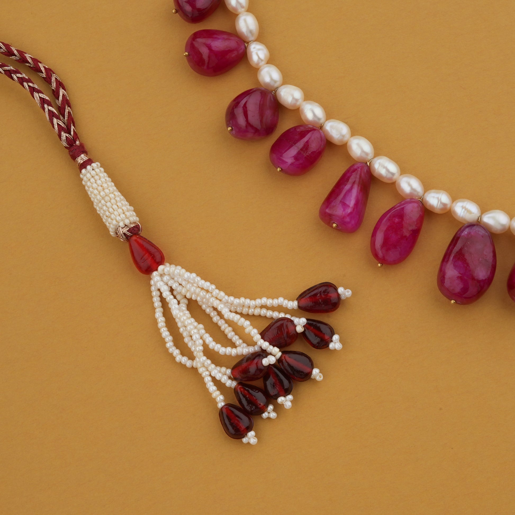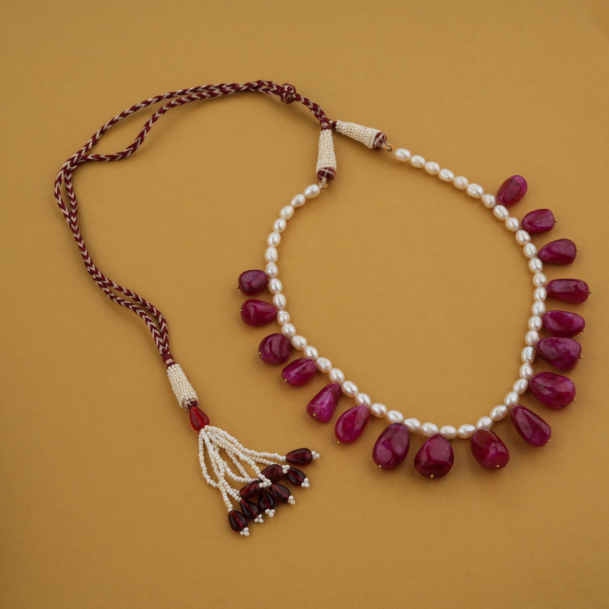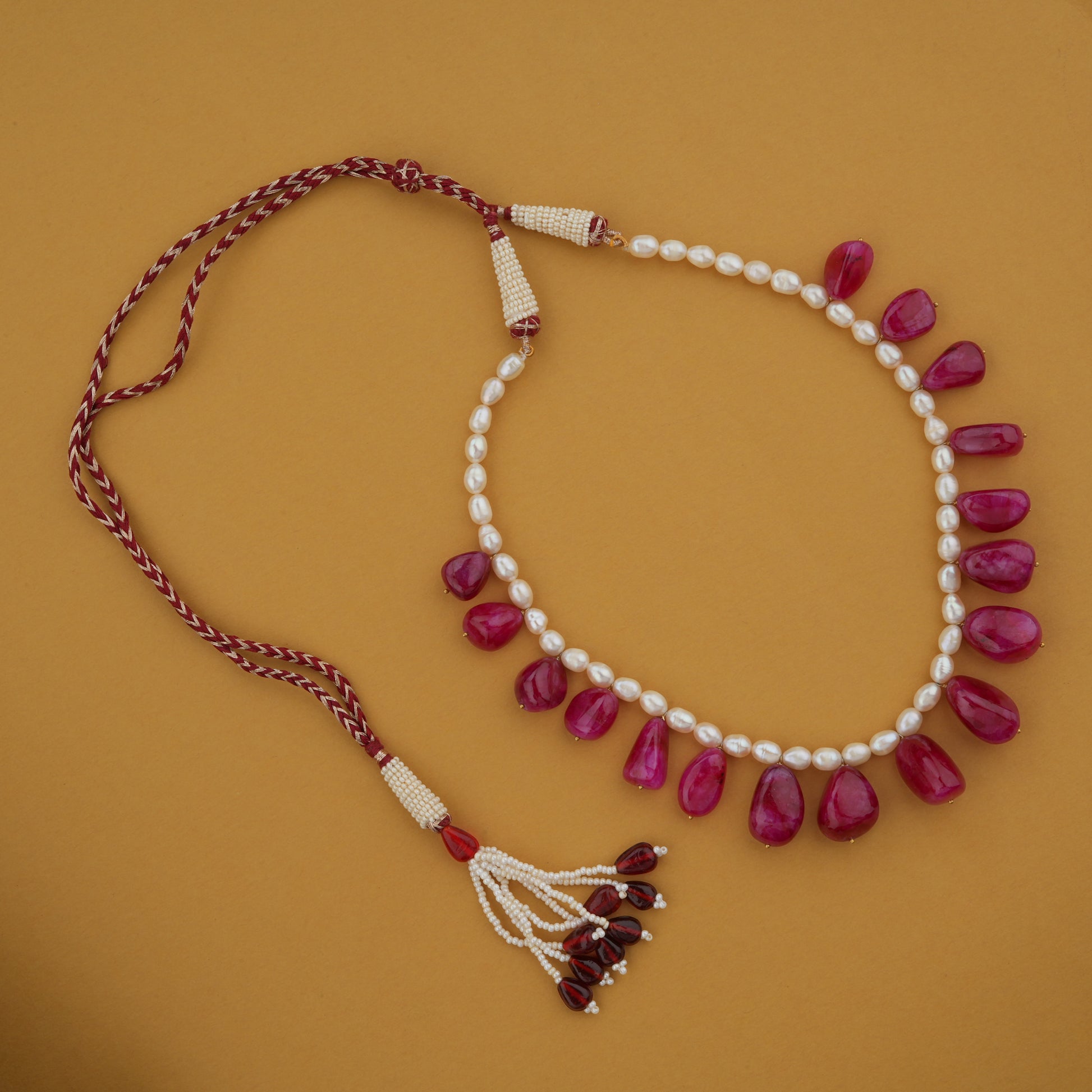 Rubies, Fresh Water Pearls, Adjustable Thread