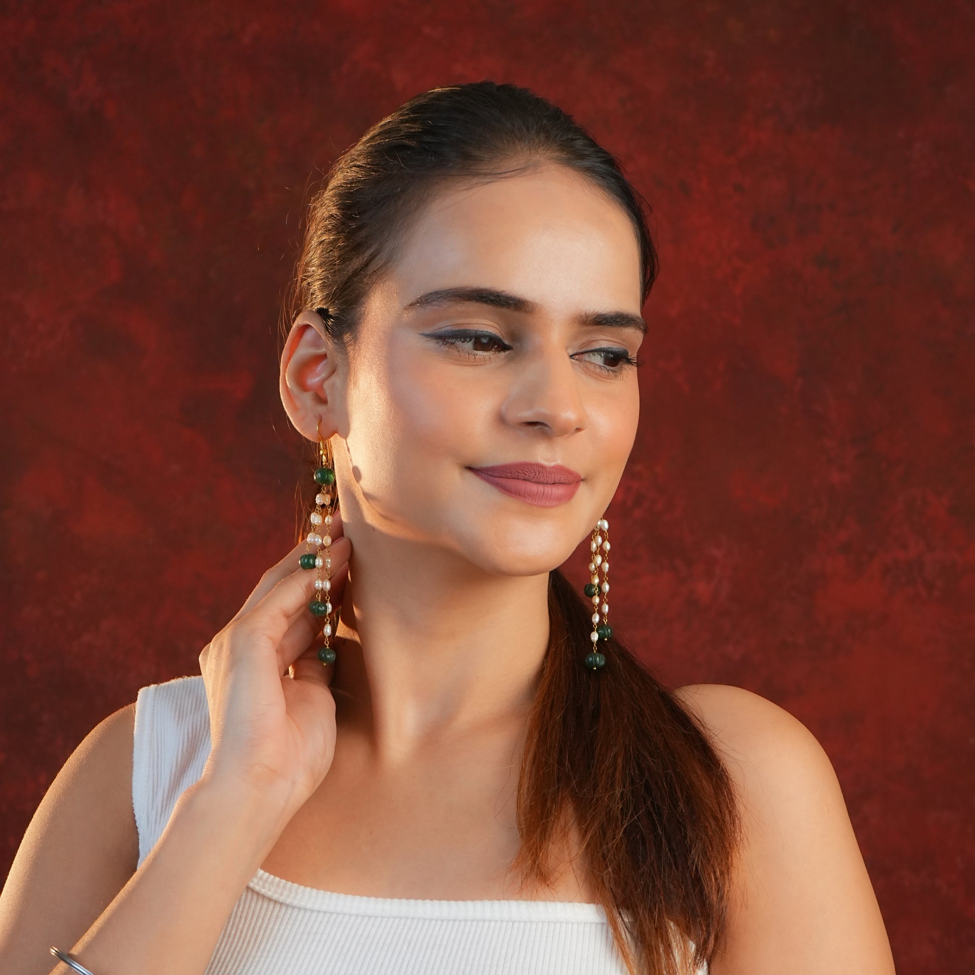 Embellish your look with these gorgeous Freshwater Pearl and Green Onyx danglers. The Pearl Drizzle Earrings will instantly elevate any outfit to create a glamorous and stylish look. They’re the perfect accessory to add a touch of elegance and sophistication to your wardrobe!