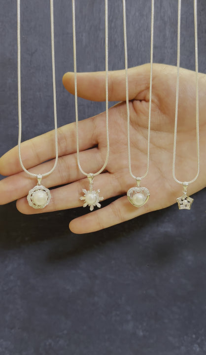 Shimmering Star Pearl Pendant Set with Chain