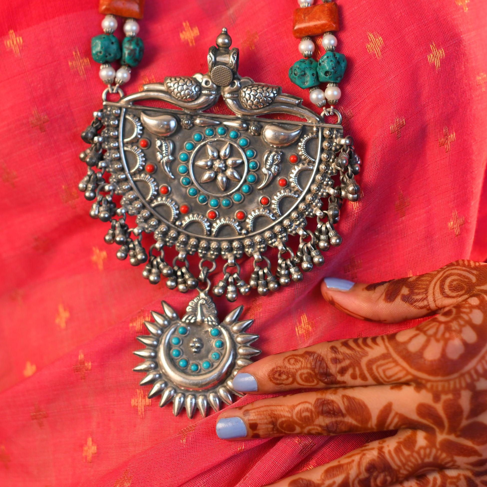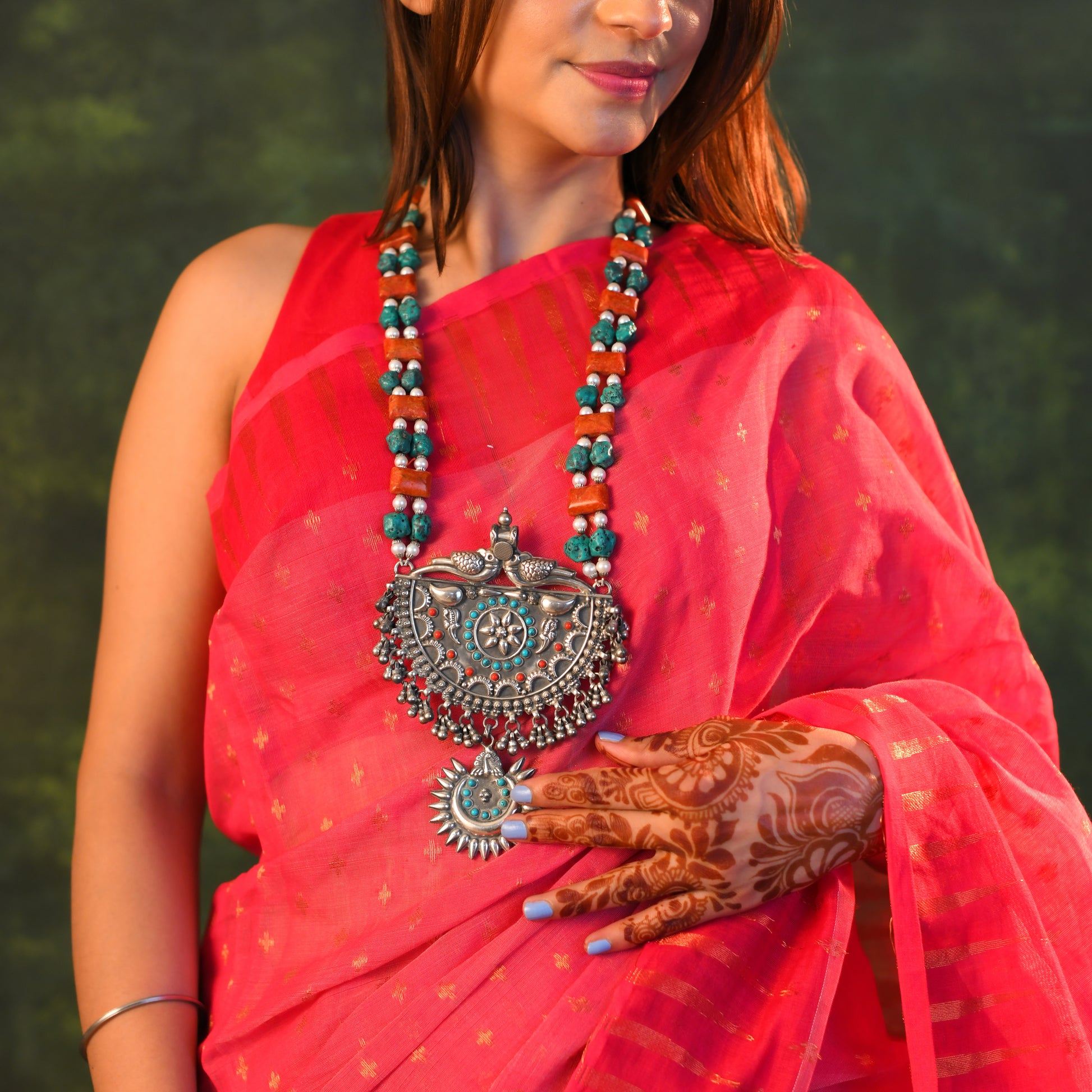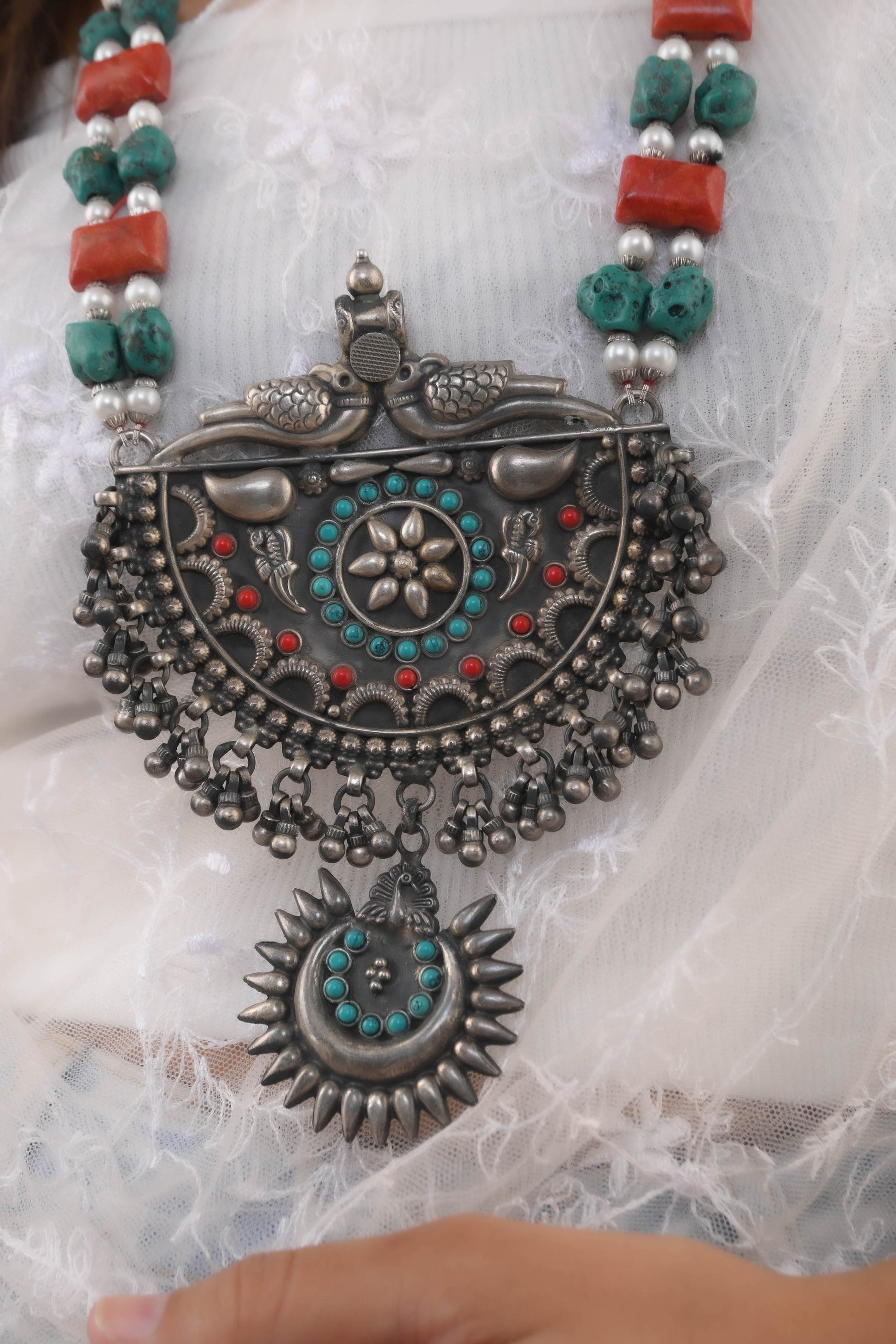 925 Silver, Corals Turquoise Beads, Fresh Water Pearls, cotton thread
