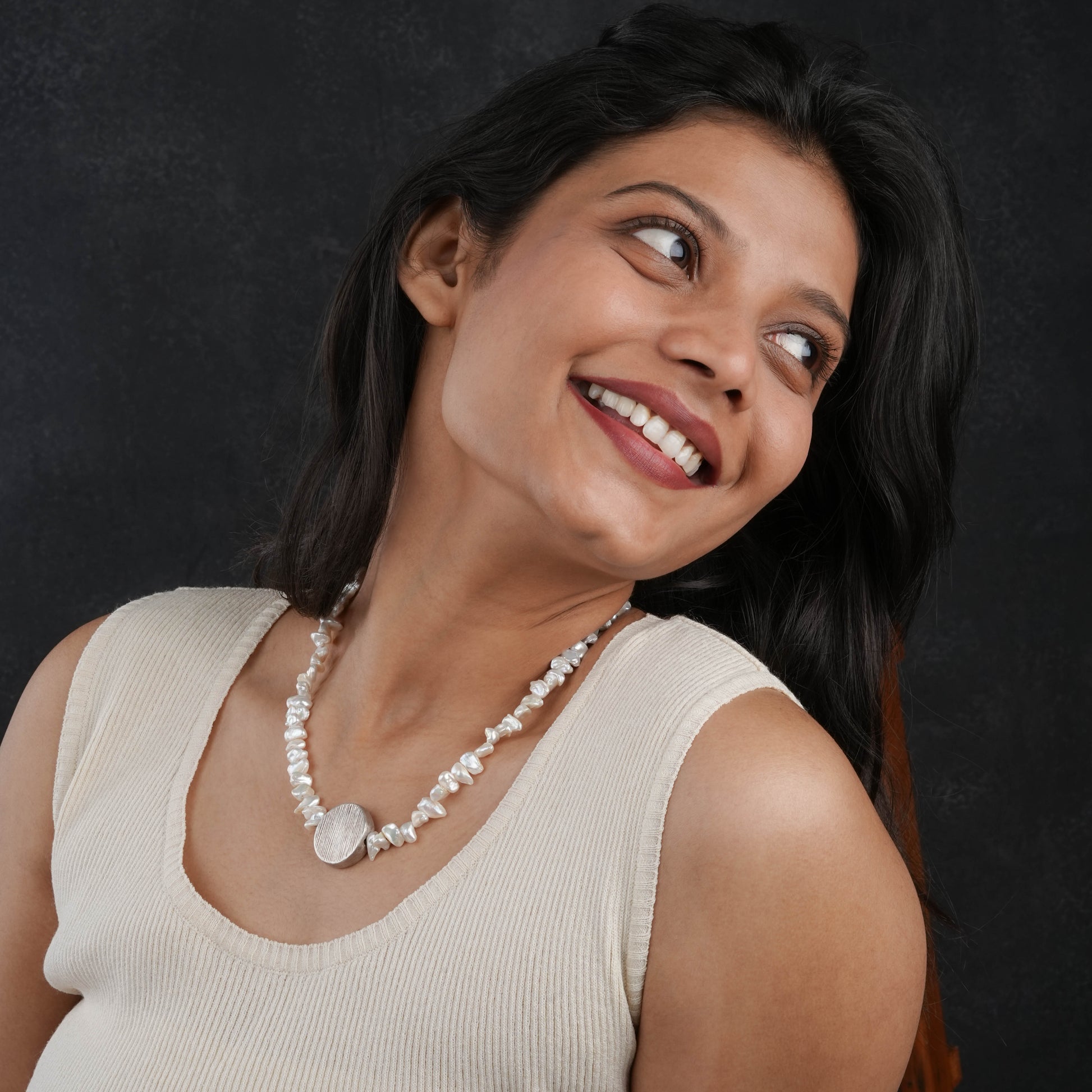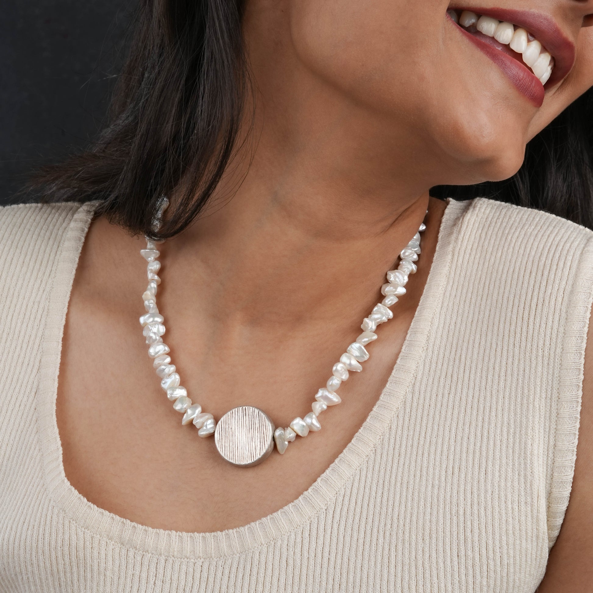 Feel the power of the moon around your neck with this beautiful Silver Full Moon Necklace. Handcrafted with a real freshwater pearl, this necklace will add just the right touch of lunar magic to any outfit. Let the pearl illuminate your wardrobe and add a sparkle of enchantment to your look!