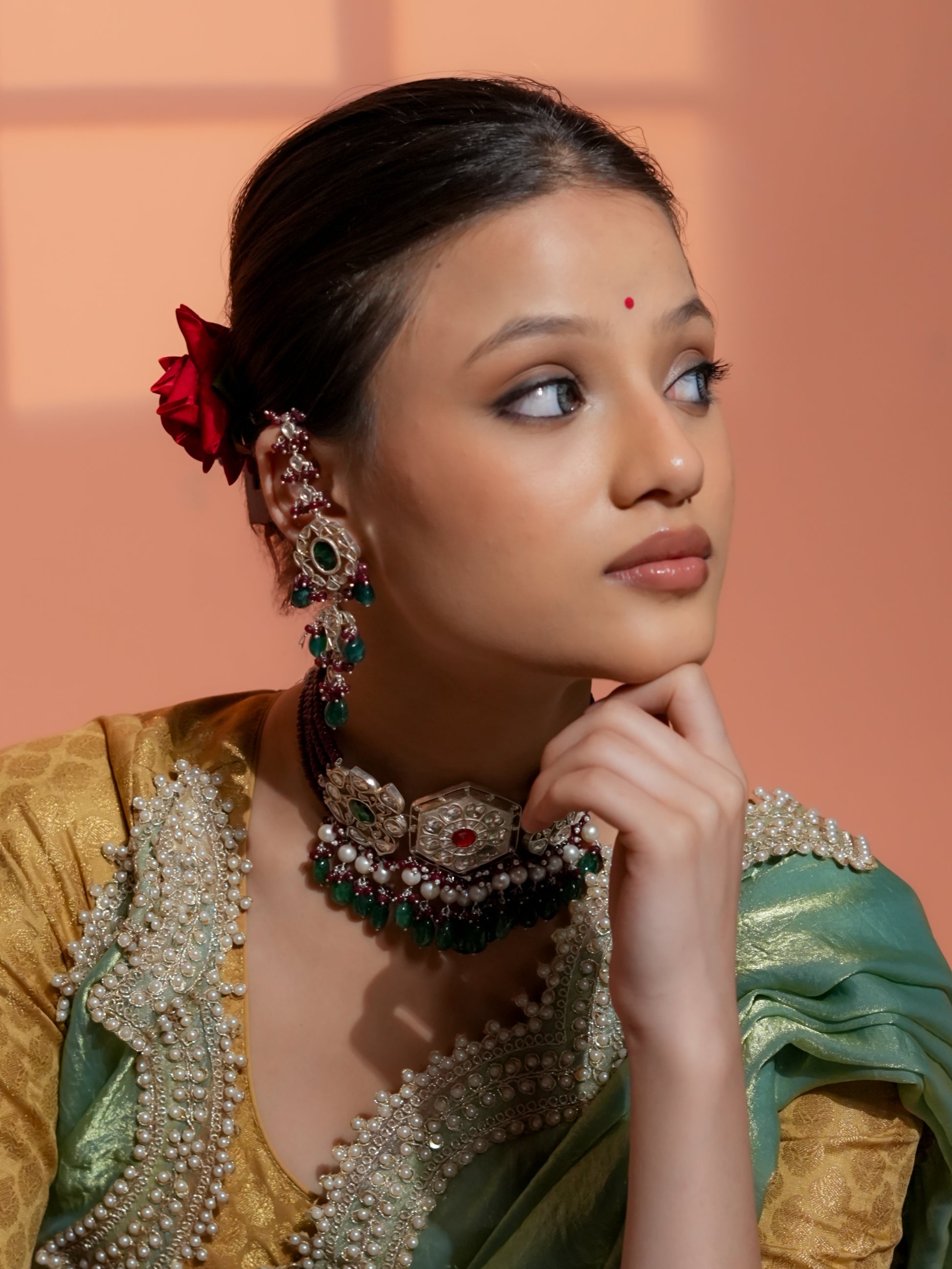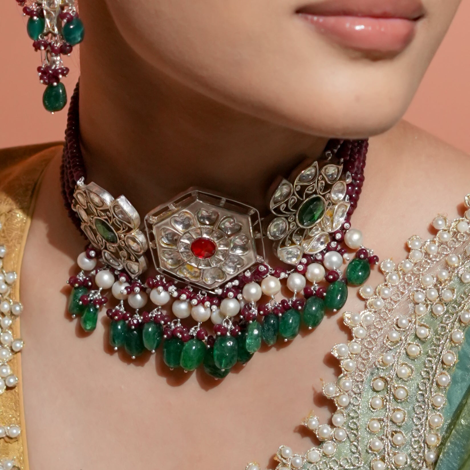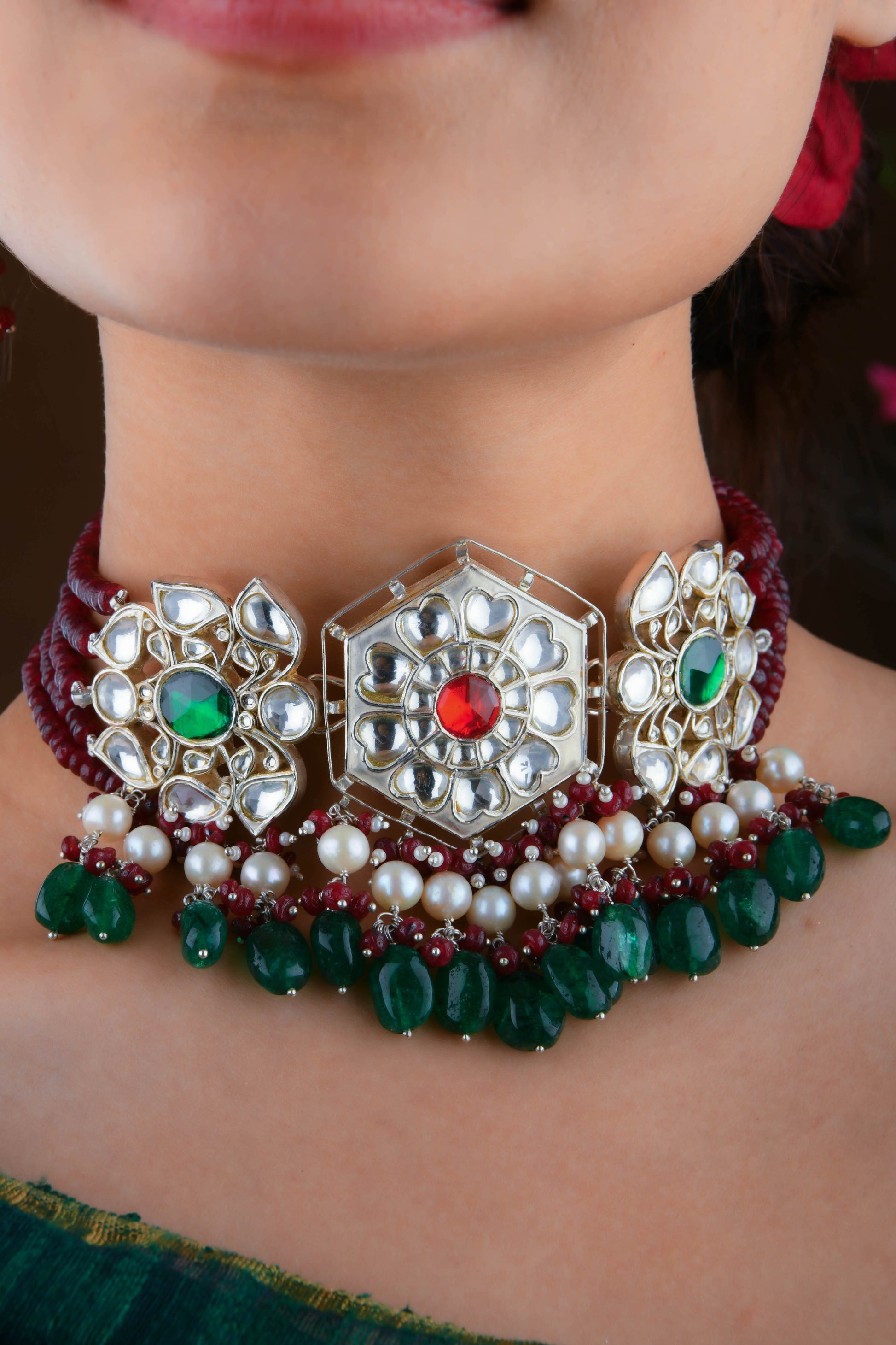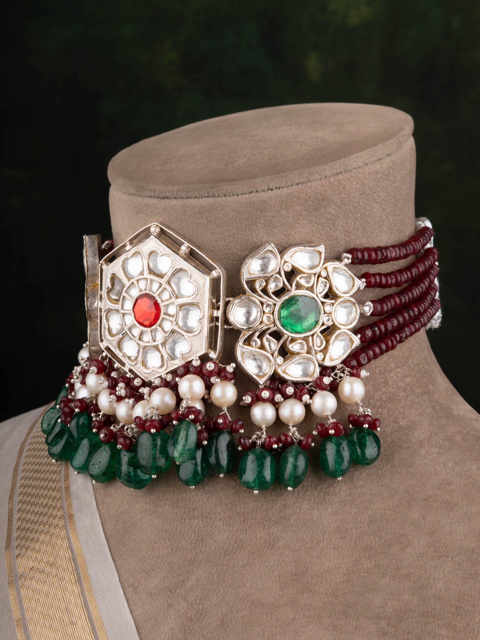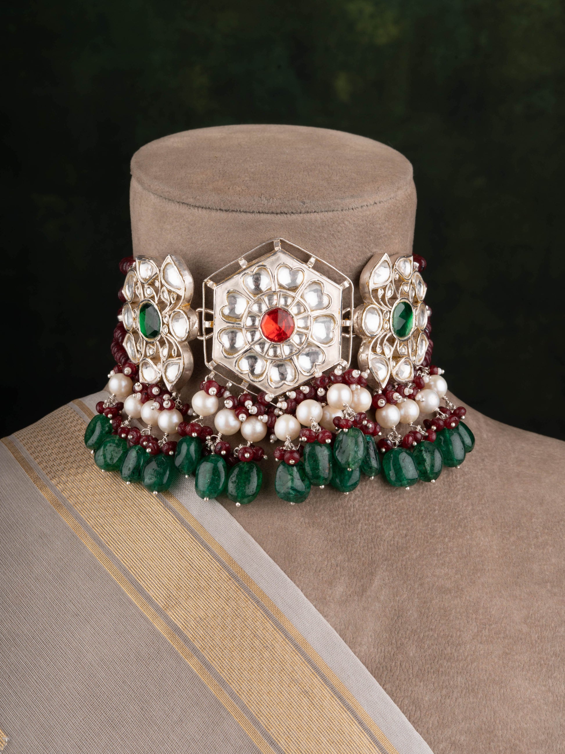 Elevate Your Elegance: Silver Kundan Designer Choker Set